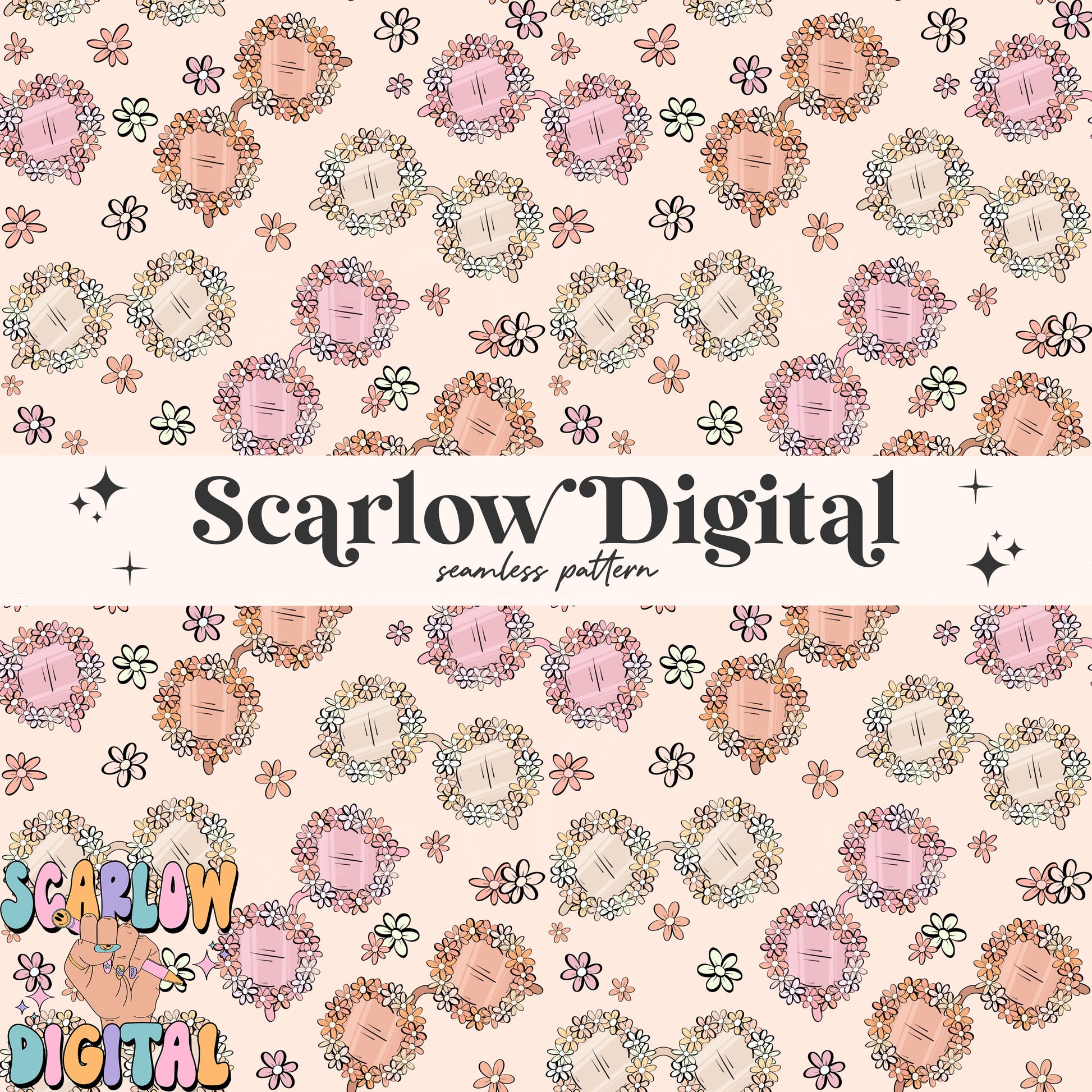 Floral Sunglasses Seamless Pattern-Summer Sublimation Digital Design Download-flowers seamless pattern, boho girly seamless, summer designs