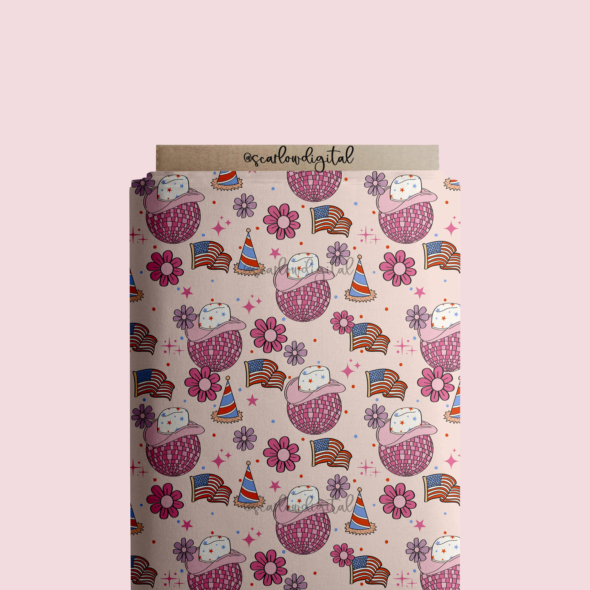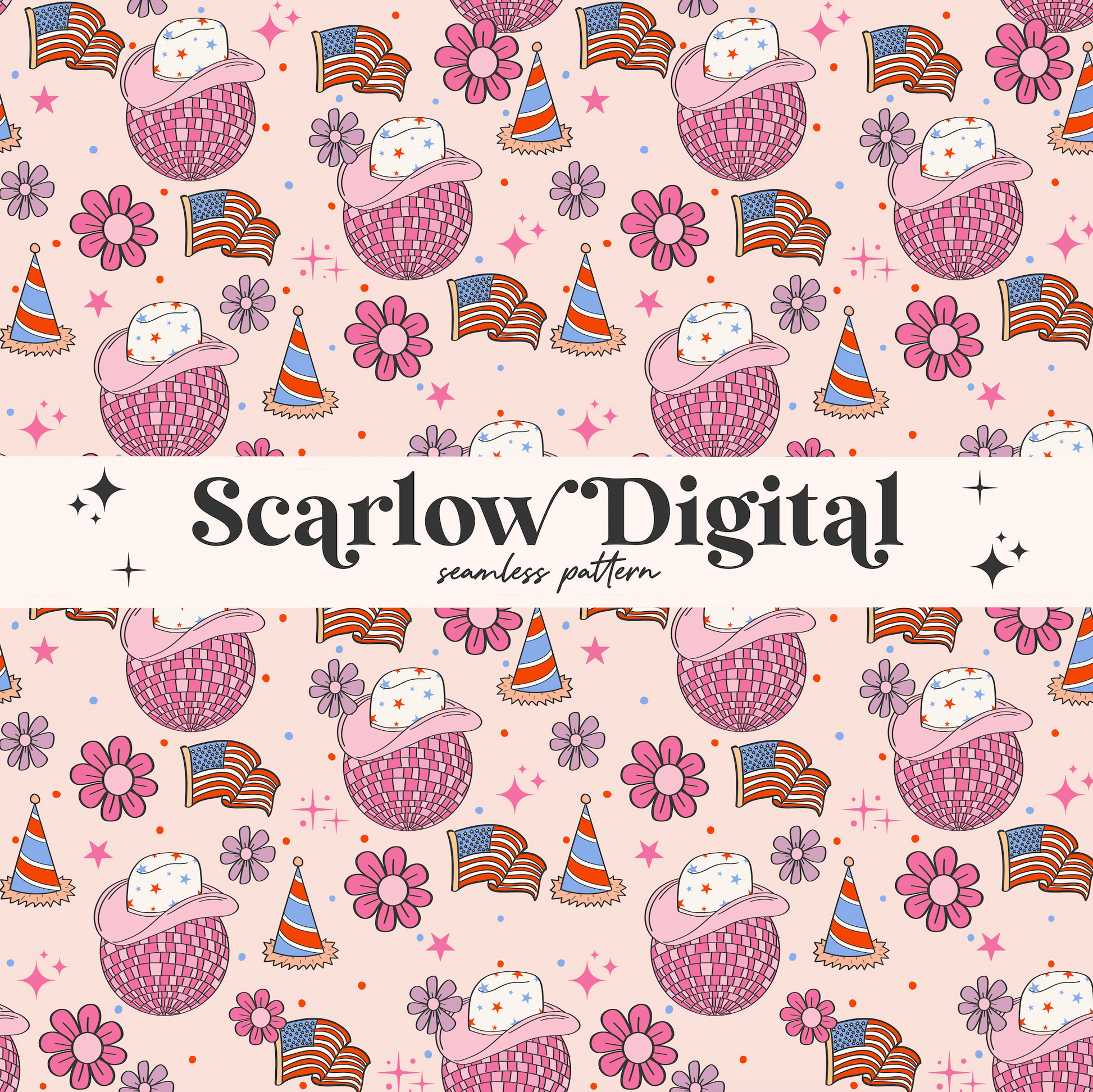 Fourth of July Seamless Pattern-Independence Day Sublimation Digital Design Download-disco ball seamless file, cowboy hat seamless pattern