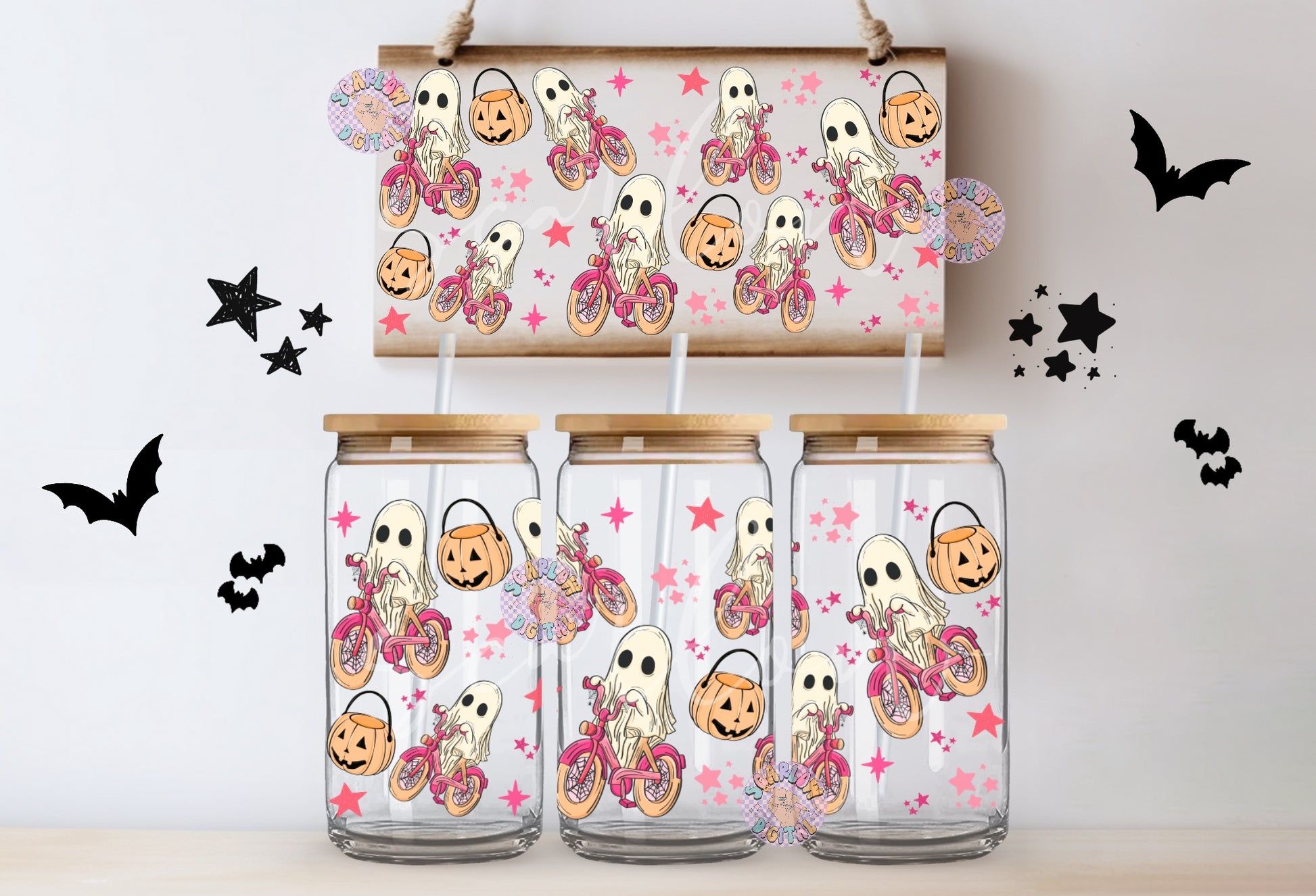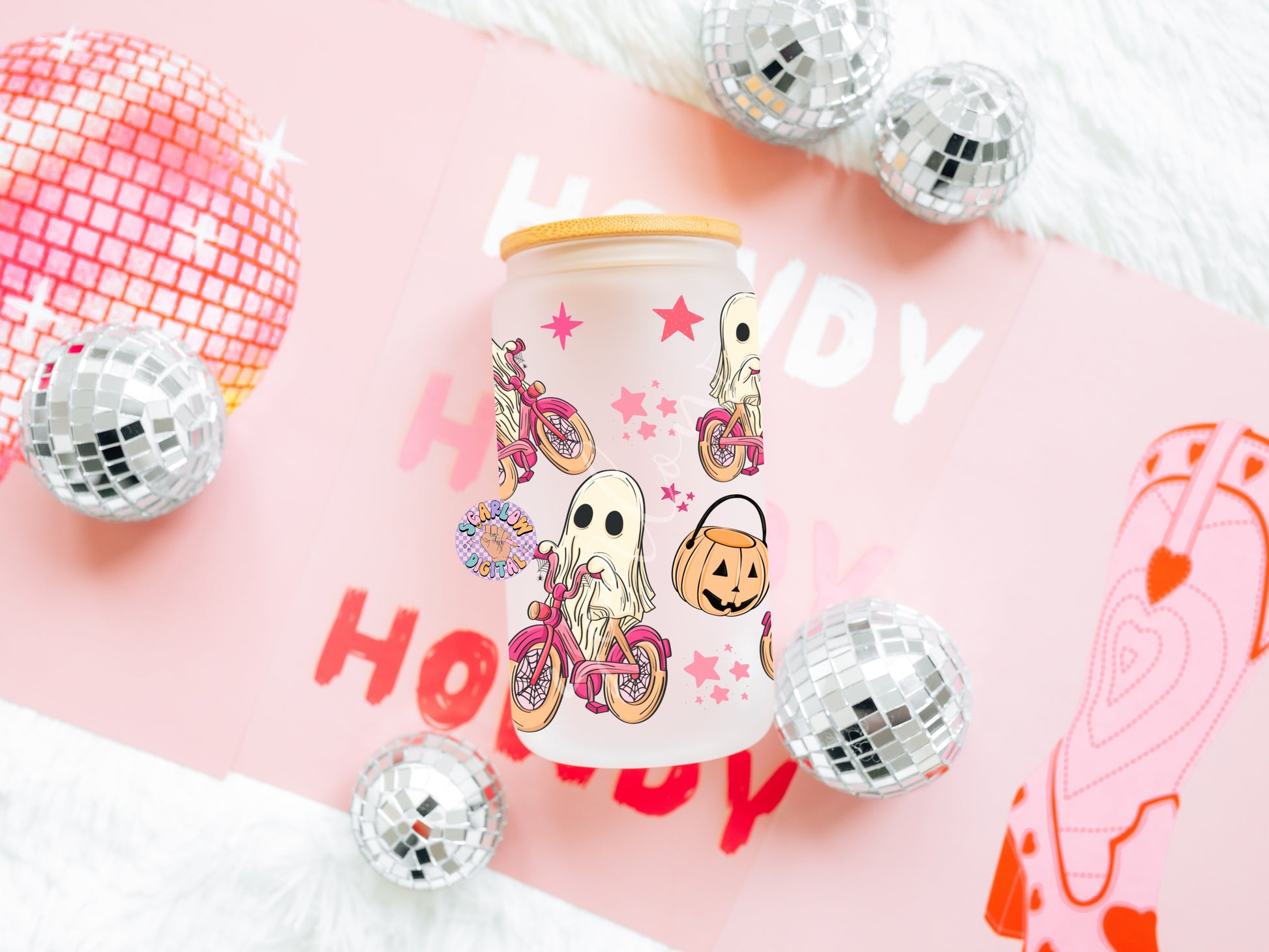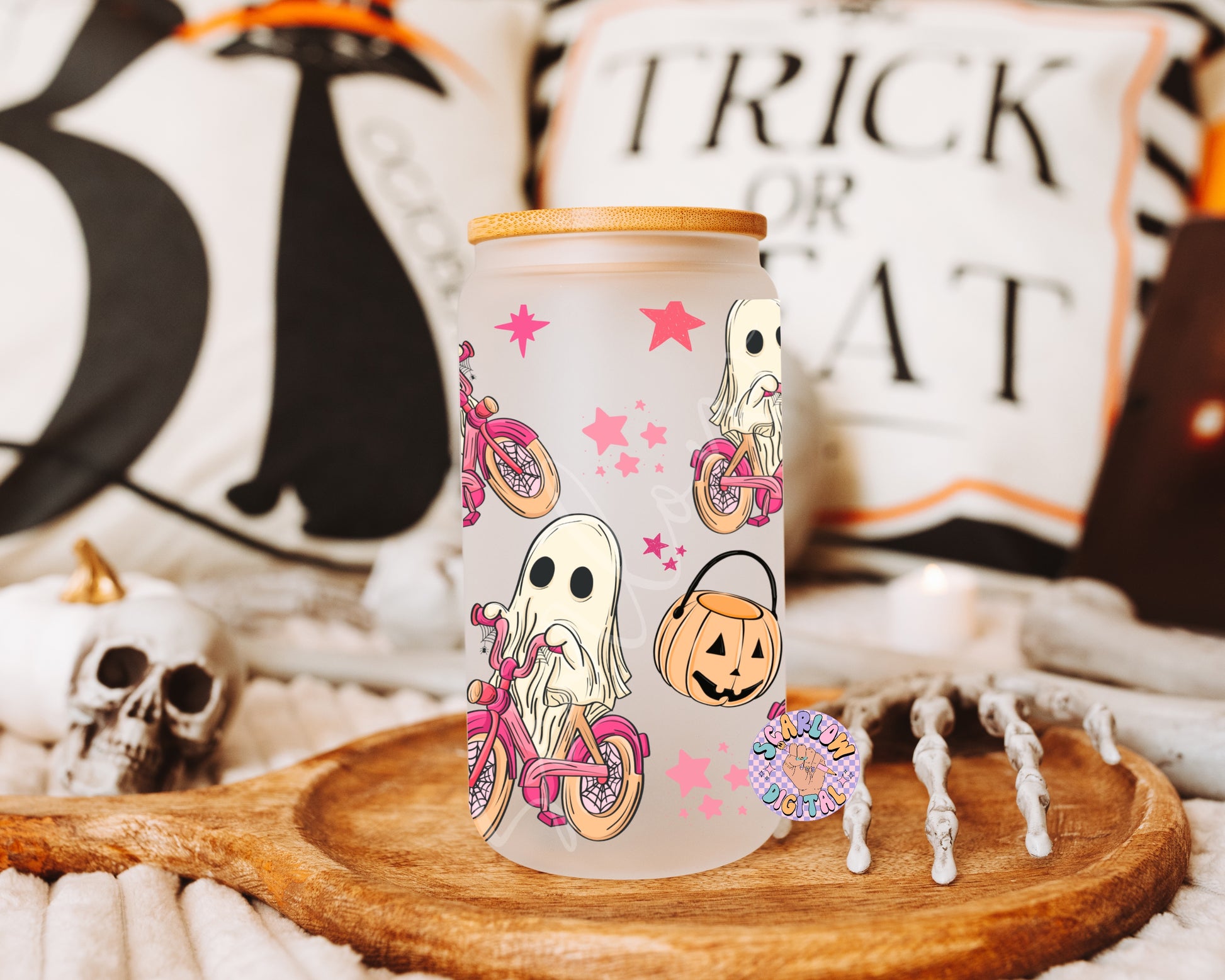 Ghost Bicycle Glass Can Wrap PNG-Halloween 16 oz. Can Glass Sublimation Digital Design Download-spooky can glass png, fall cup wraps png