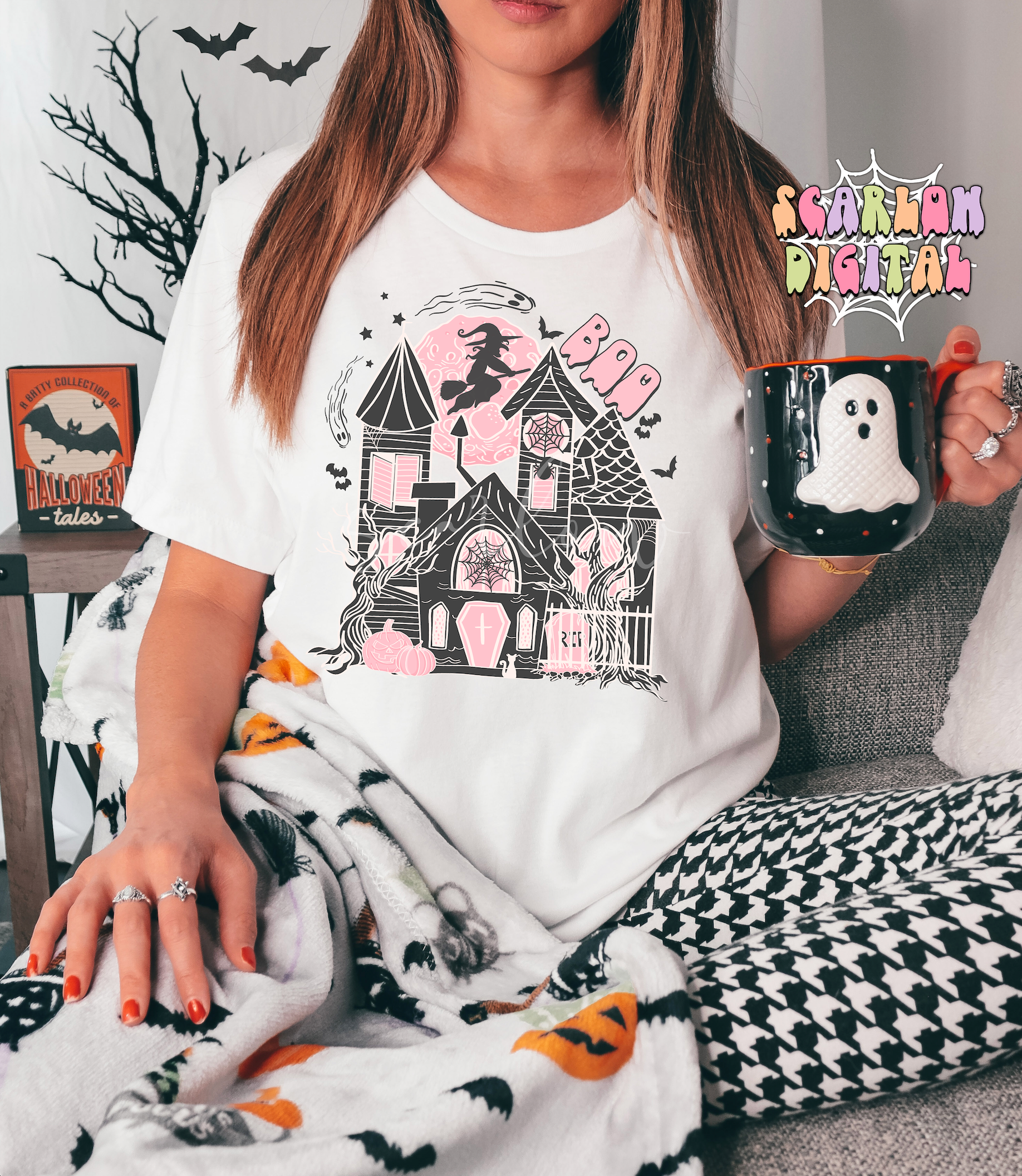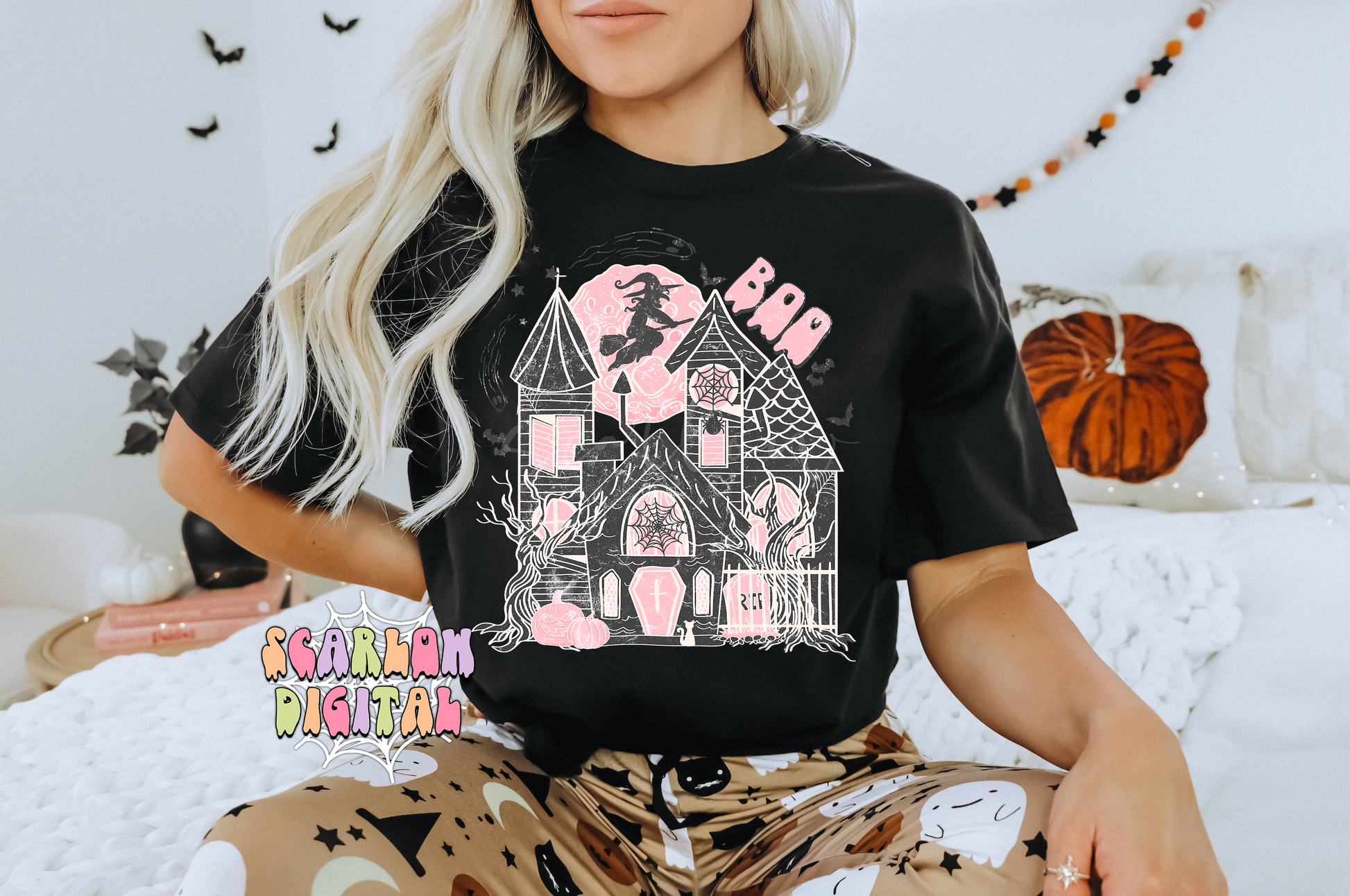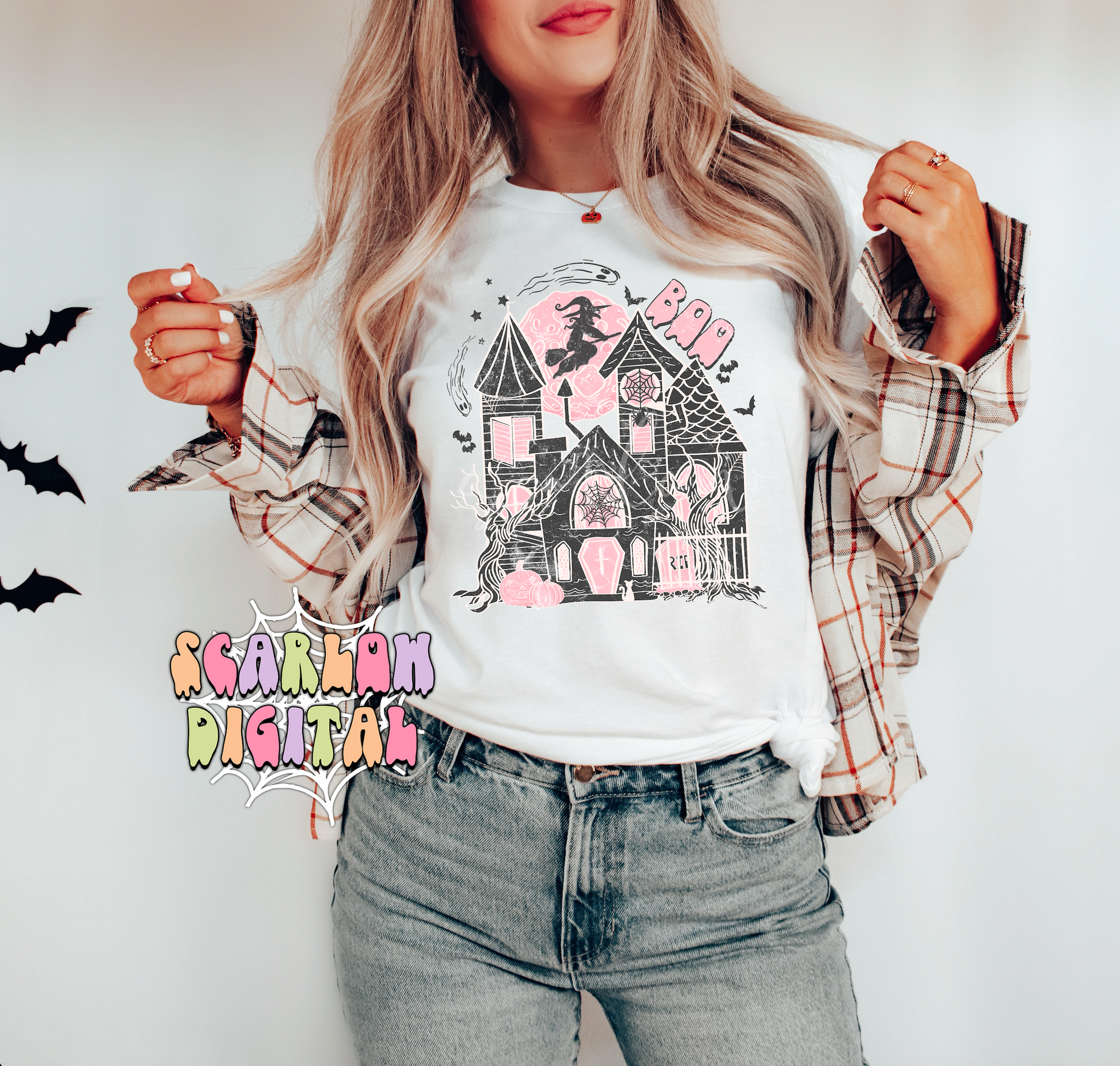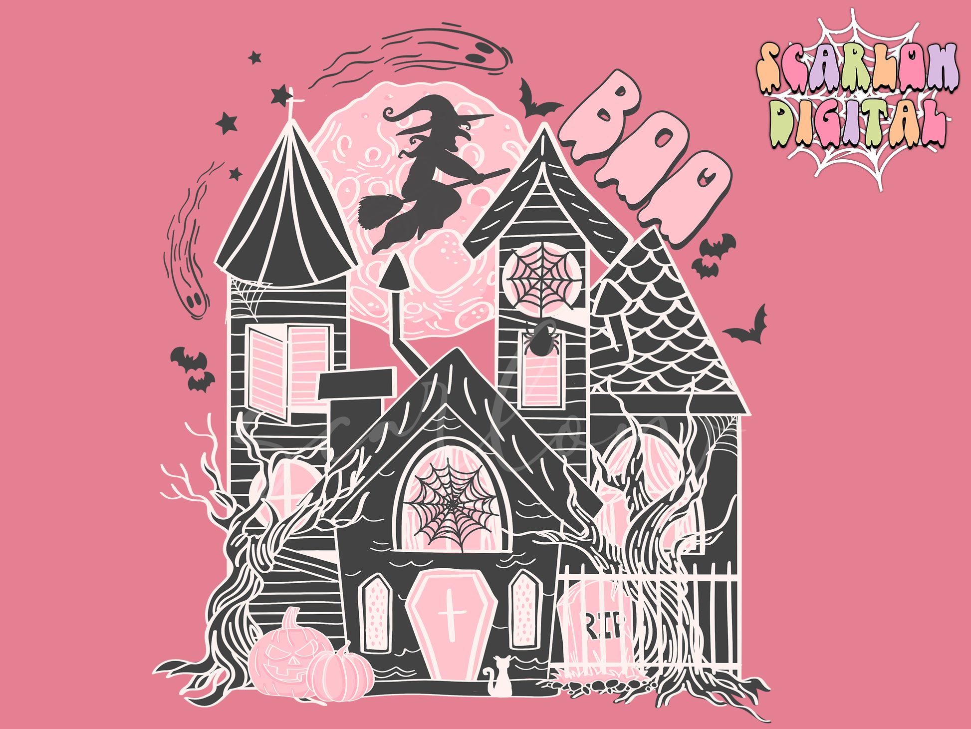 Haunted House PNG-Halloween Sublimation Digital Design Download-spooky season png, spooky girl png, kids halloween png, spooky boo png file