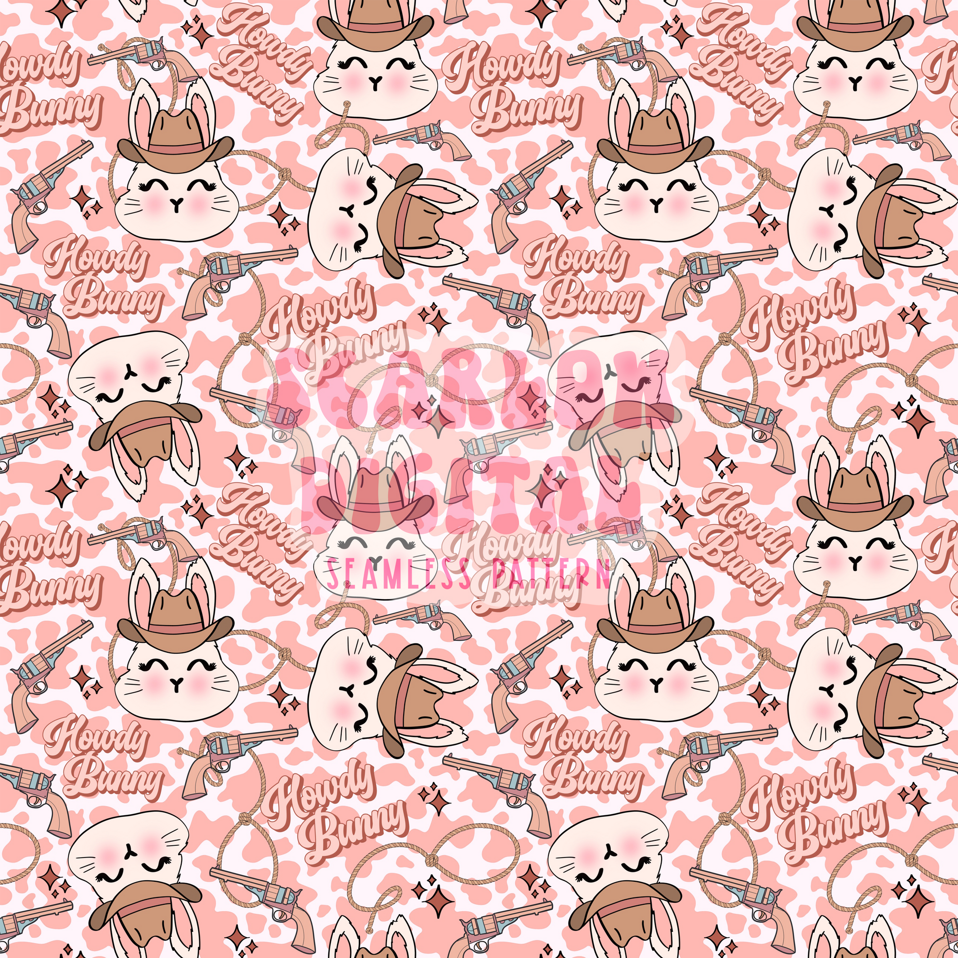 Howdy Bunny Seamless Pattern-Easter Sublimation Digital Design Download-western seamless pattern, cowgirl seamless file, girl easter seamless
