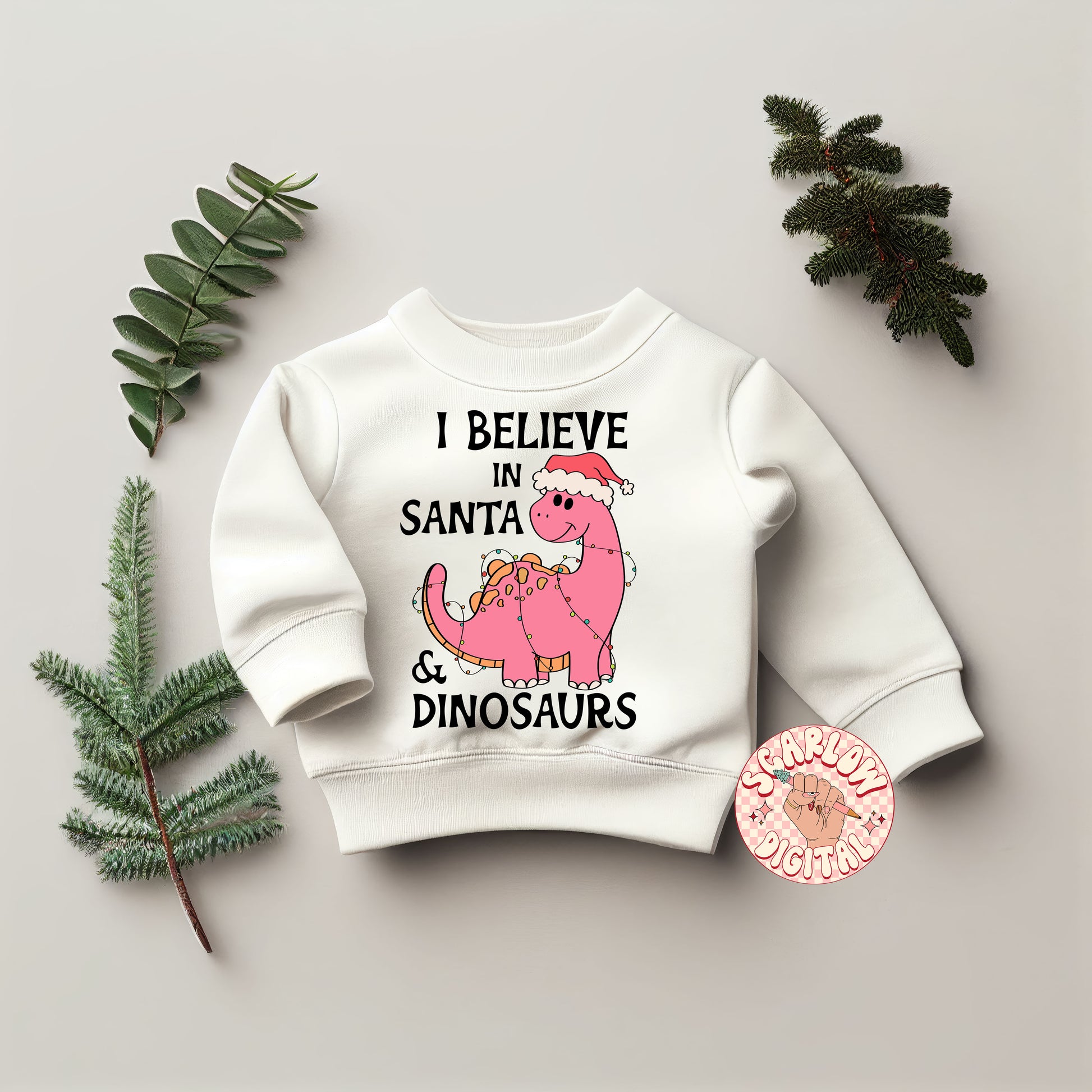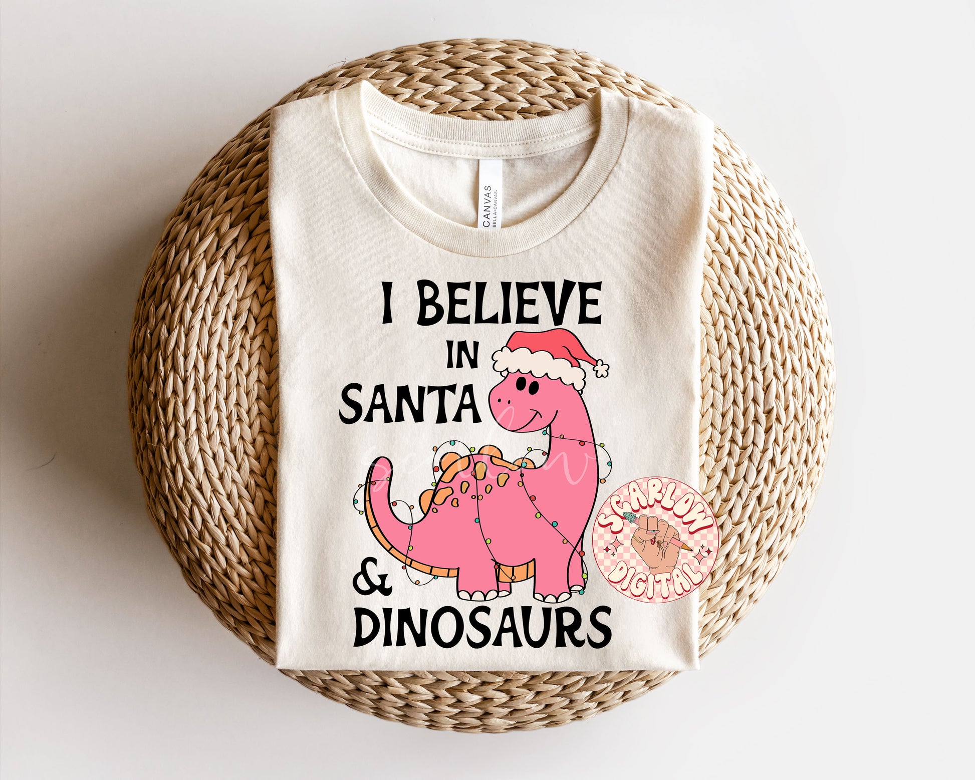 I Believe in Santa and Dinosaurs PNG-Christmas Sublimation Digital Design Download-girl christmas png, dinos png, girl designs, funny png