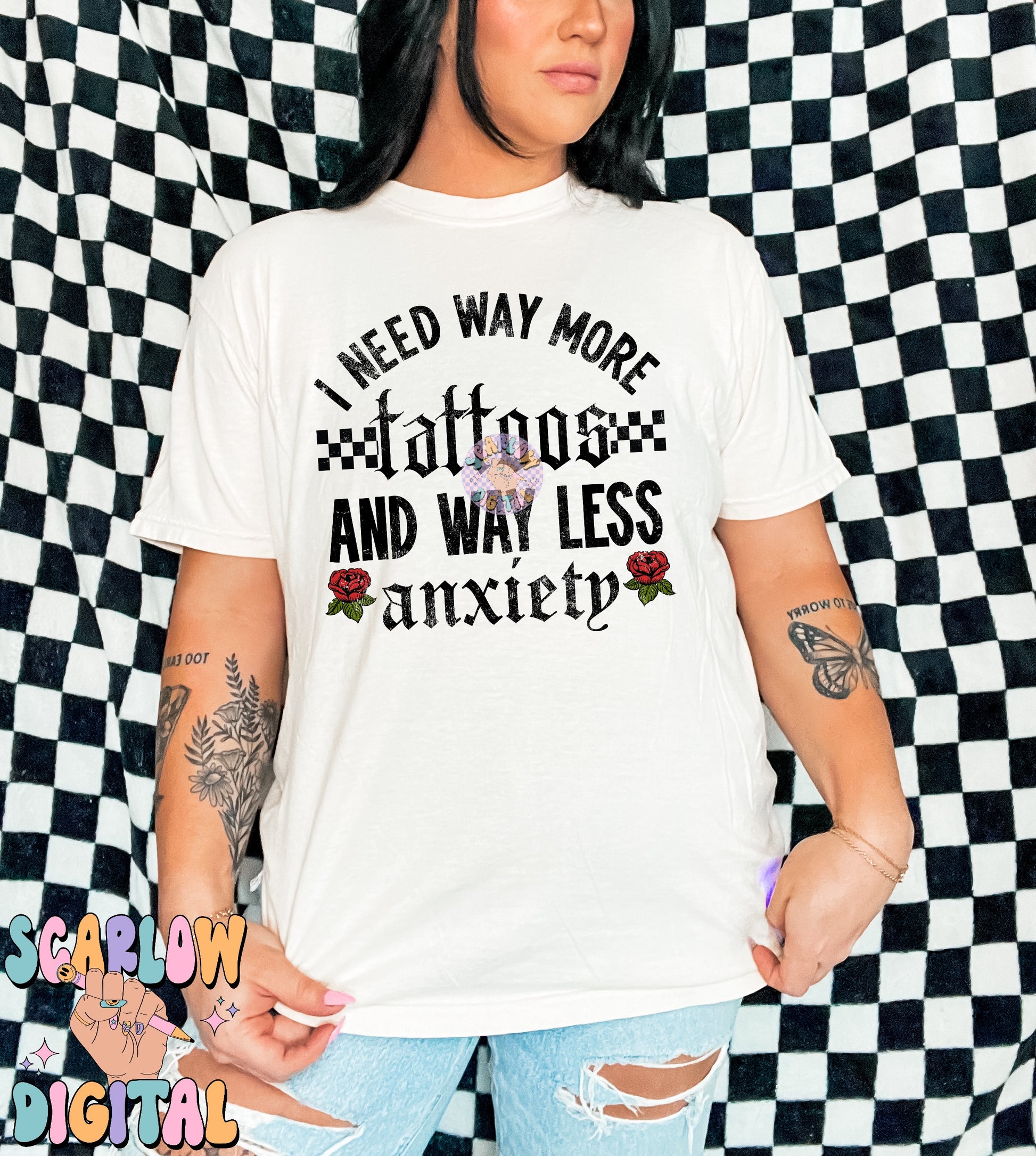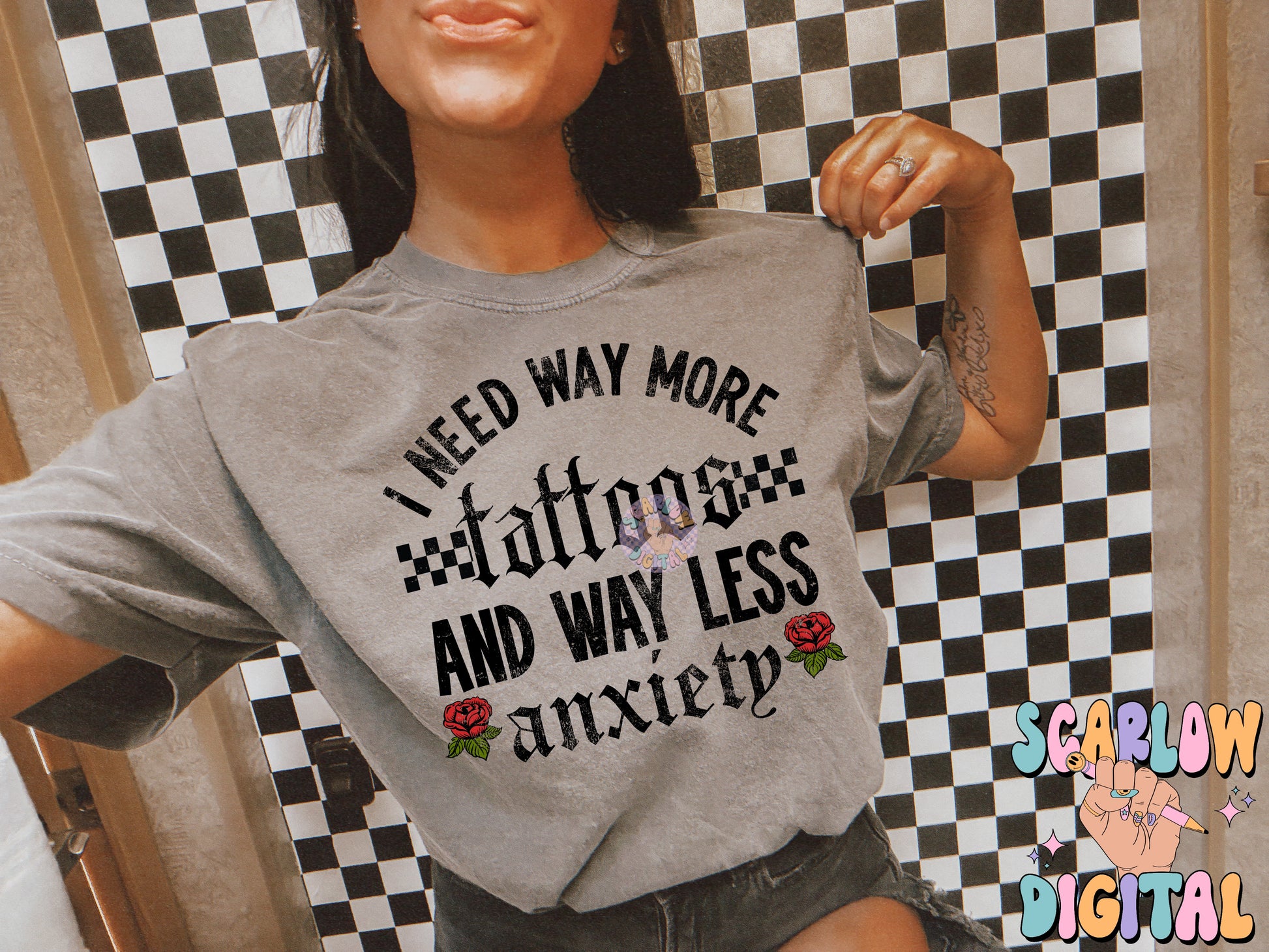 I Need Way More Tattoos and Way Less Anxiety PNG Digital Design Download