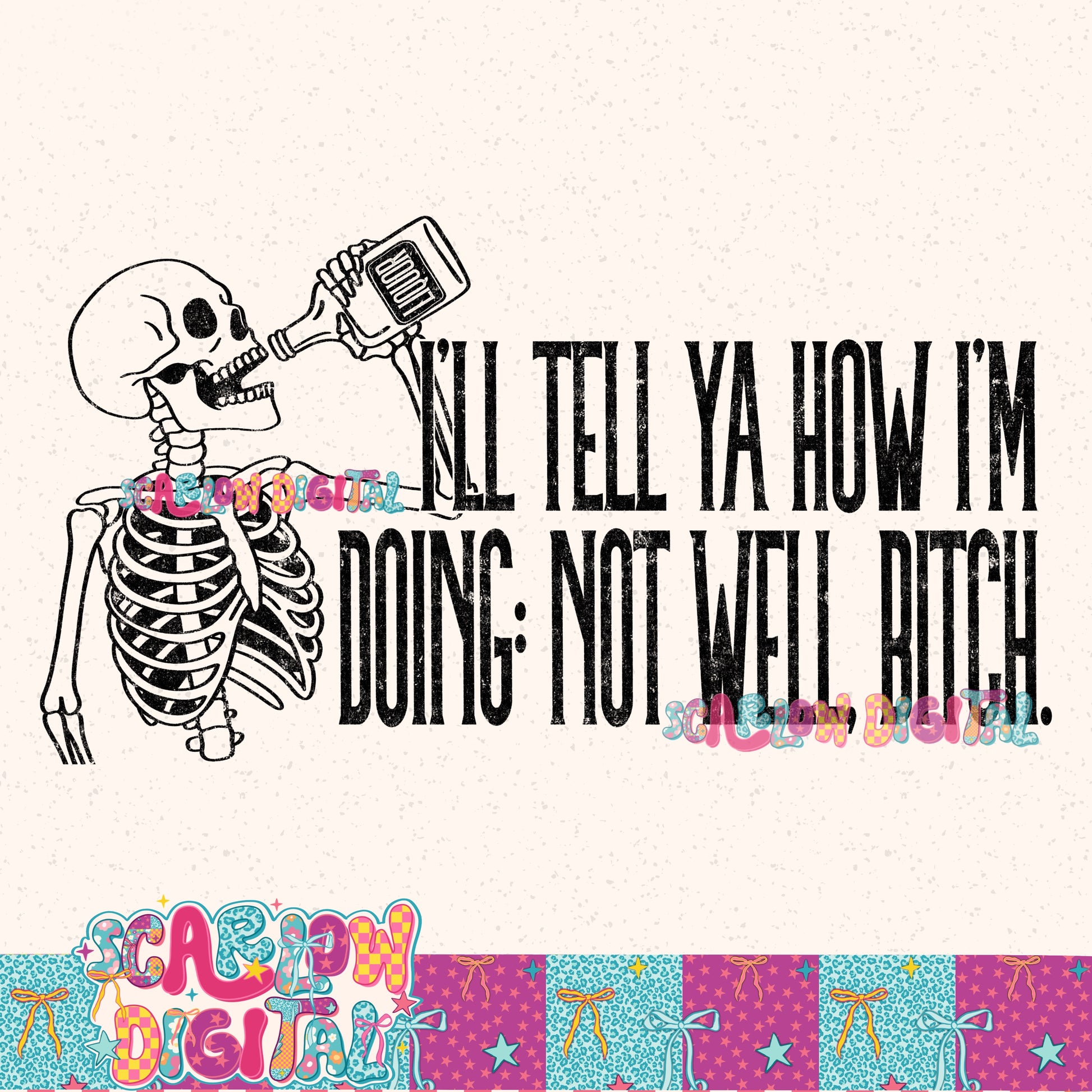 I'll Tell Ya How I'm Doing: Not Well Bitch PNG Digital Design