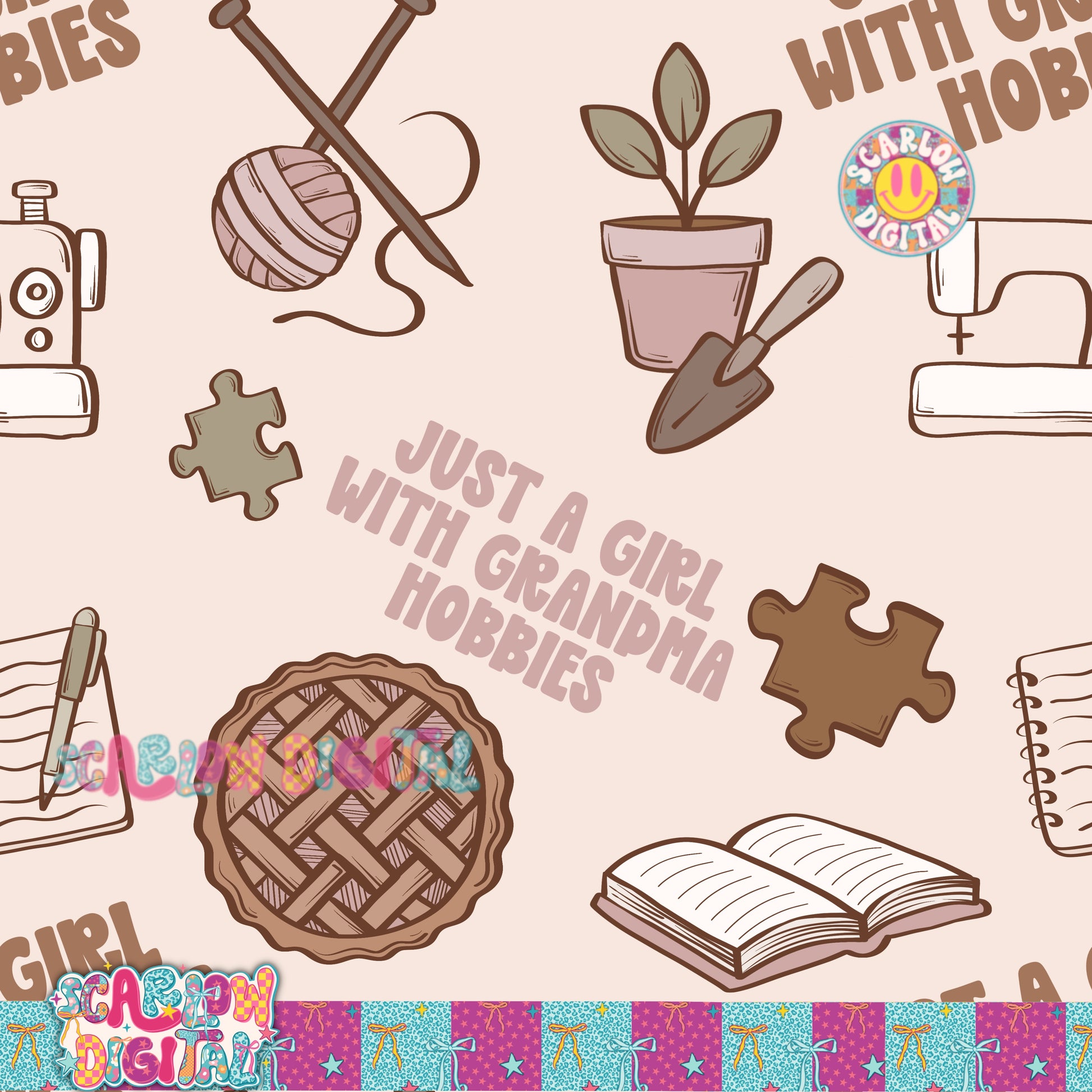 Just a Girl With Grandma Hobbies Seamless Pattern Digital Design