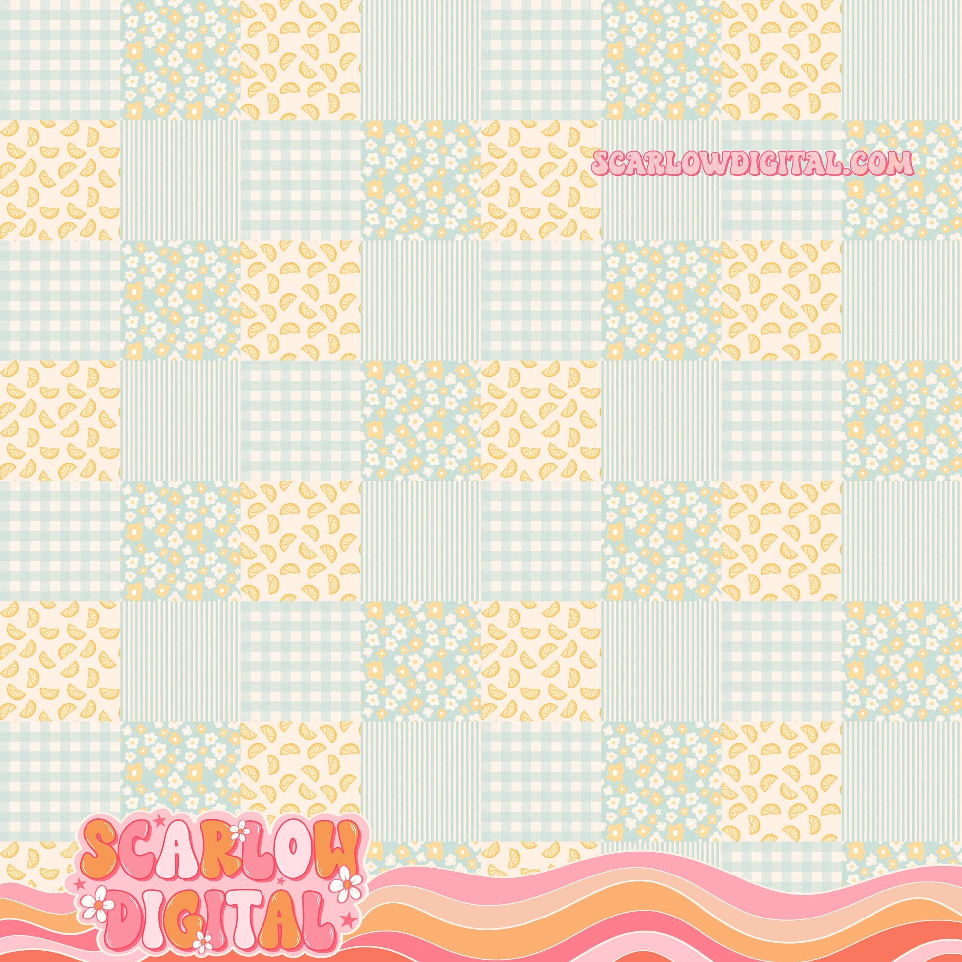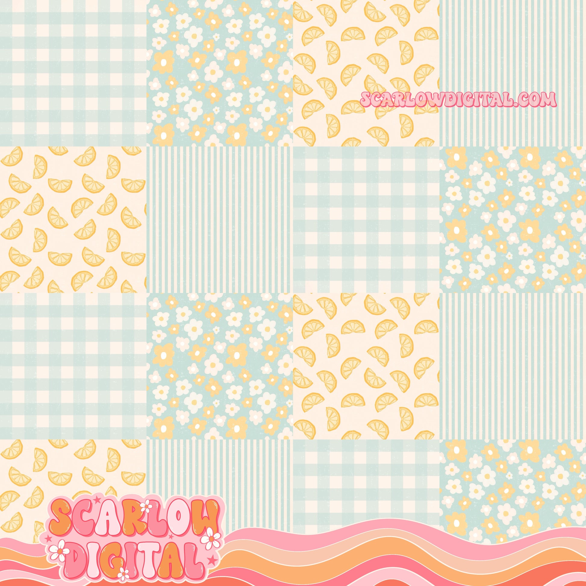 Lemon and Things Patchwork Seamless Pattern Digital Design