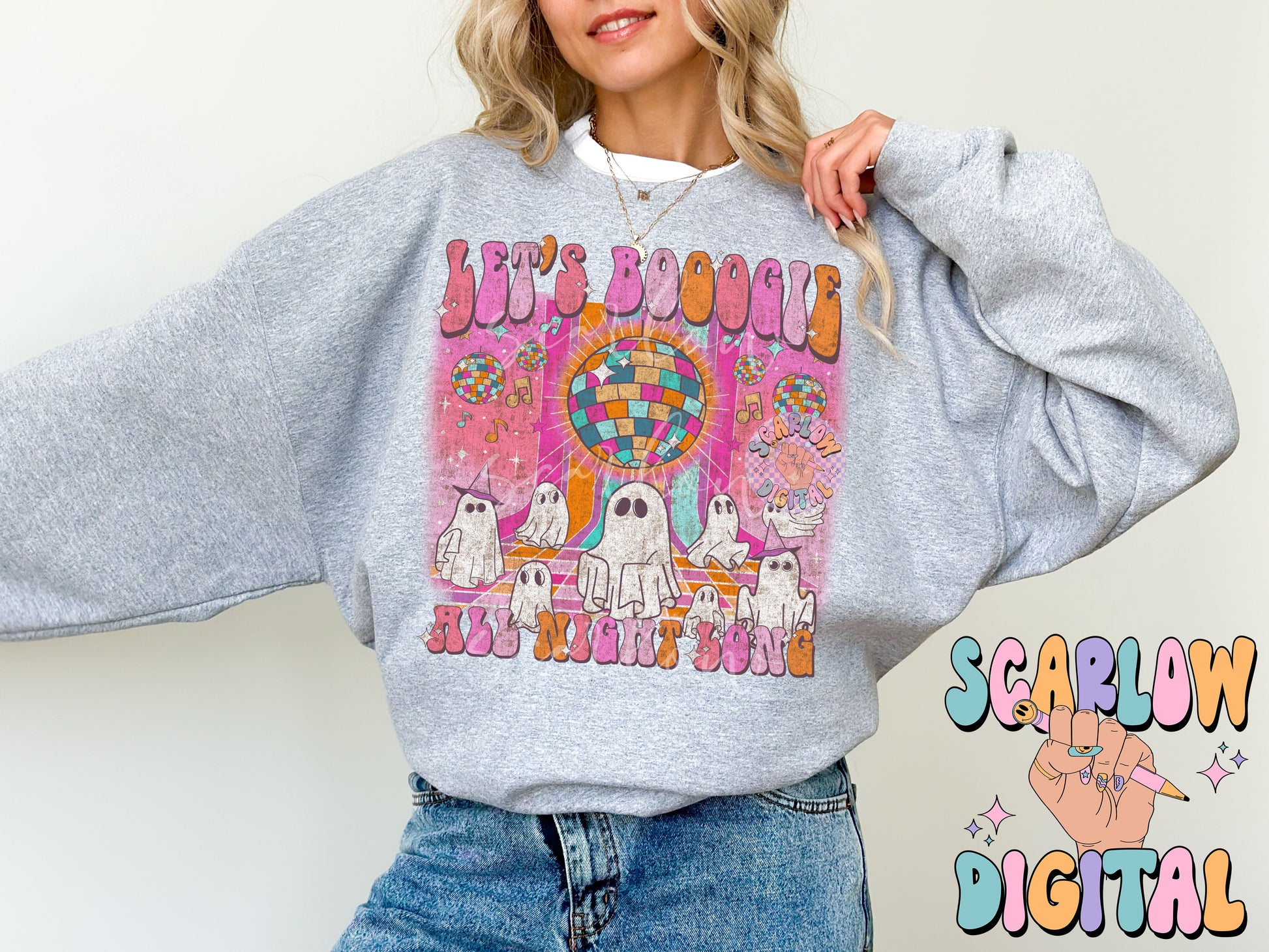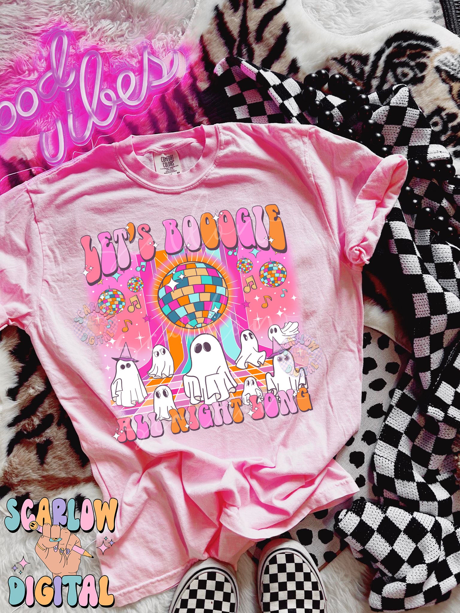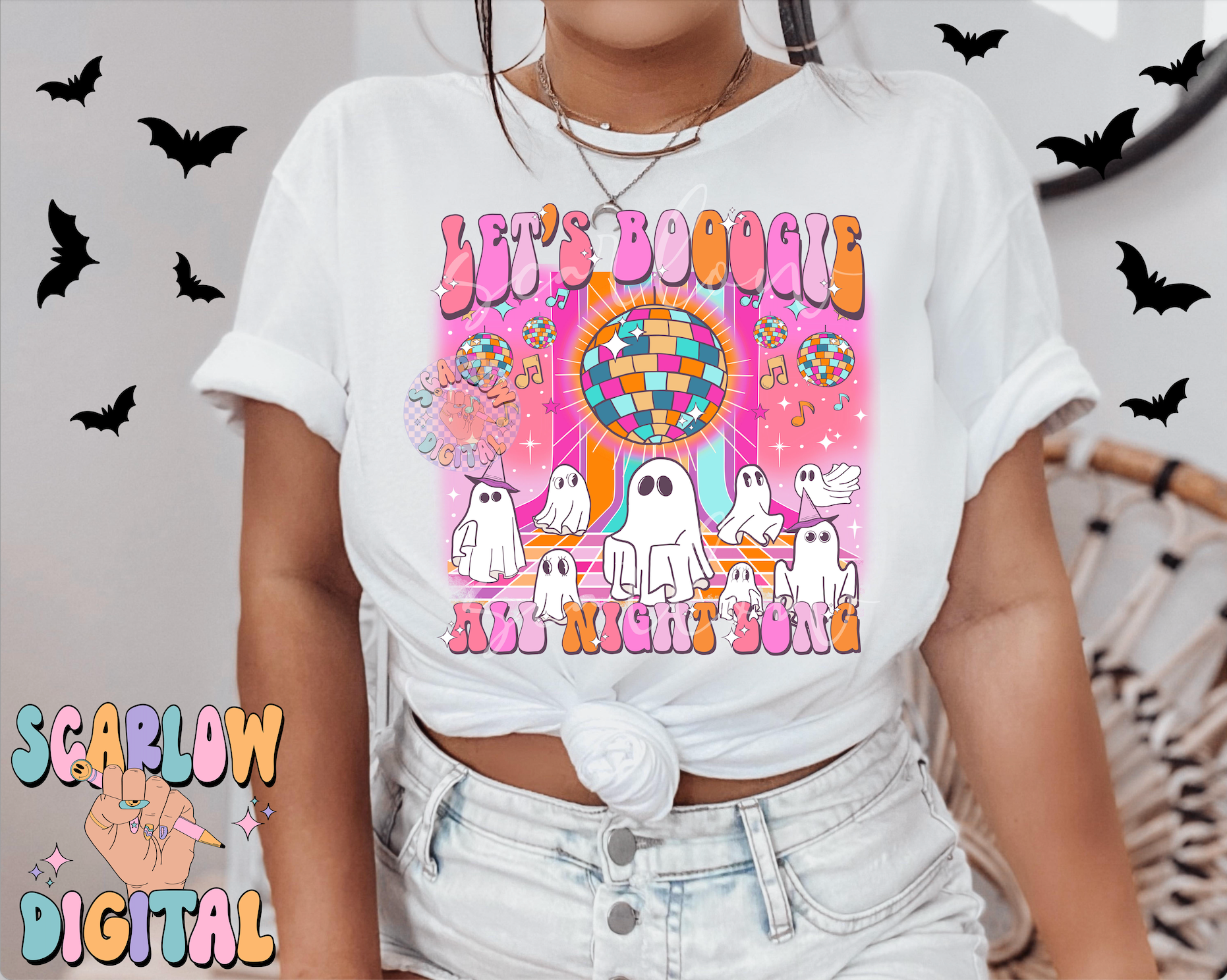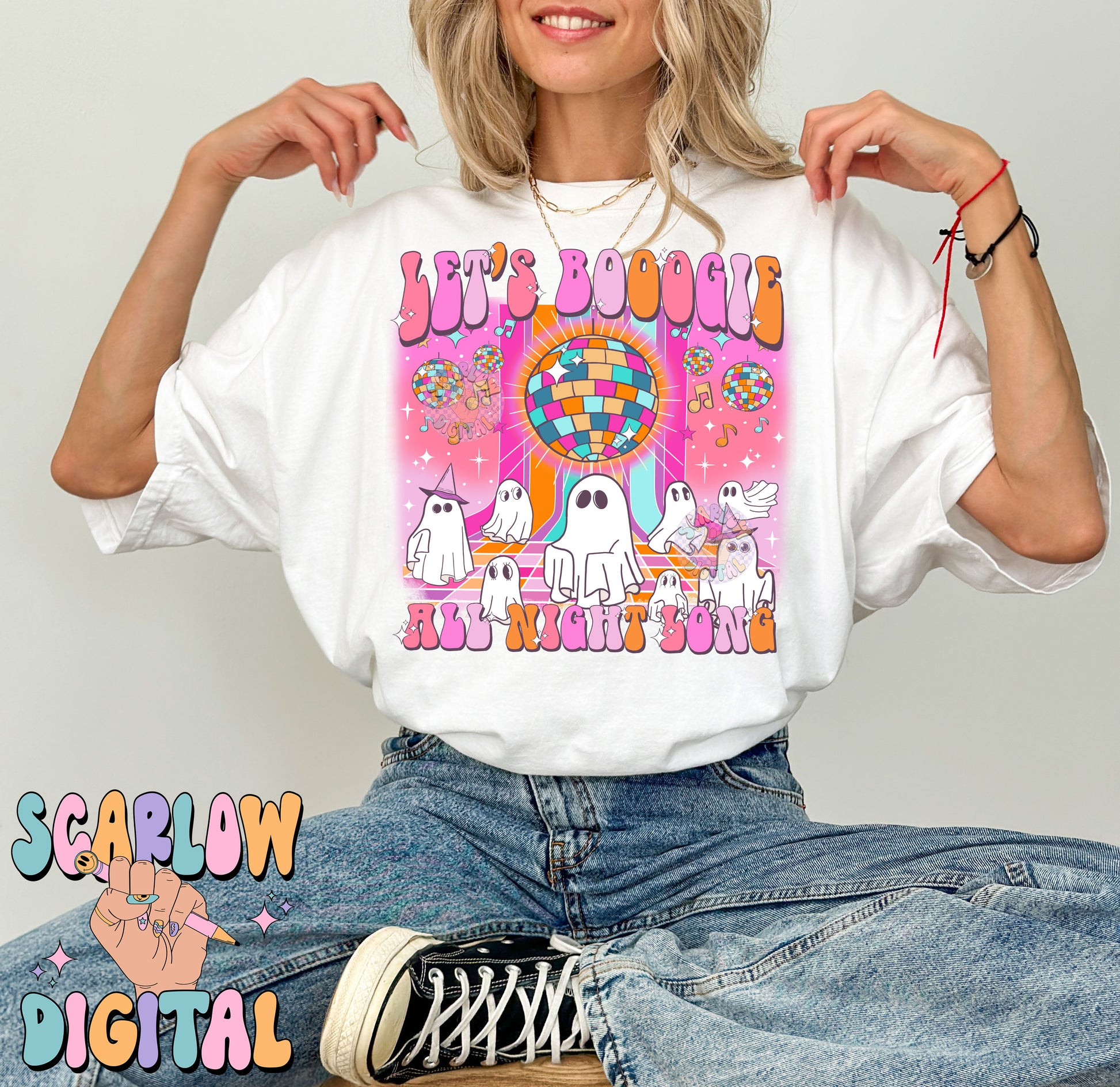 Let's Booogie All Night Long PNG Digital Design Download, halloween png, ghost png, fall png, funky png, groovy halloween png, trendy png
