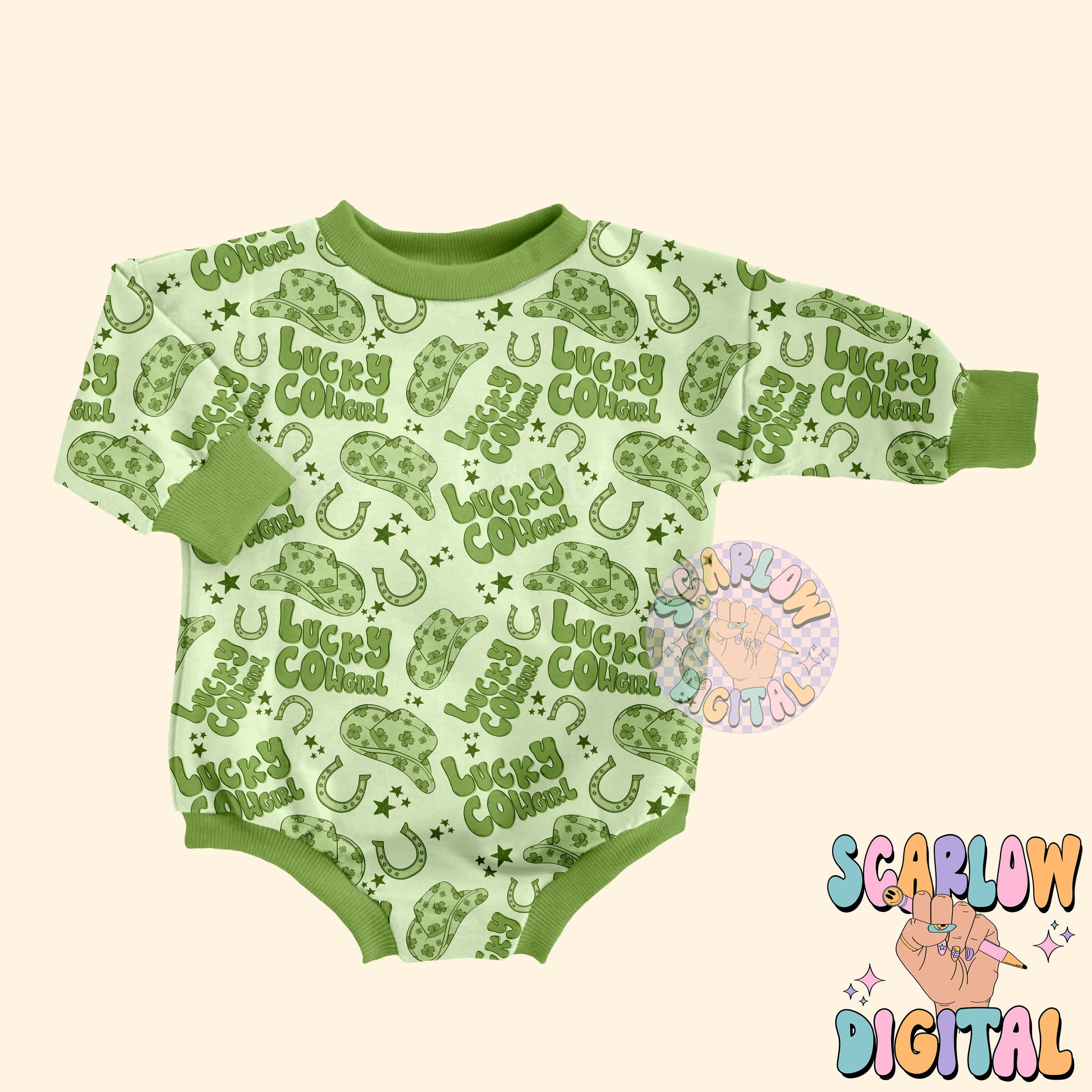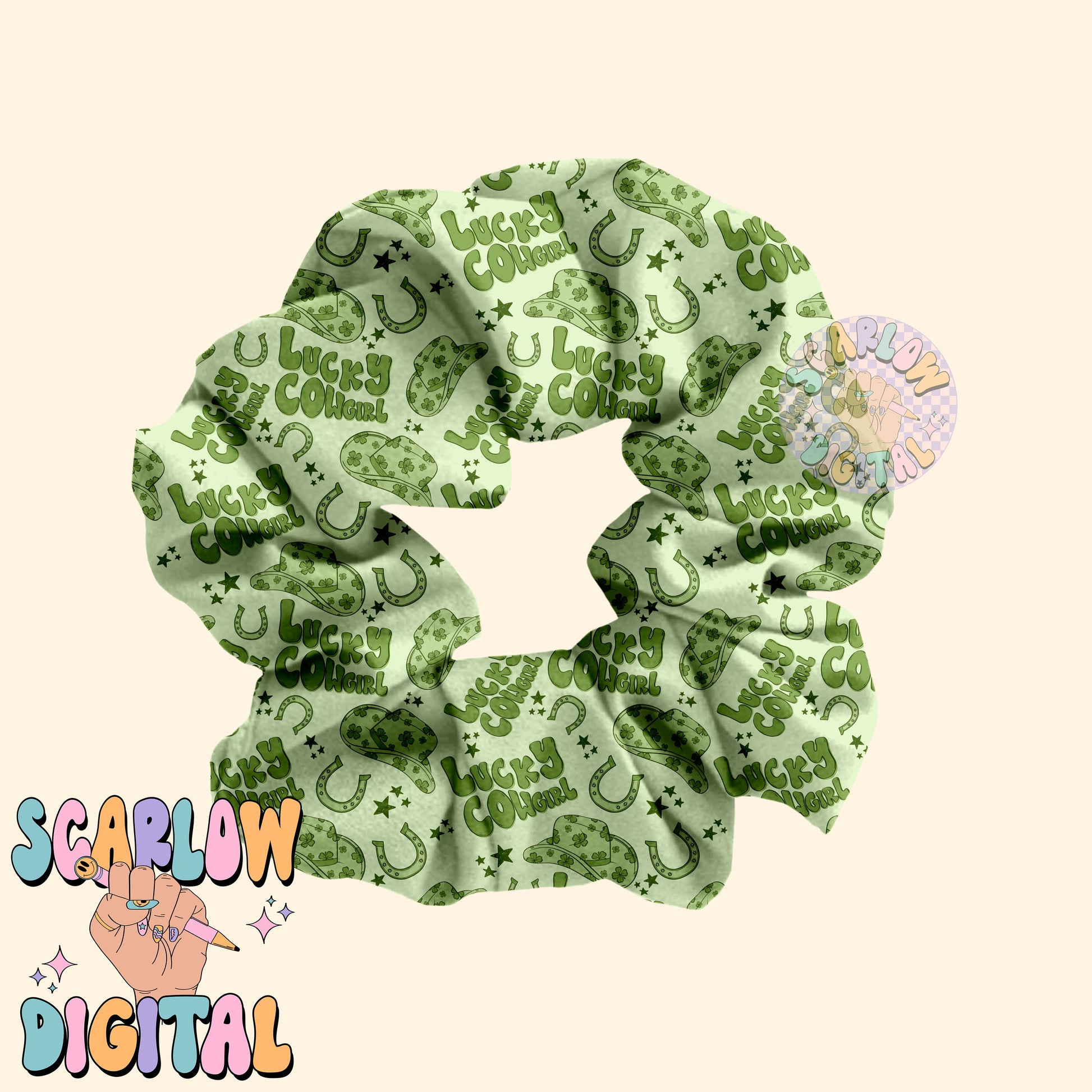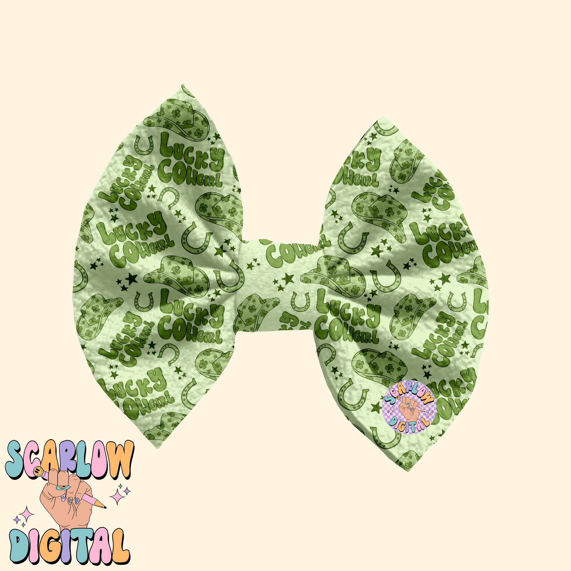 Lucky Cowgirl Seamless Pattern-St Patrick's Day Digital Design Download-shamrock seamless pattern, horseshoe seamless file, western seamless