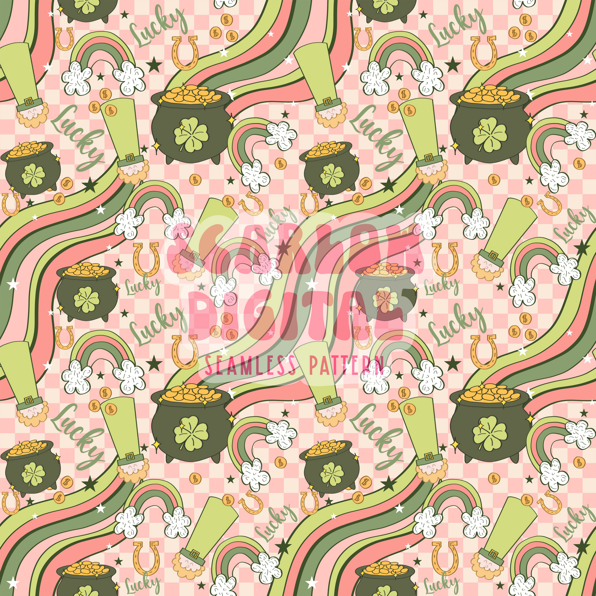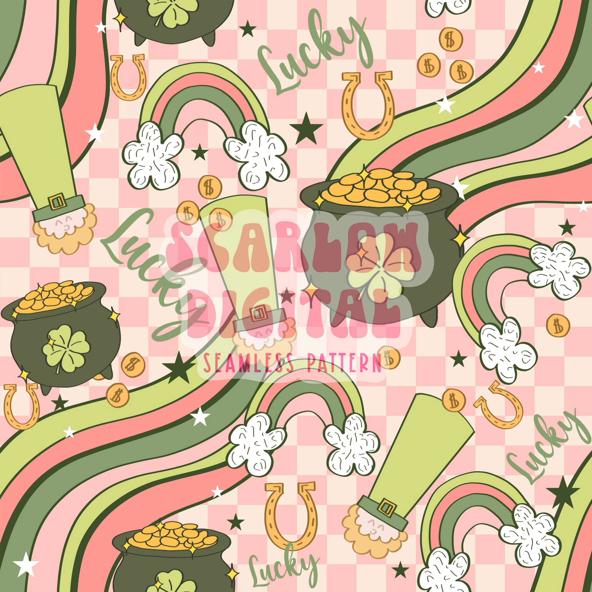 Lucky Rainbow Seamless Pattern-Saint Patty's Day Sublimation Digital Design Download- leprechaun seamless pattern, lucky girl seamless file