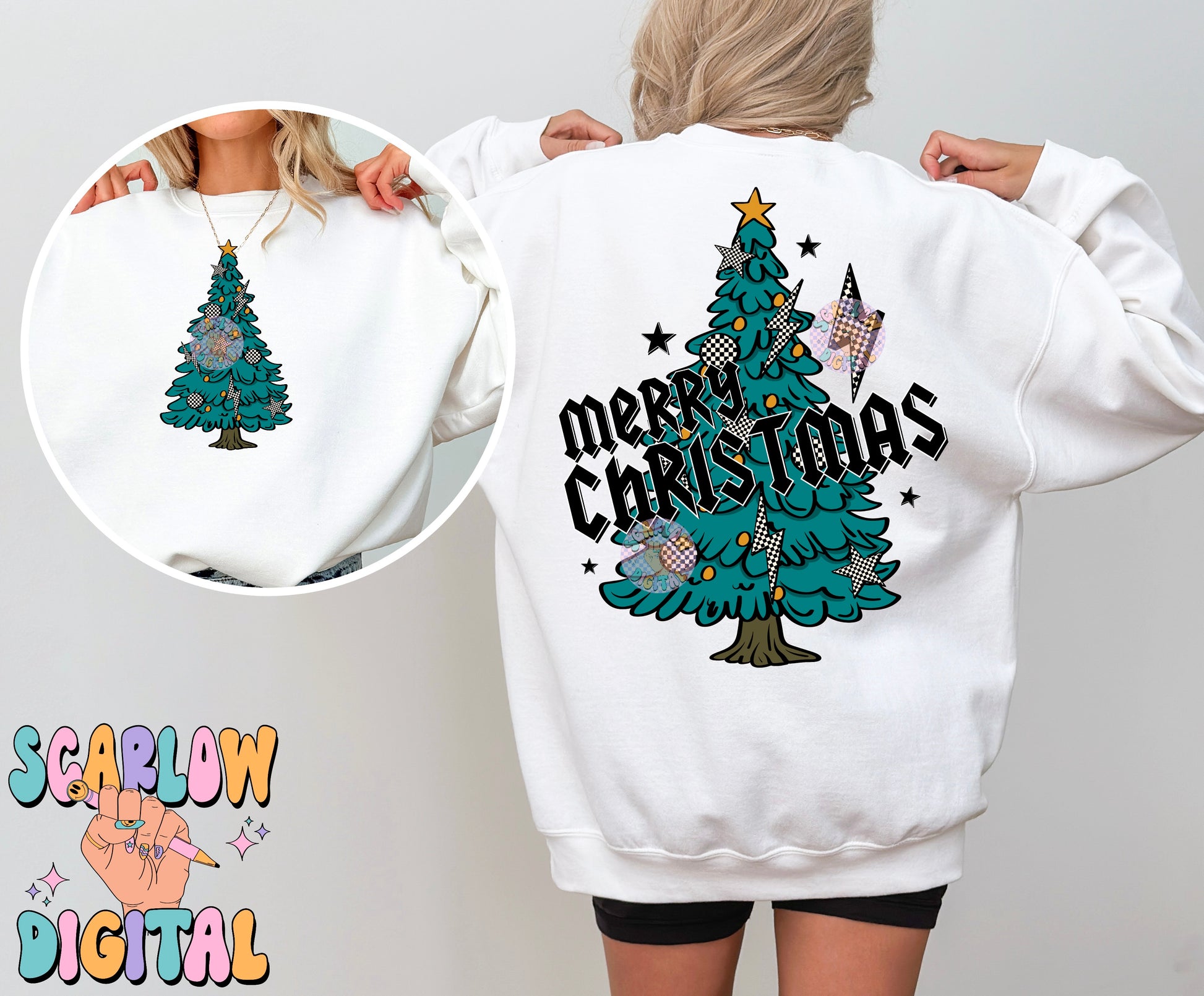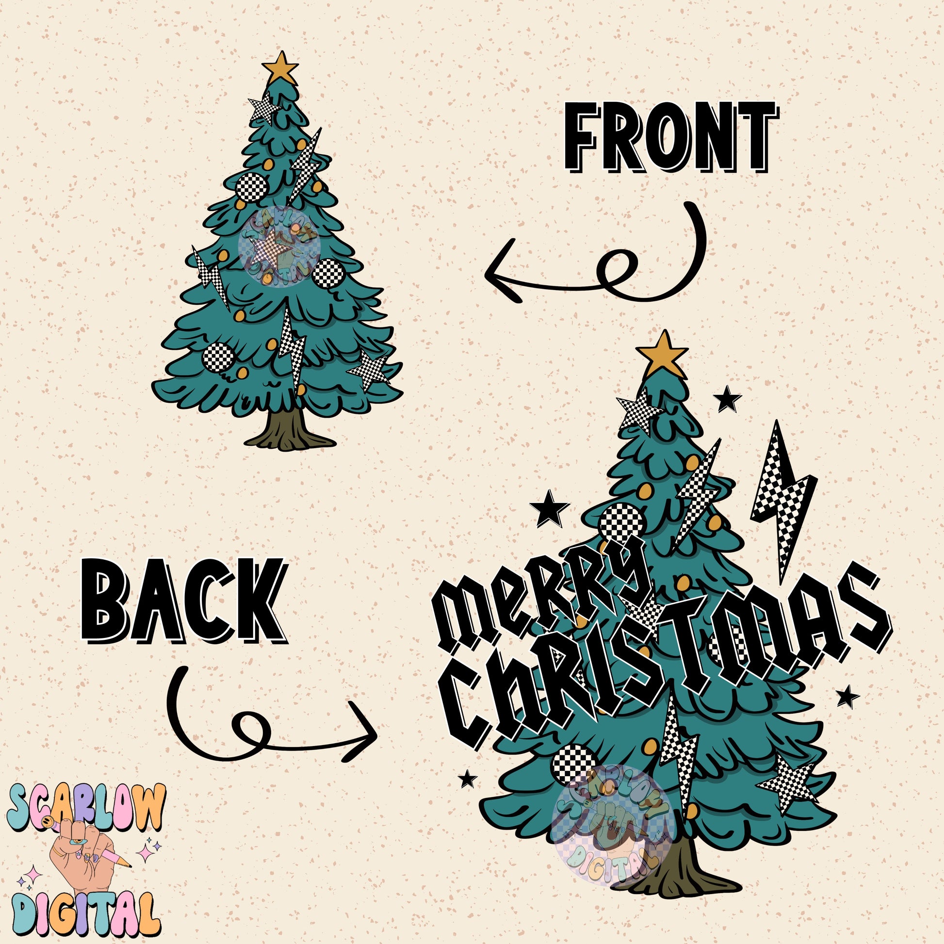 Merry Christmas Rocker Tree Front and Back PNG Digital Design Download, checkered christmas, rocker christmas, boy christmas designs