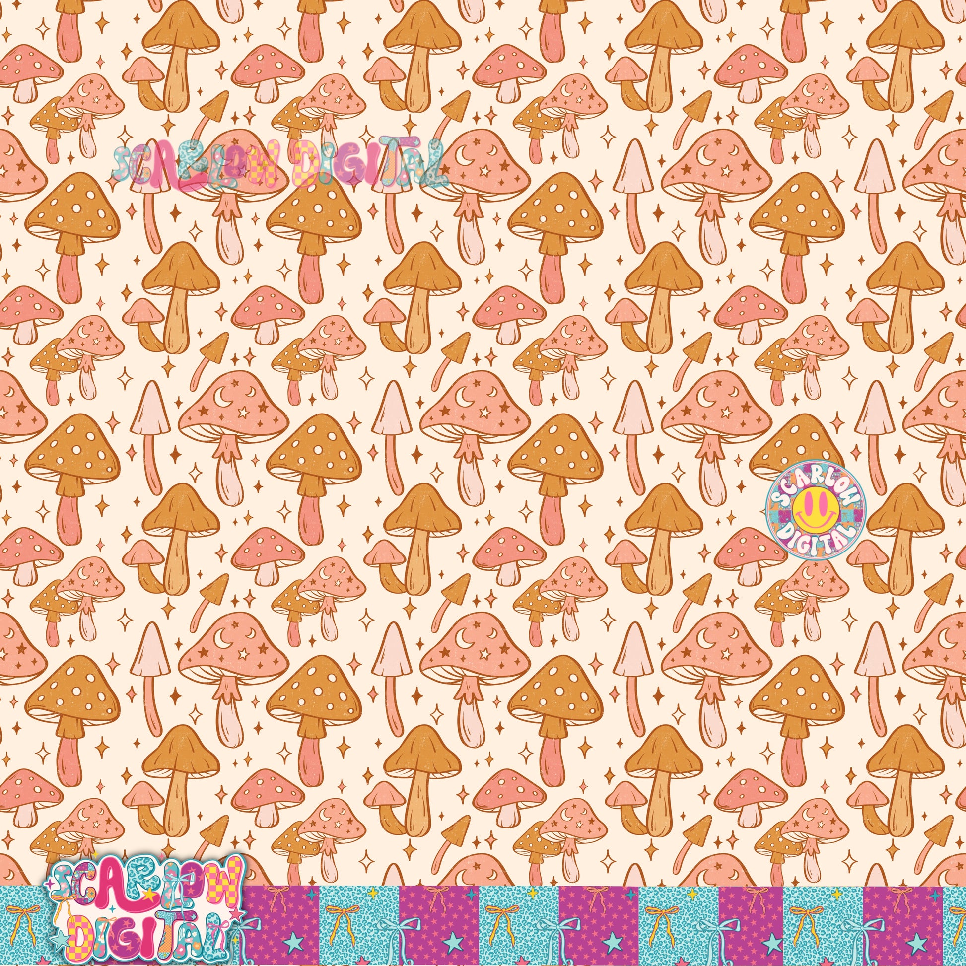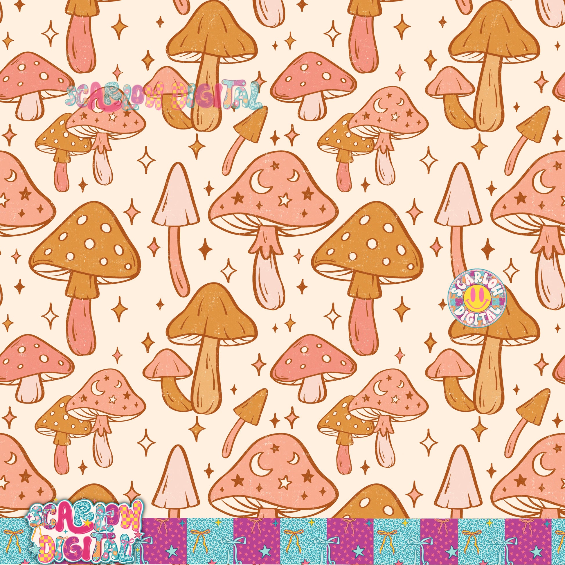 Mushrooms Seamless Pattern Digital Design