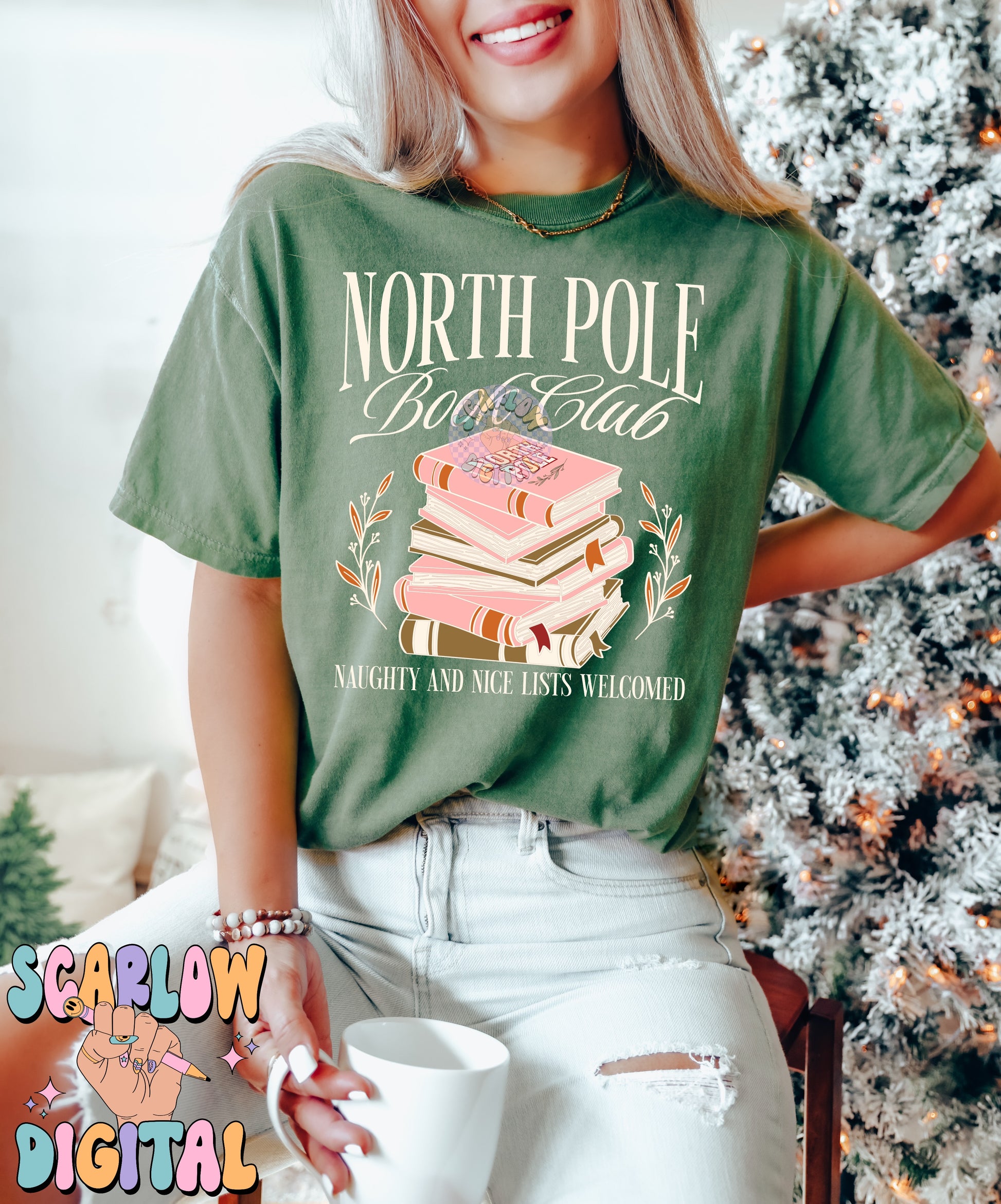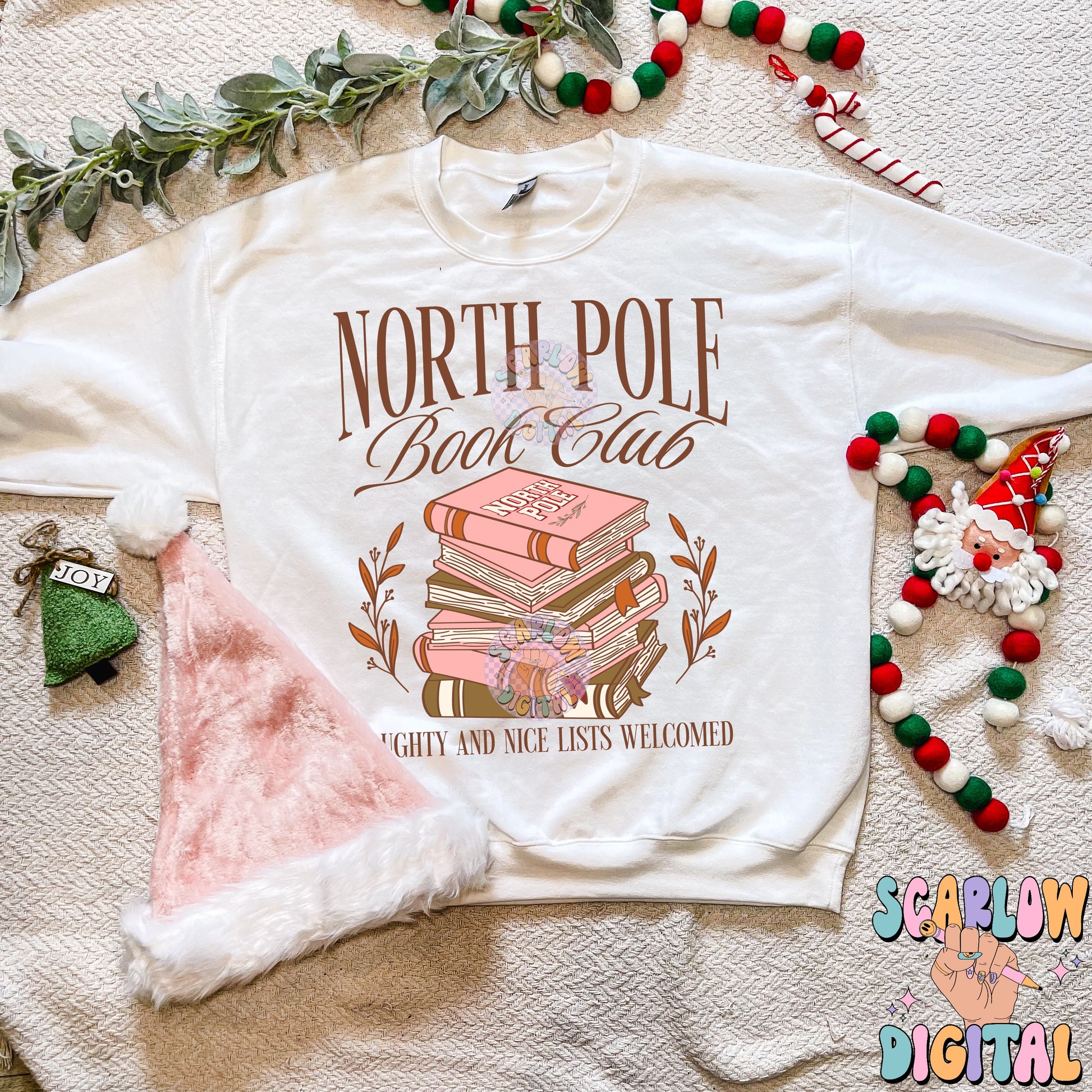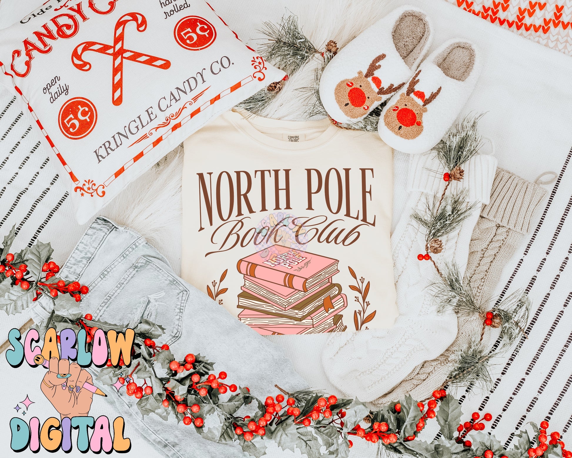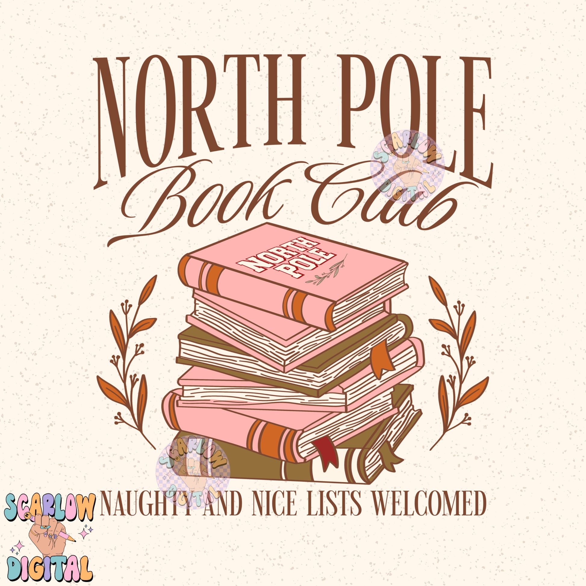 North Pole Book Club PNG Digital Design Download, christmas png, reading png, book lover png, trendy christmas designs, whimsical christmas