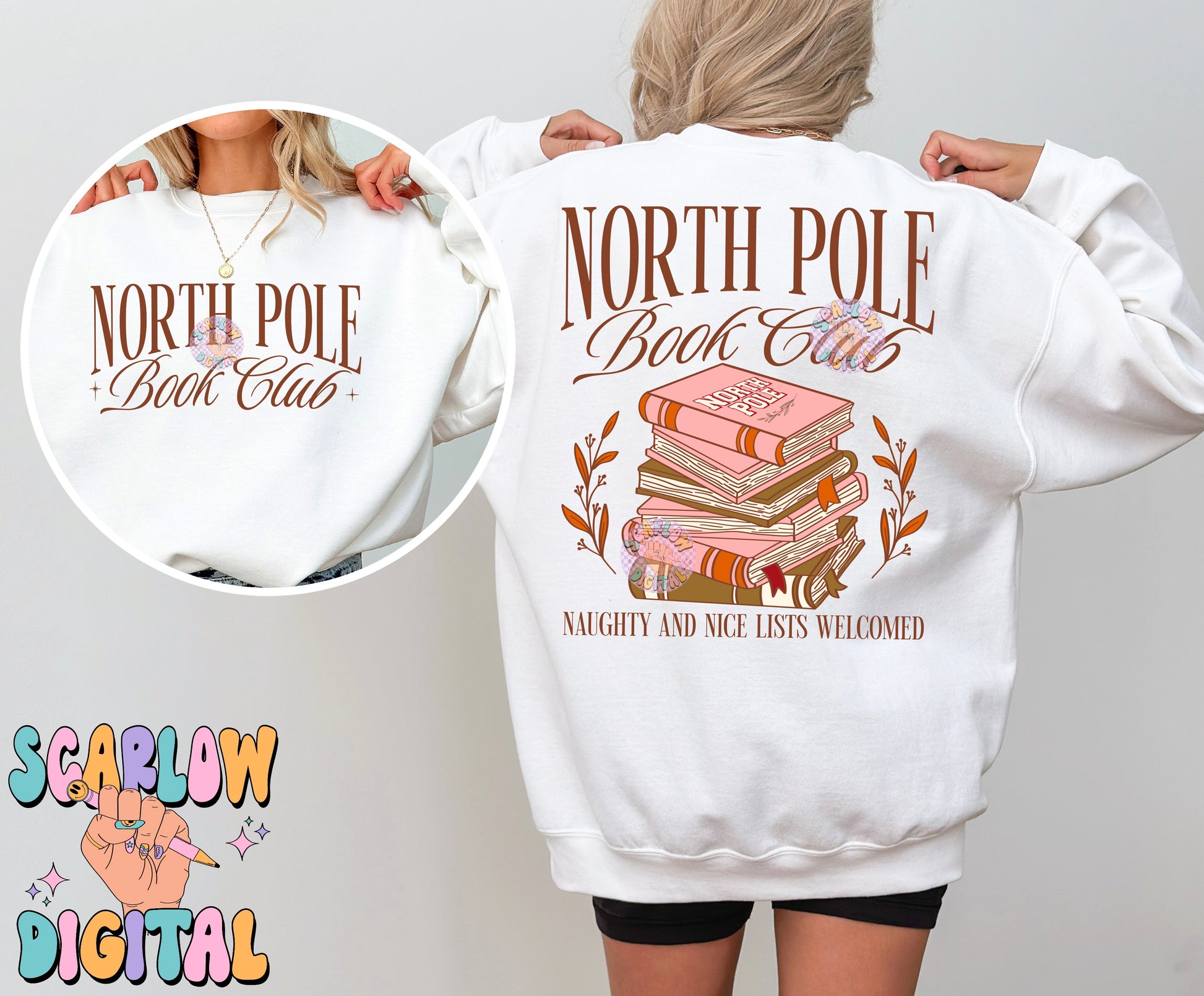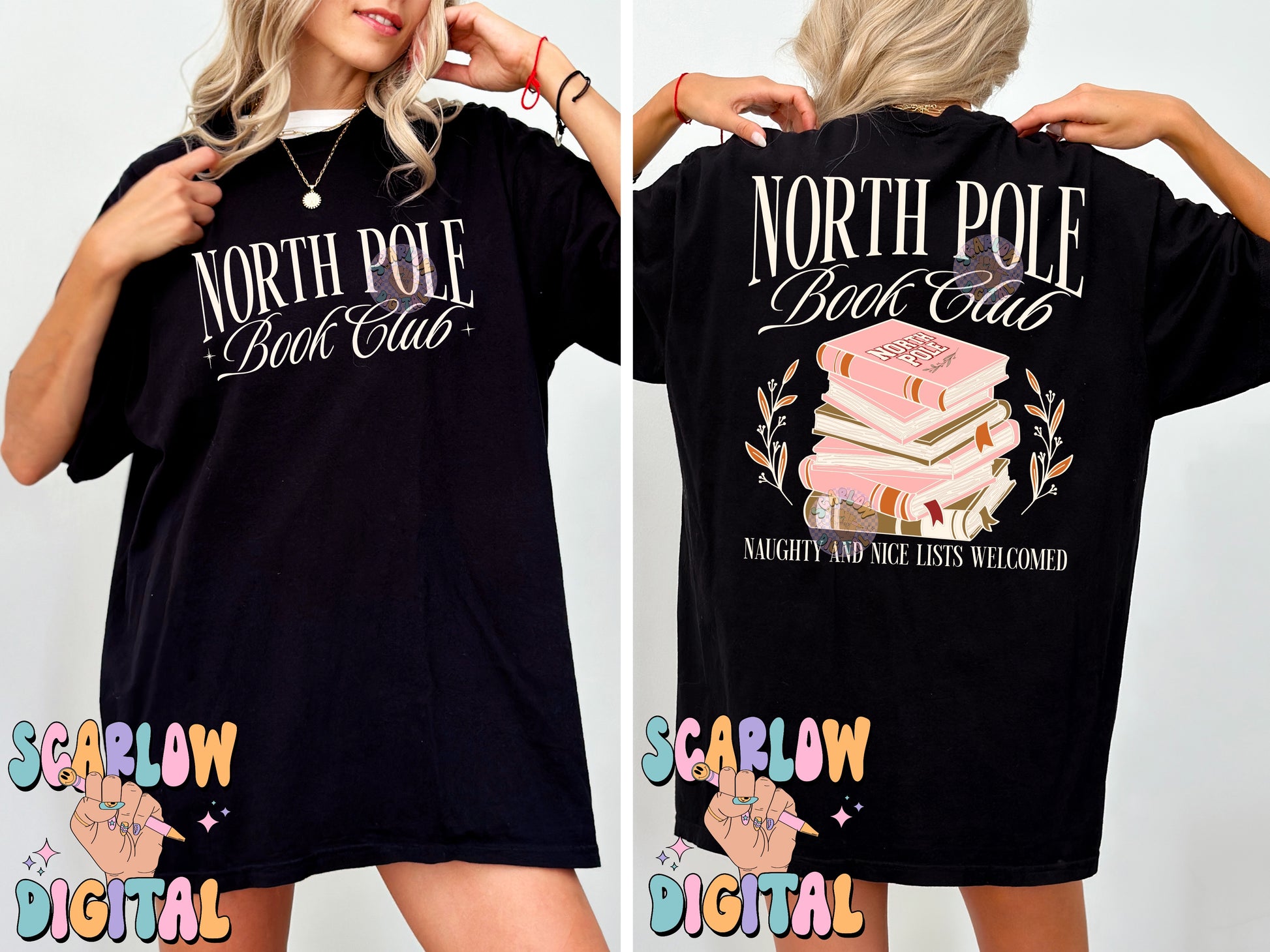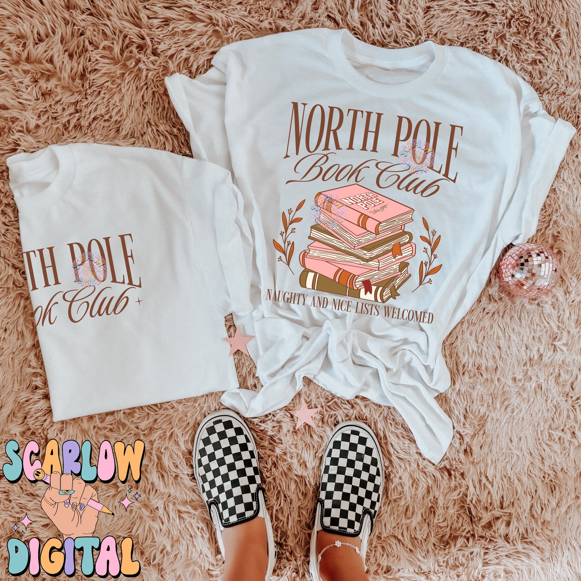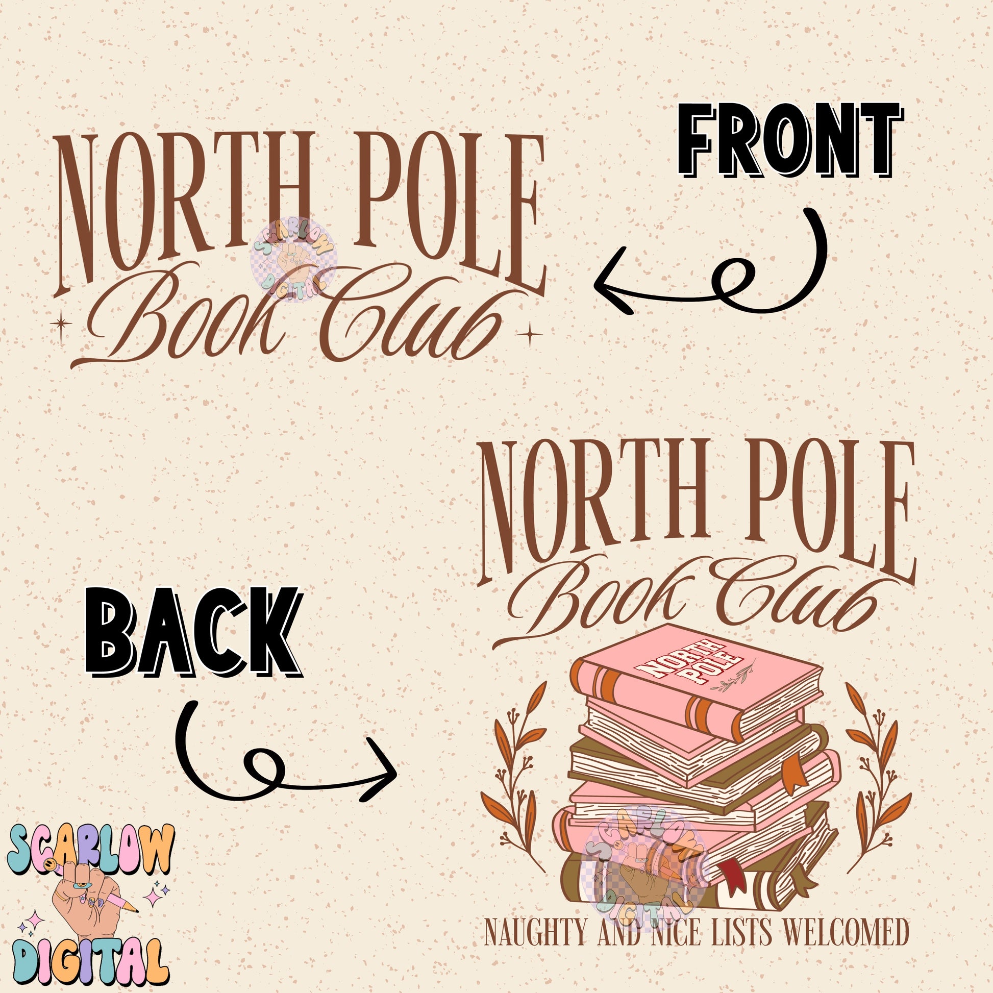 North Pole Book Club Front and Back PNG Digital Design Download, christmas png, reading png, book lover png, trendy christmas designs, whimsical christmas