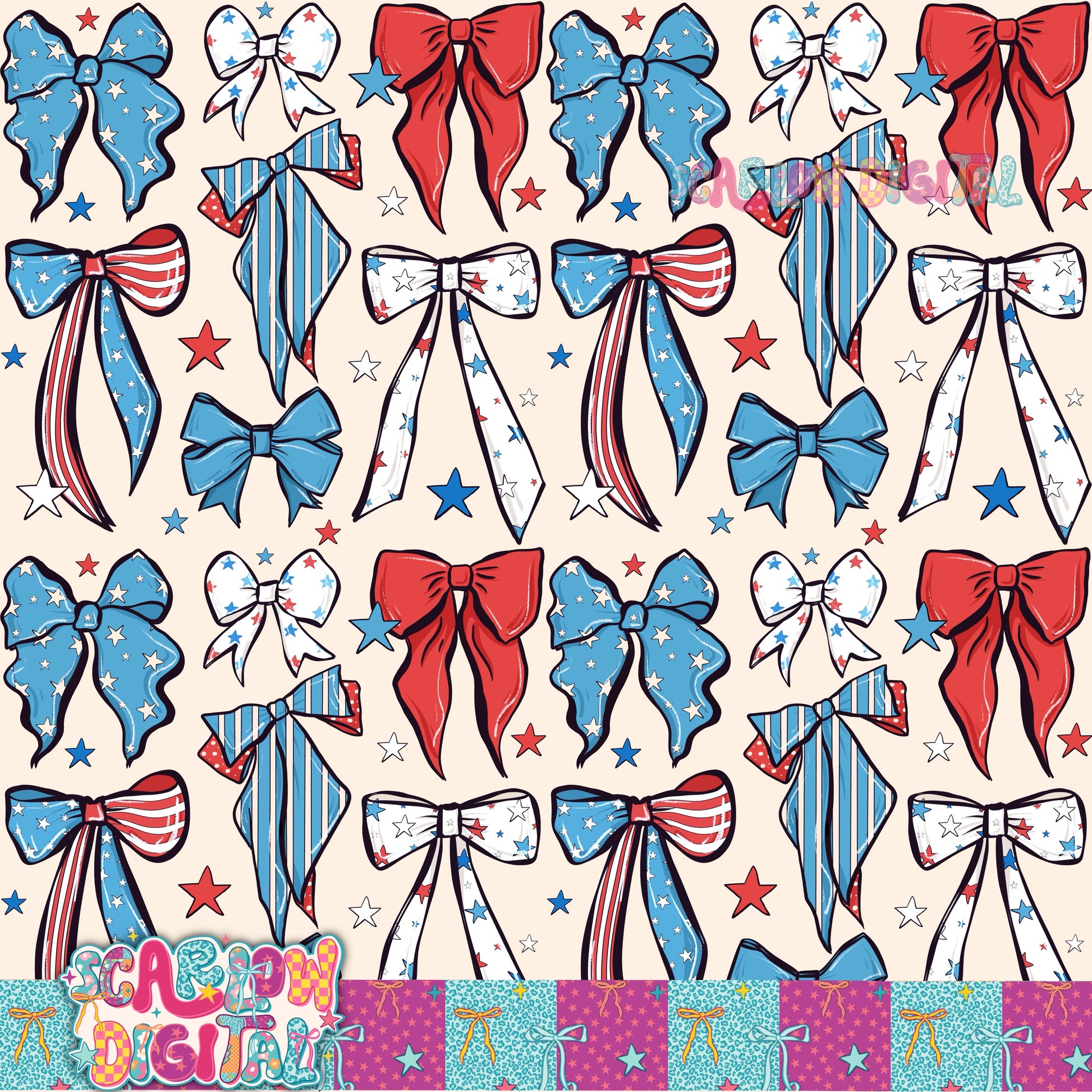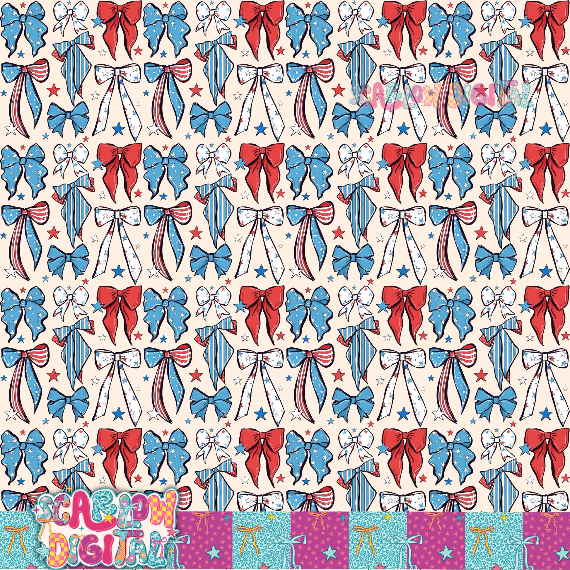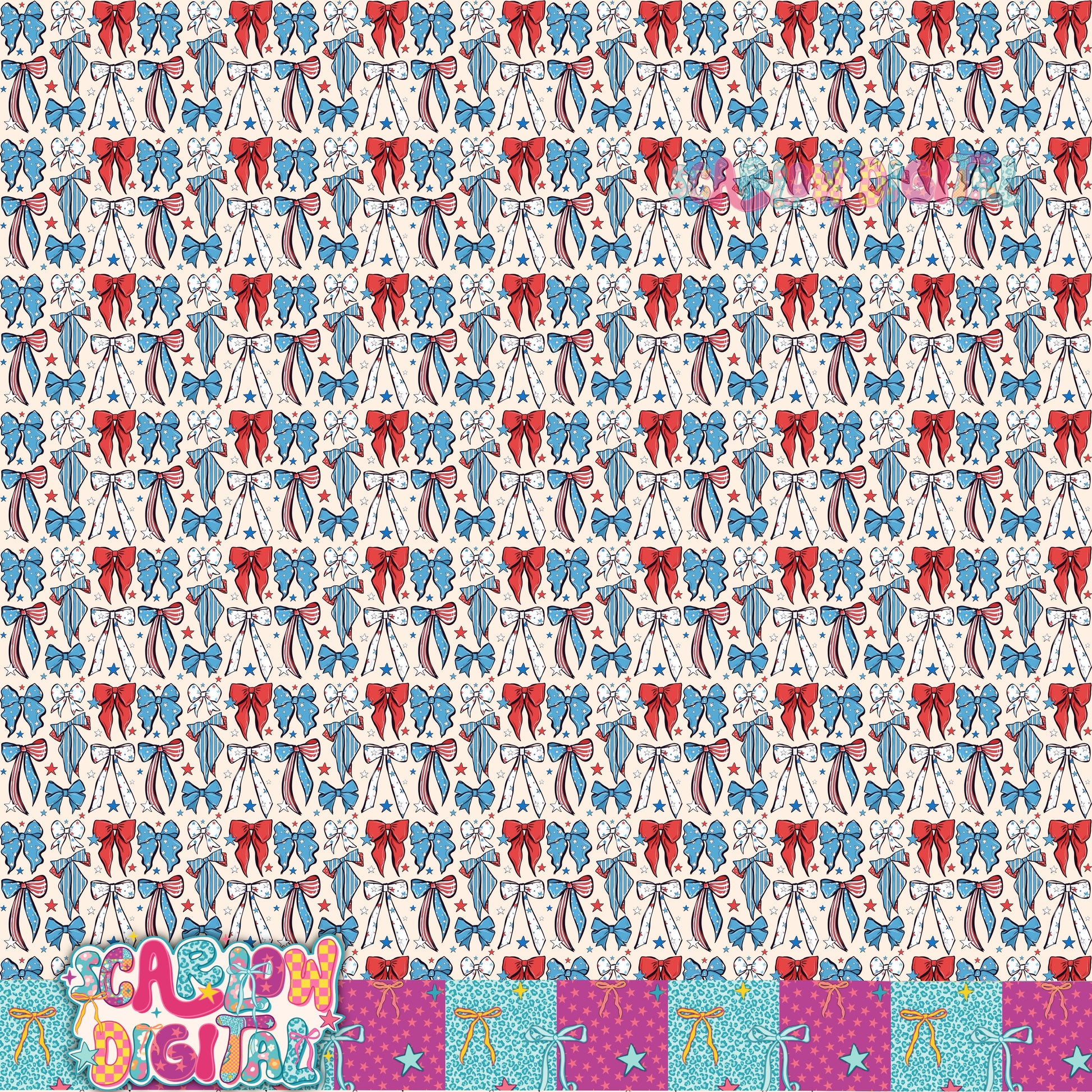 Patriotic Bows Seamless Pattern Digital Design