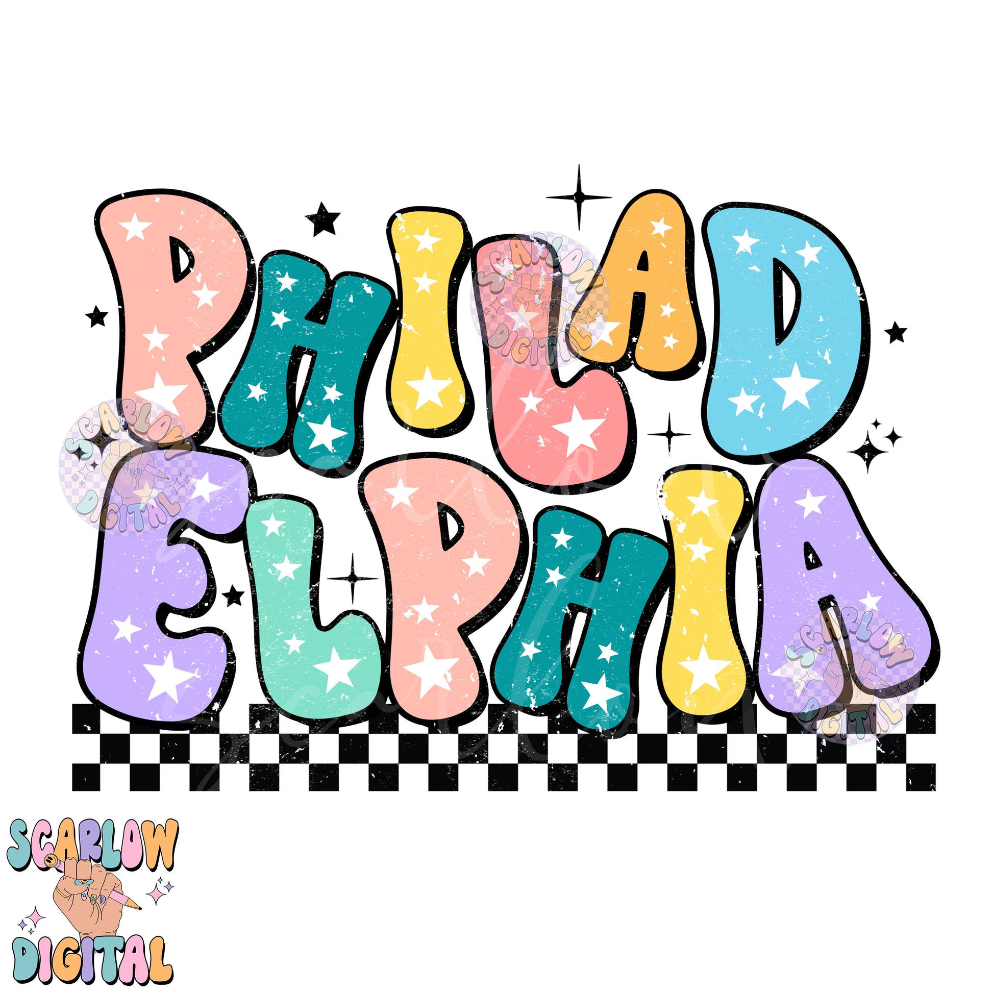 Philadelphia PNG Digital Design Download, city png design, colorful png, star png, women png, Philadelphia tshirt png, retro png designs