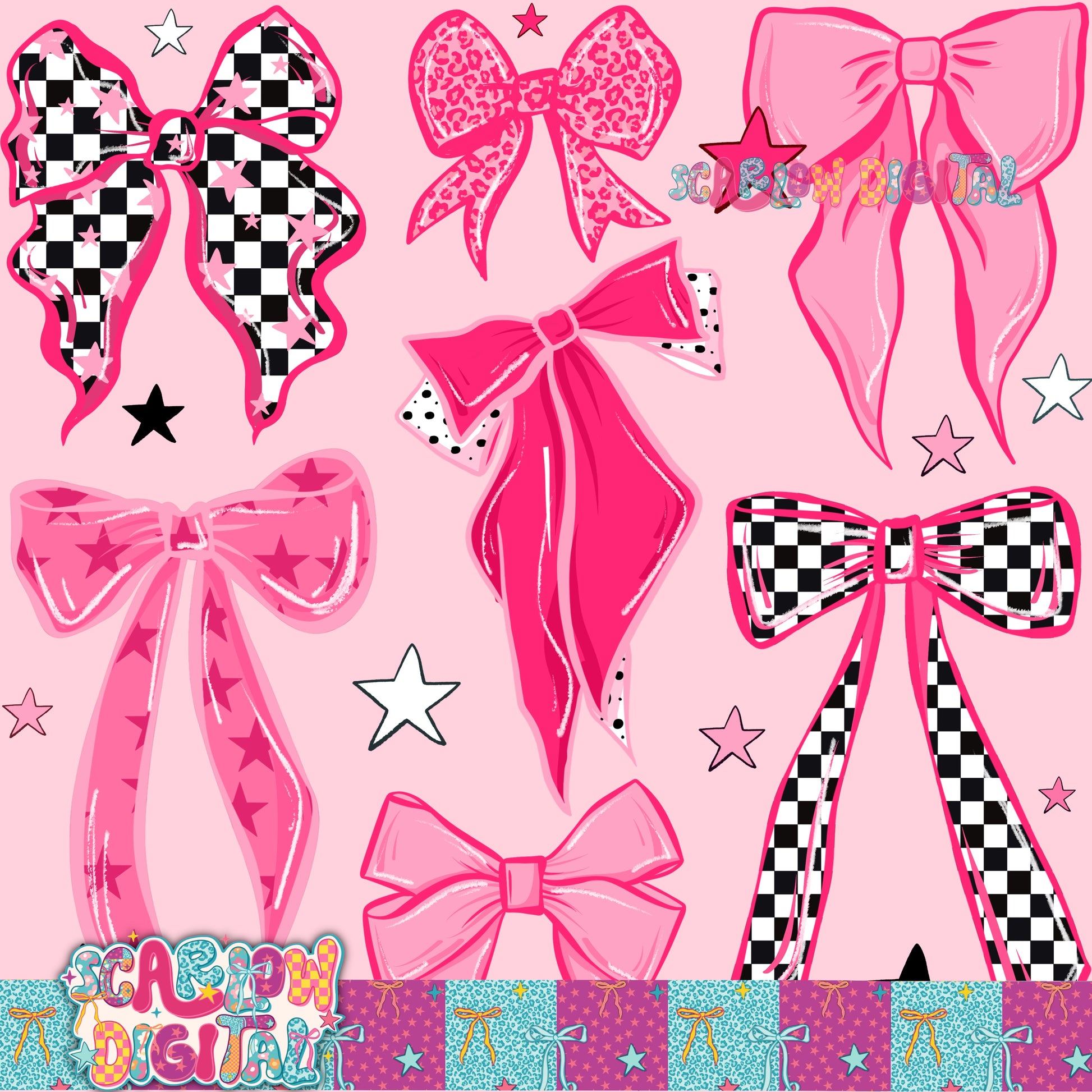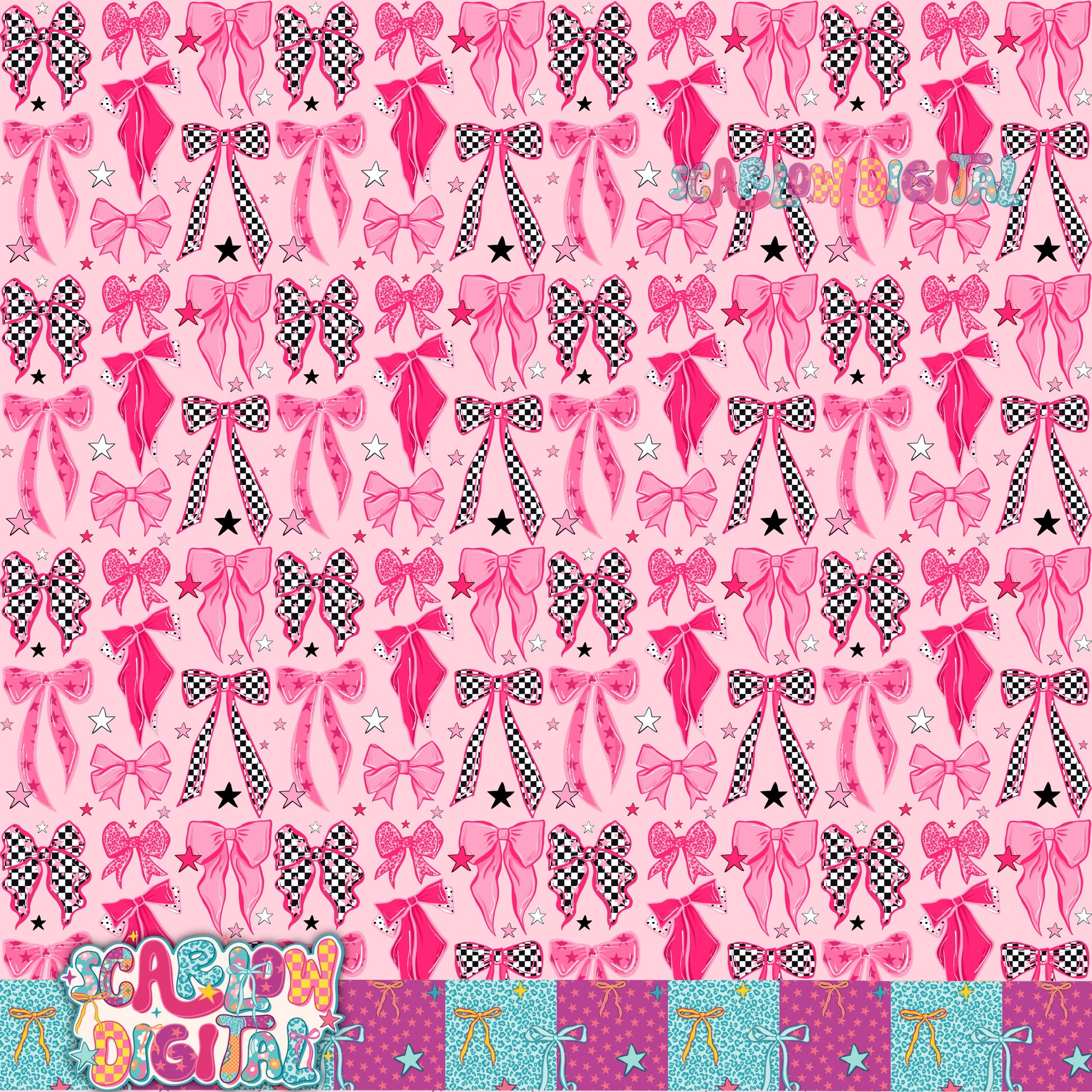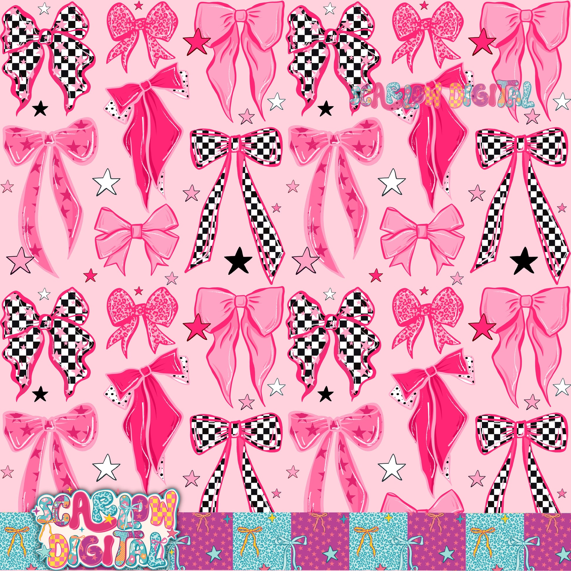 Pink and Checkered Bows Seamless Pattern Digital Design