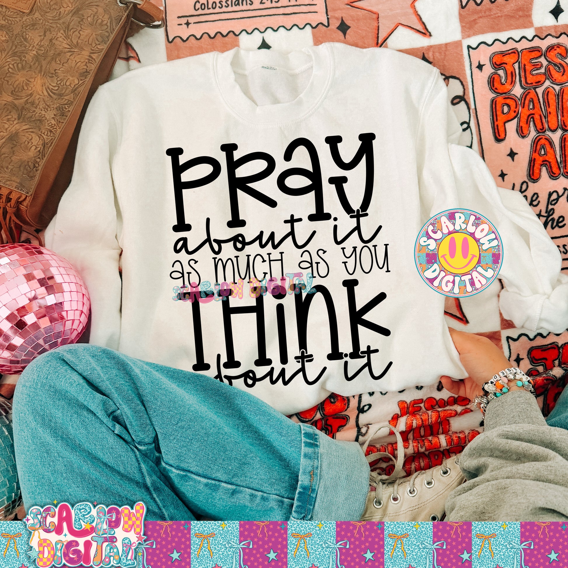 Pray About it As Much As You Think About It PNG Digital Design