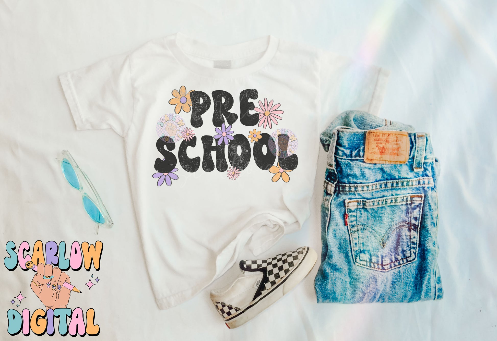 Preschool PNG Digital Design Download, back to school png, little girl png, flowers png, floral png, trendy school designs, girl tshirt png