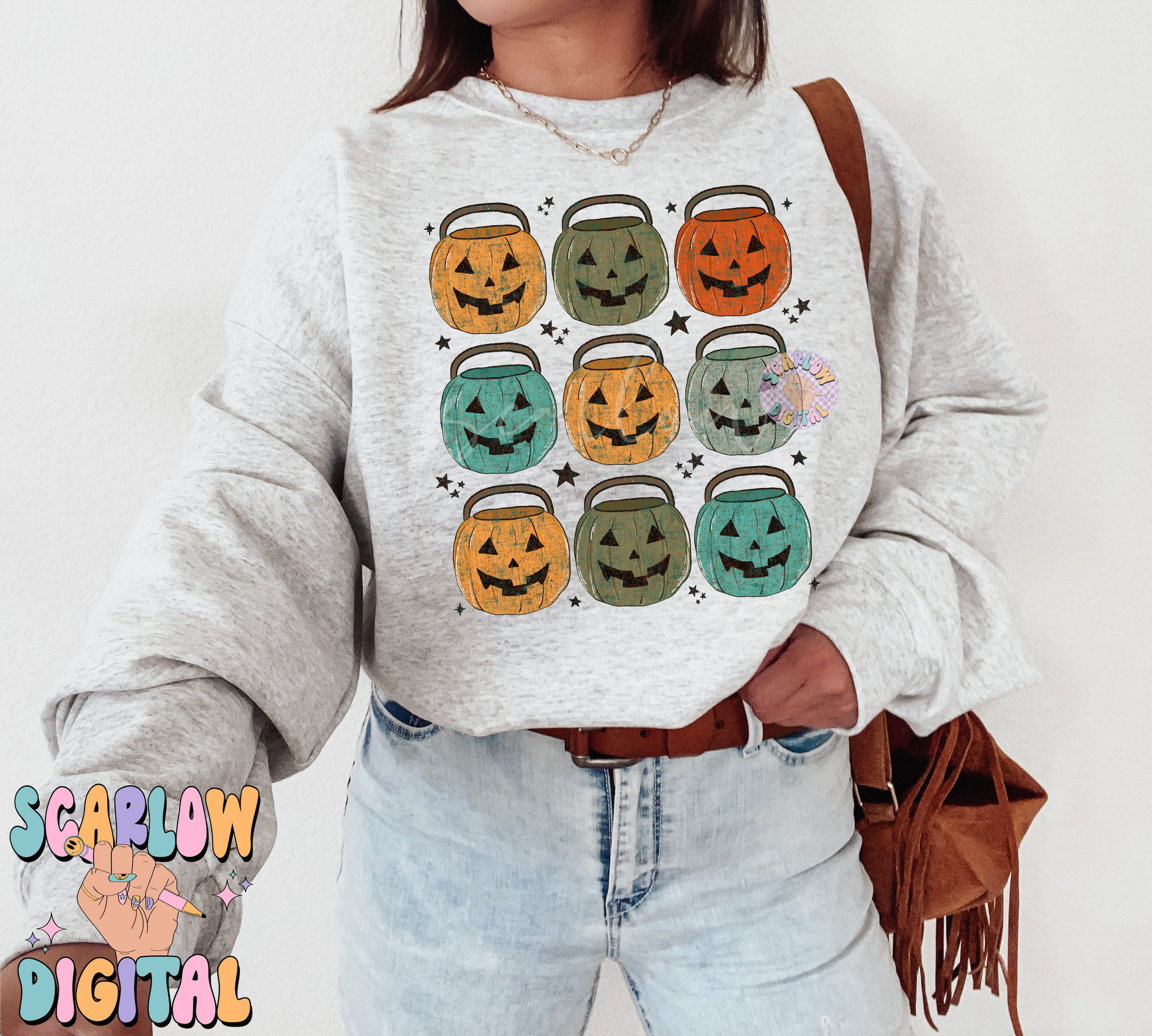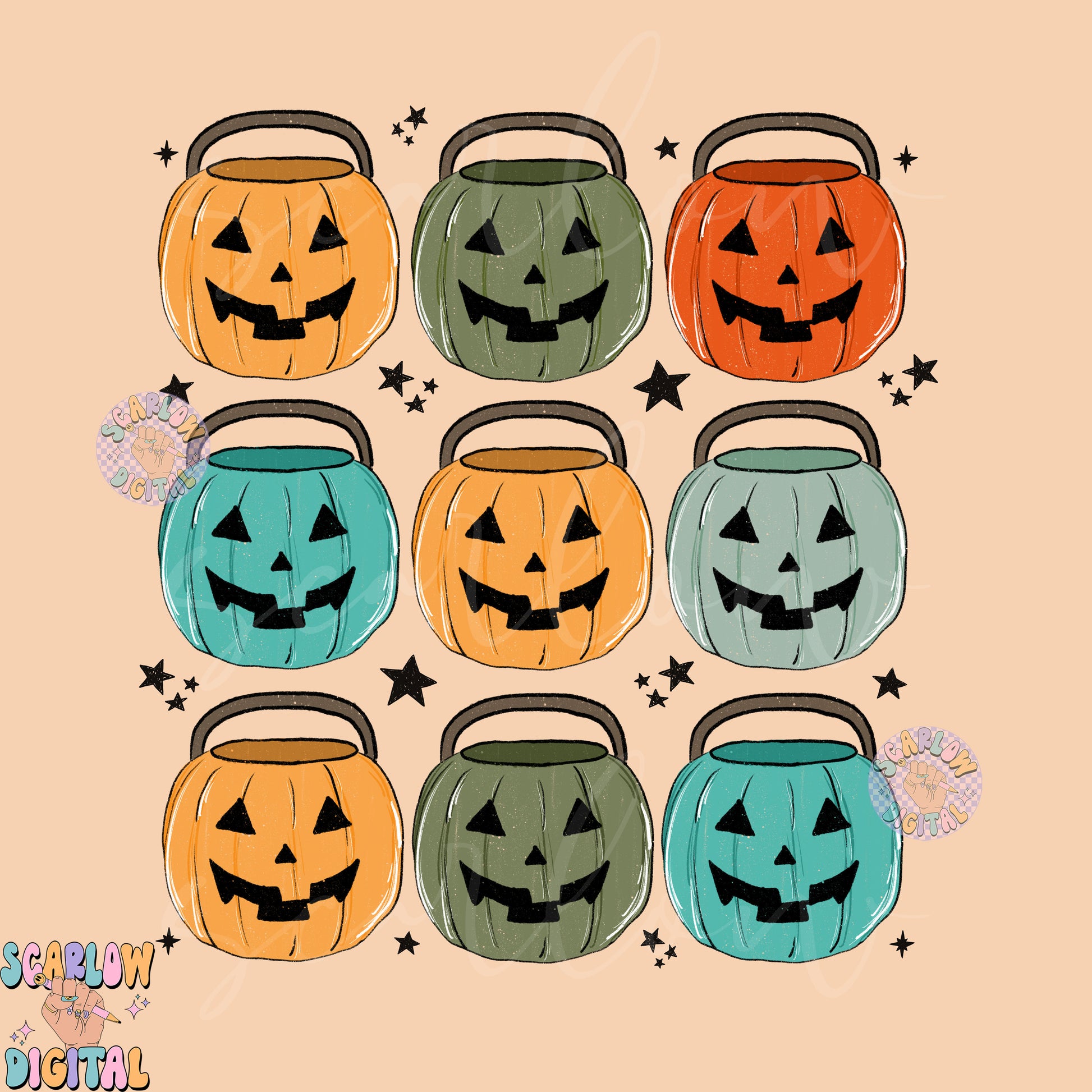 Pumpkin Buckets PNG-Halloween Sublimation Digital Design Download-boy halloween png, trick or treat png, fall png, fall halloween png design