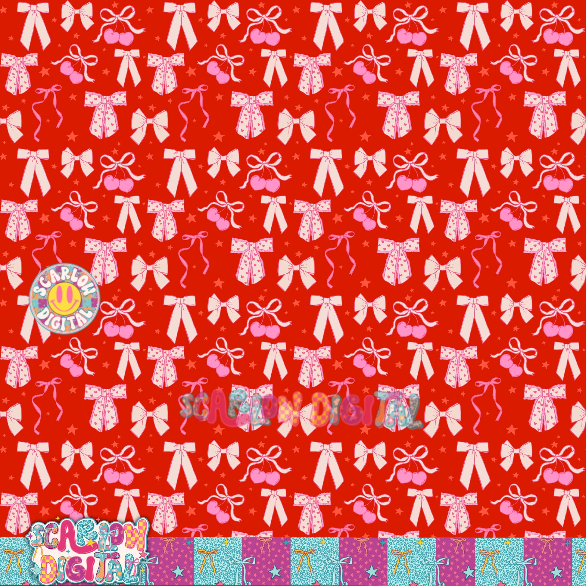 Red Valentine's Day Bows Seamless Pattern Digital Design