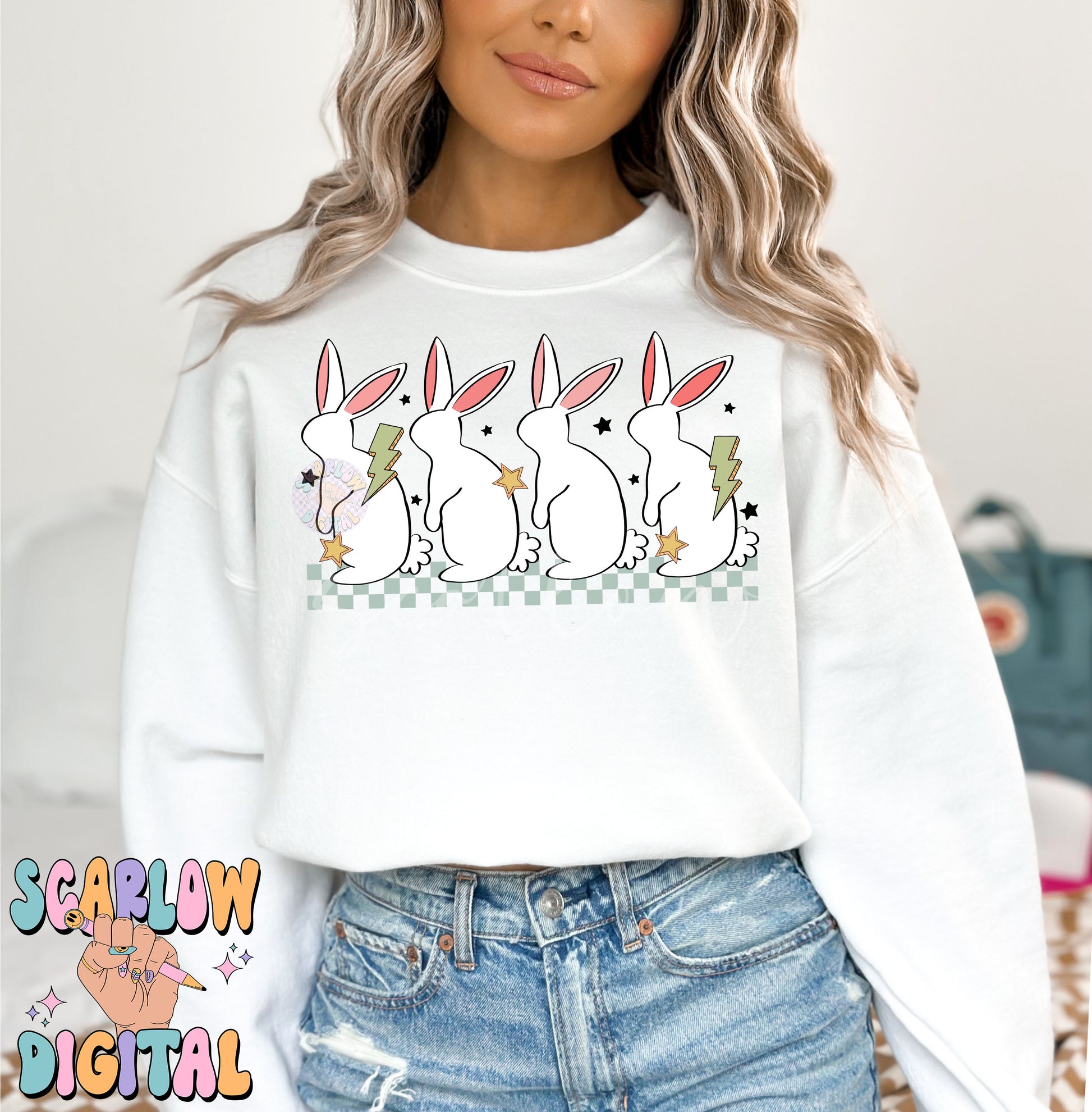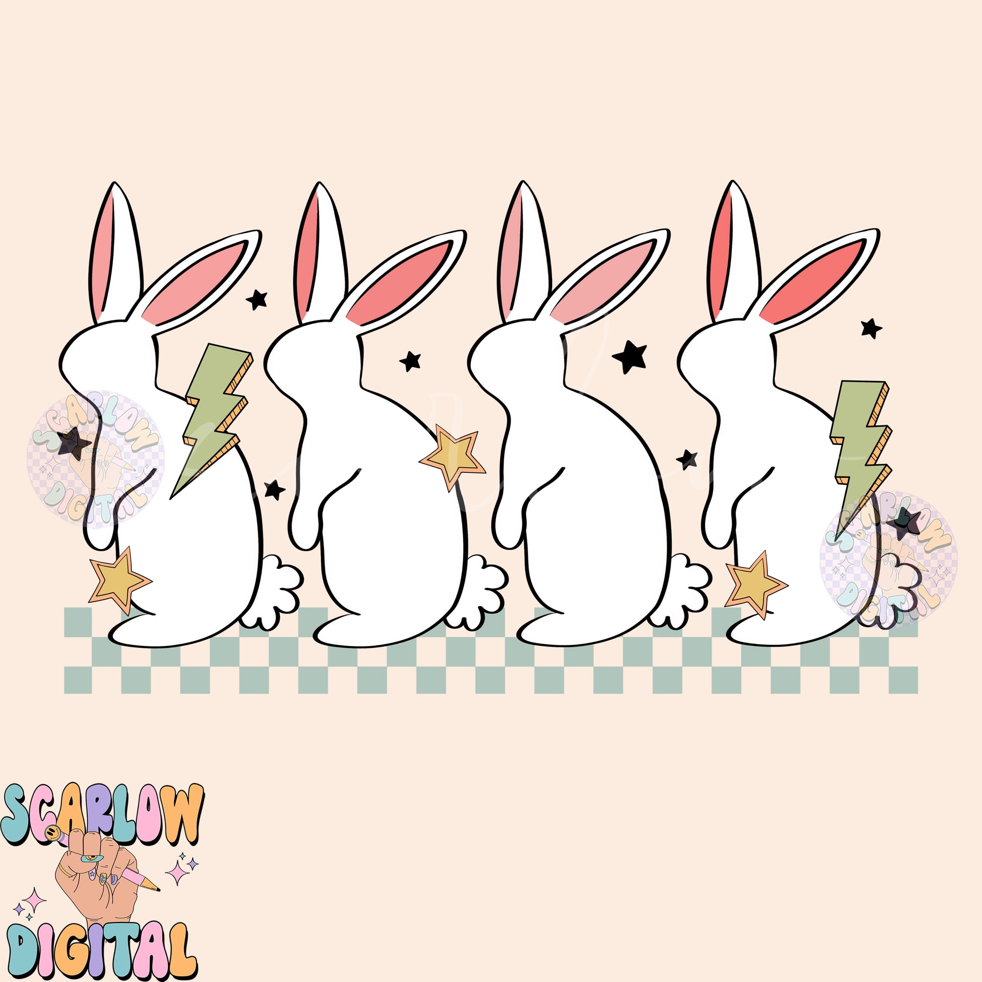 Retro Easter Bunnies PNG Sublimation Digital Design Download, stars png, retro boy png, easter png, boy easter png, no words png designs