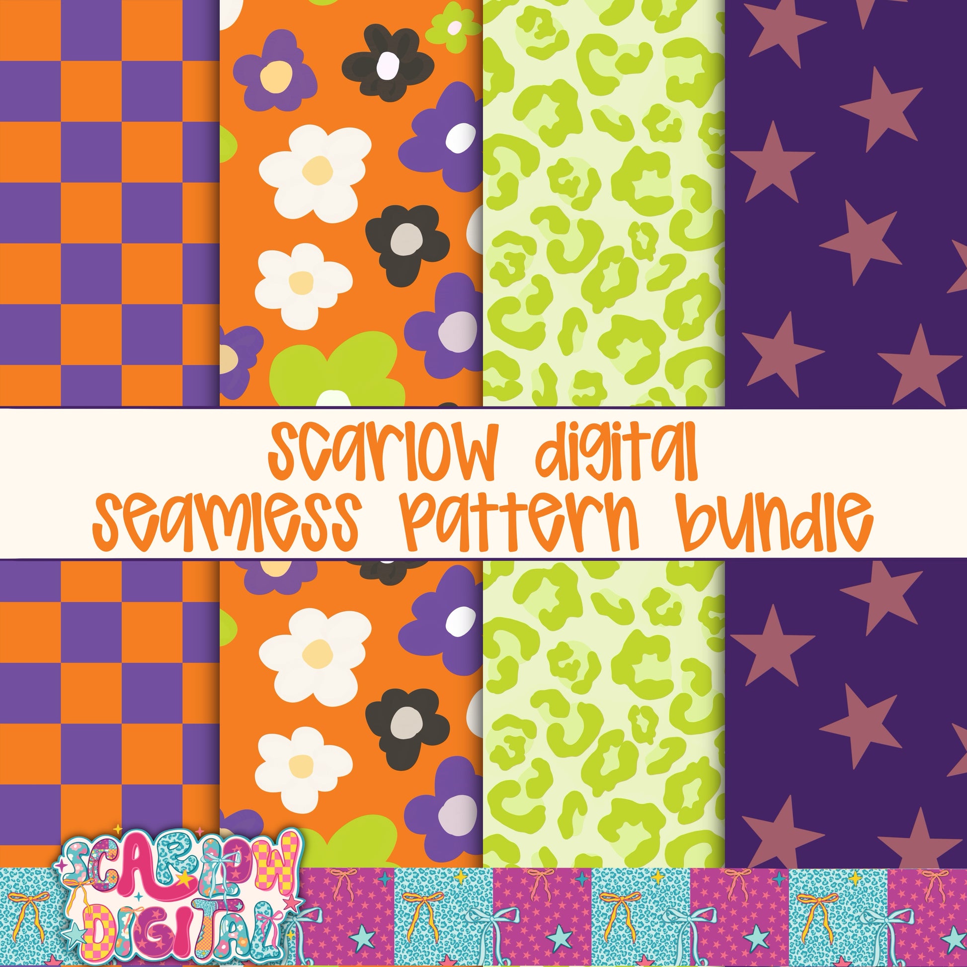 Retro Spooky Halloween Seamless Pattern Bundle Digital Design