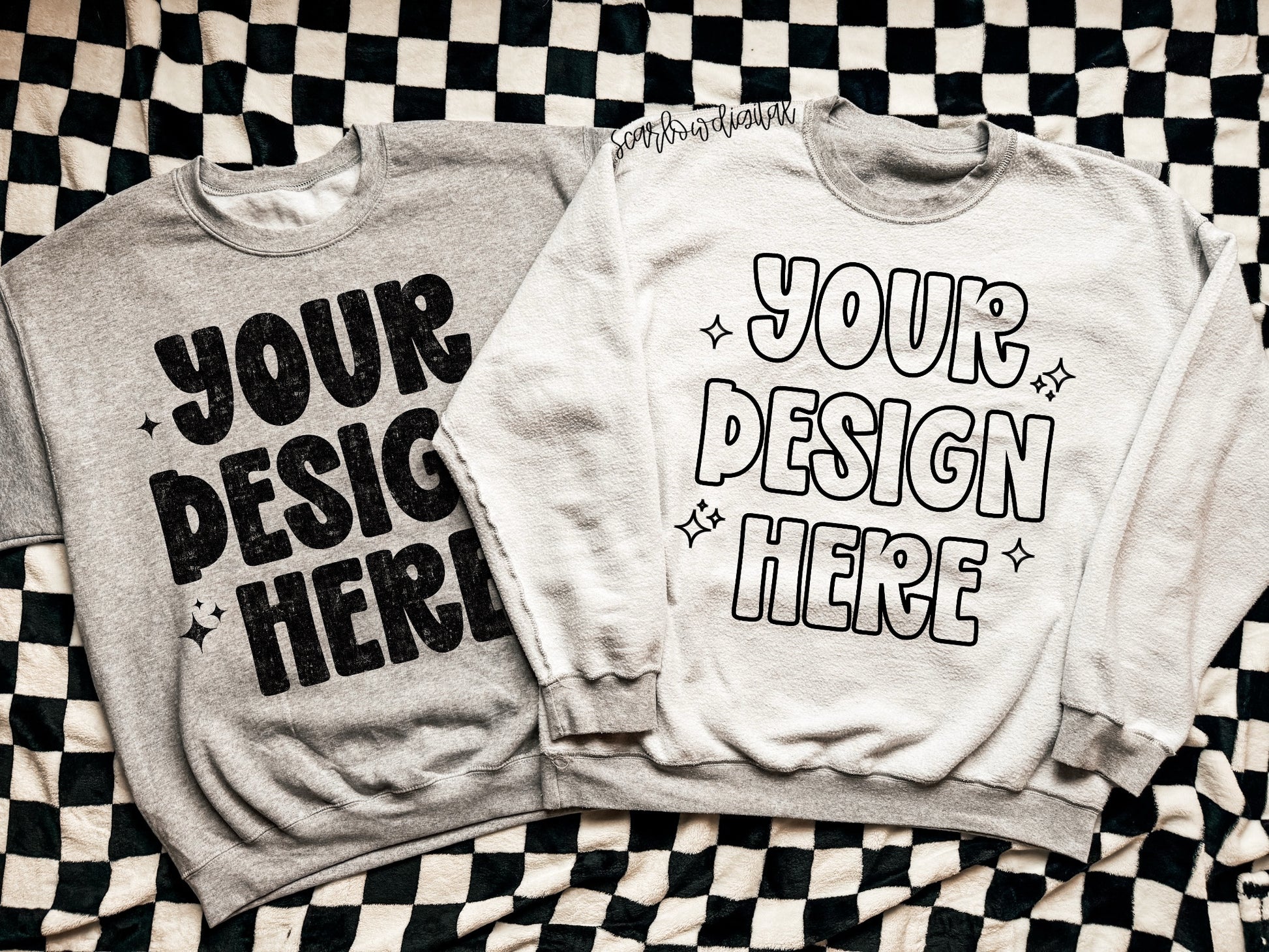 Reversible/Inside-Out Trend Ash Grey Gildan - Unisex Heavy Blend Crewneck Sweatshirt 18000 Mockup