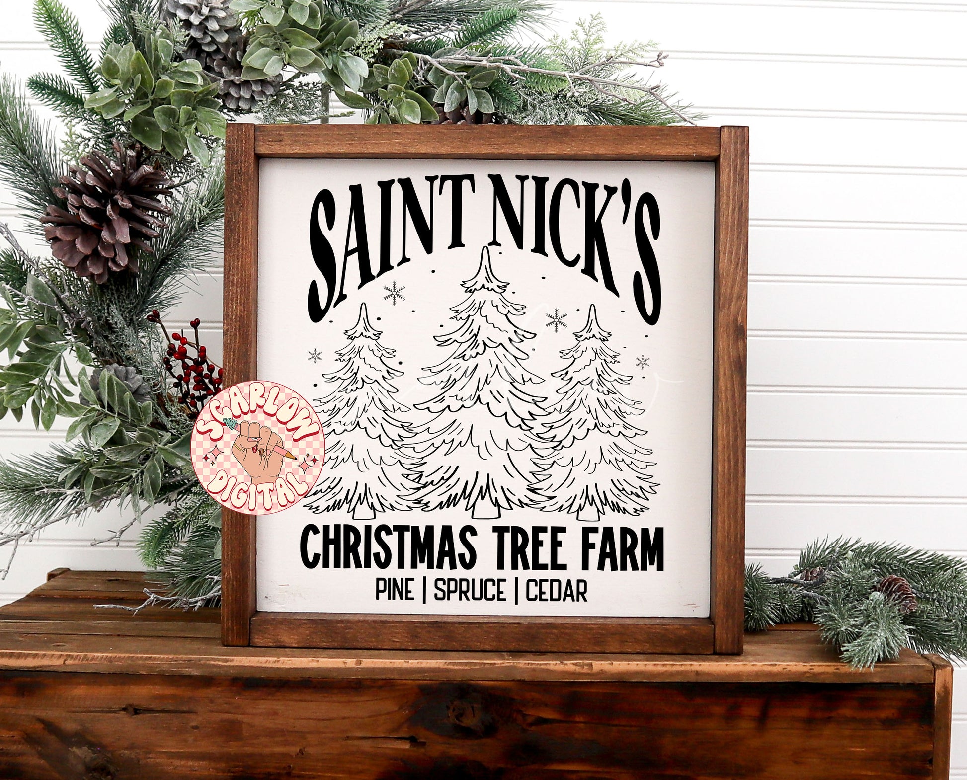 Saint Nick's Christmas Tree Farm SVG Cut File Digital Design Download-vintage christmas svg, boho christmas svg, santa claus svg designs