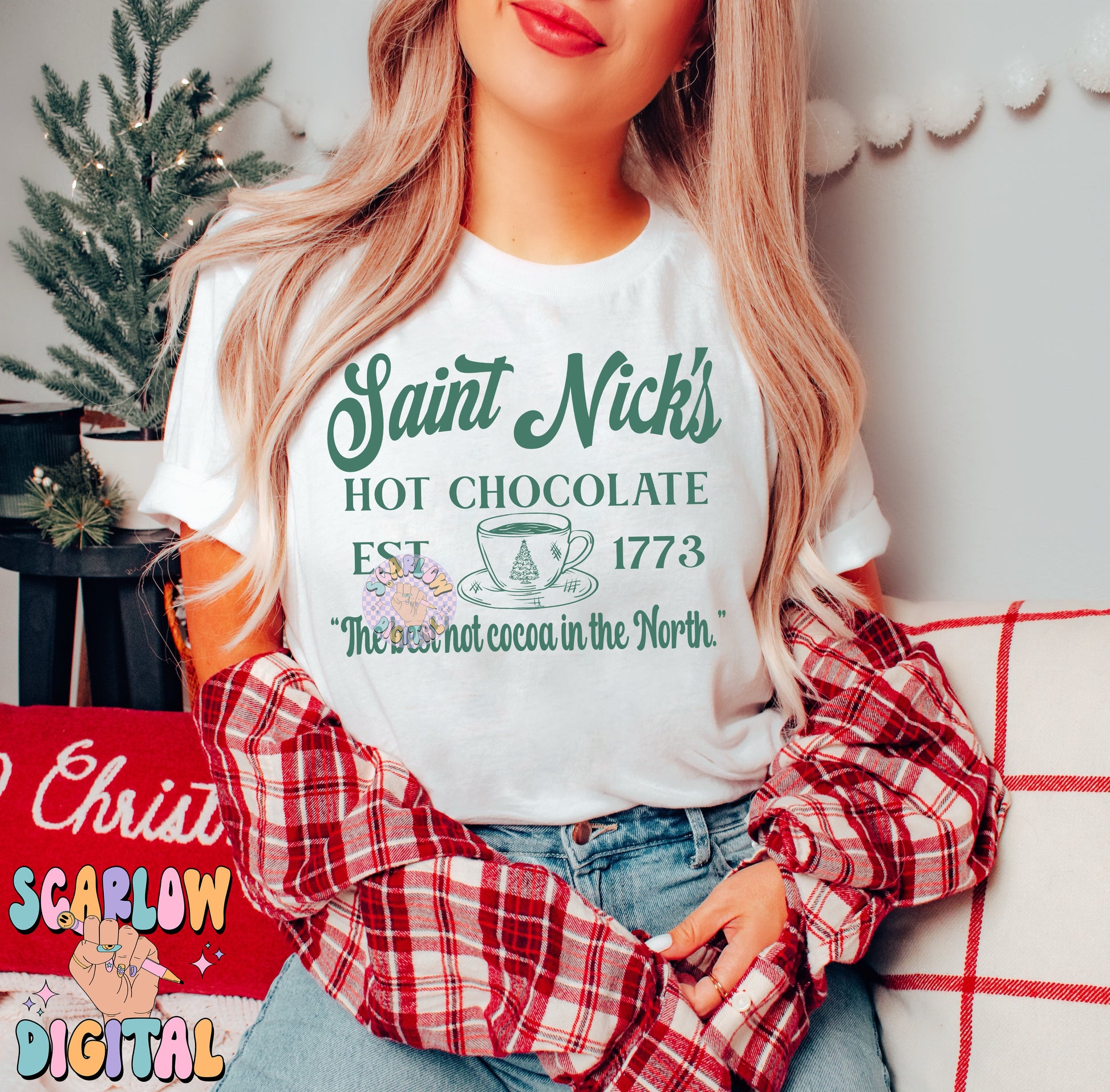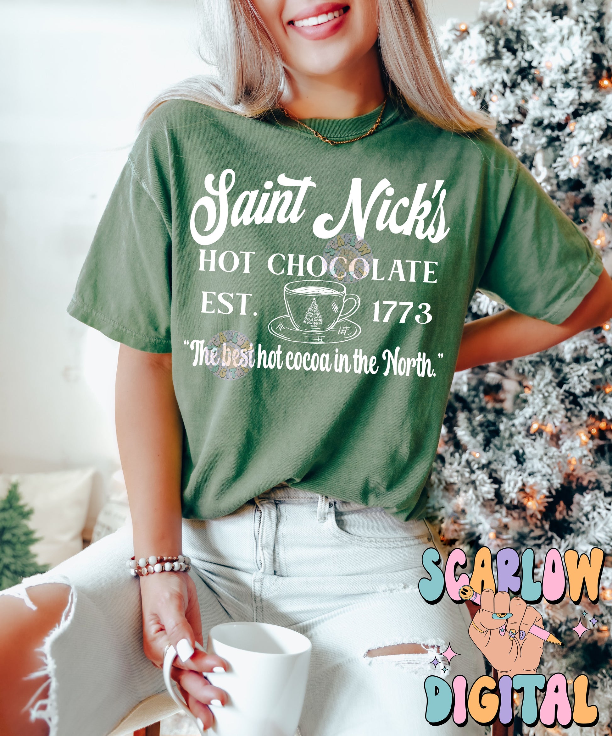 Saint Nick's Hot Chocolate PNG Digital Design Download, Christmas png, santa claus png, hot cocoa png, winter png, xmas designs, holiday png