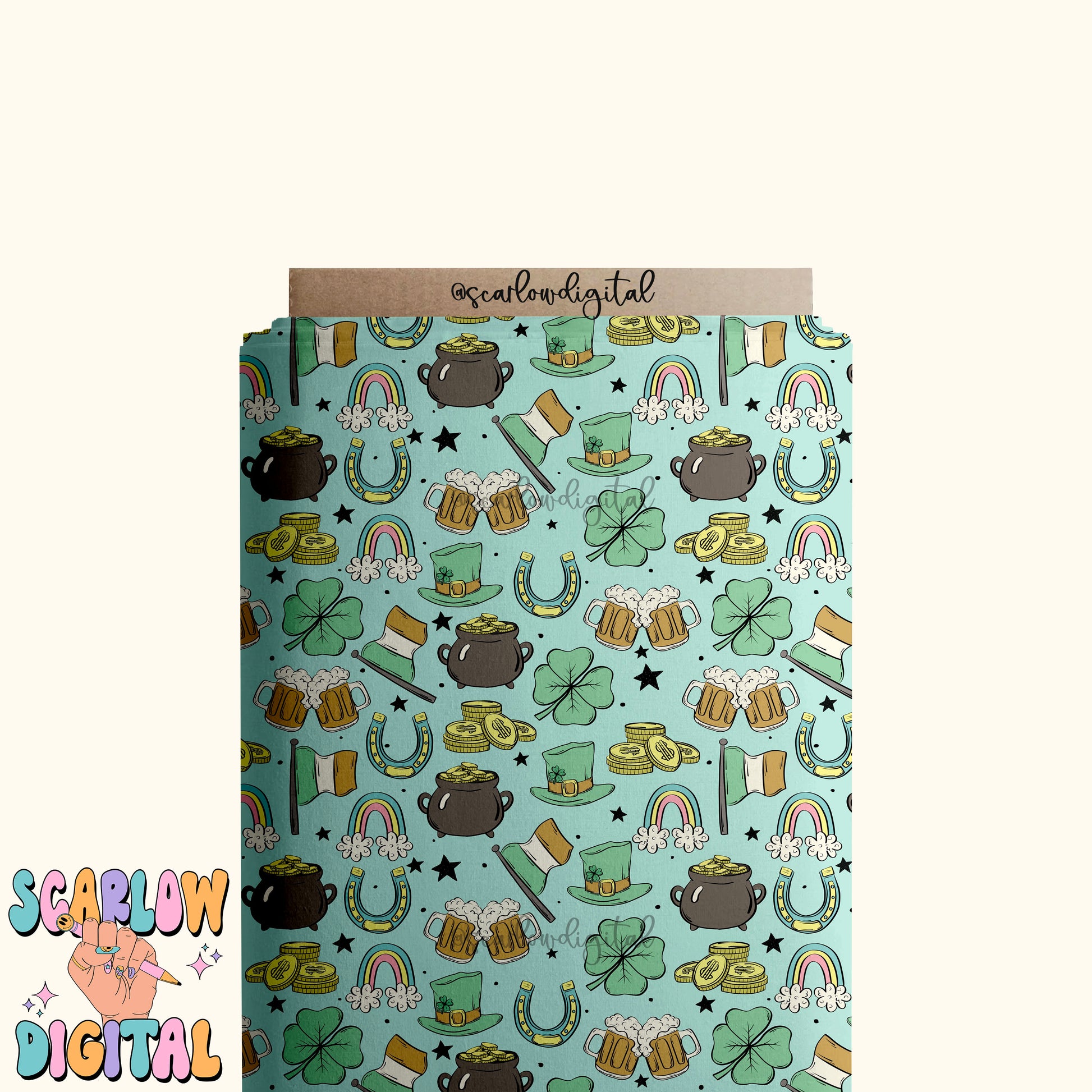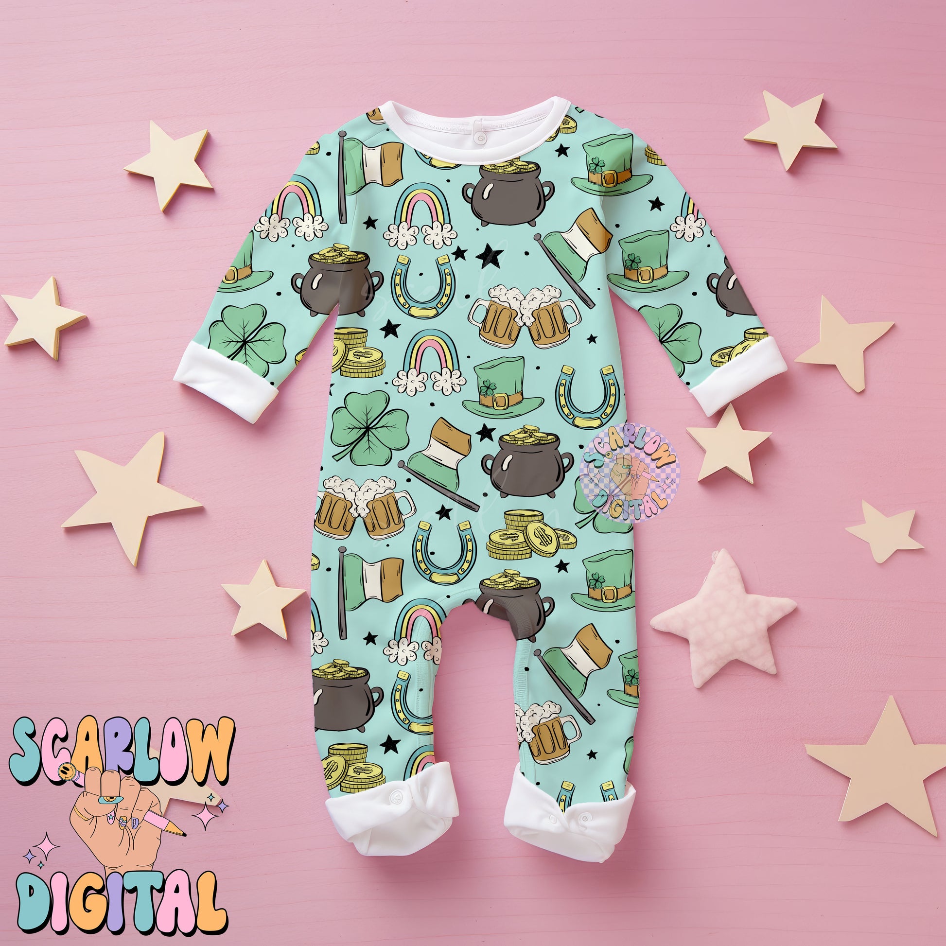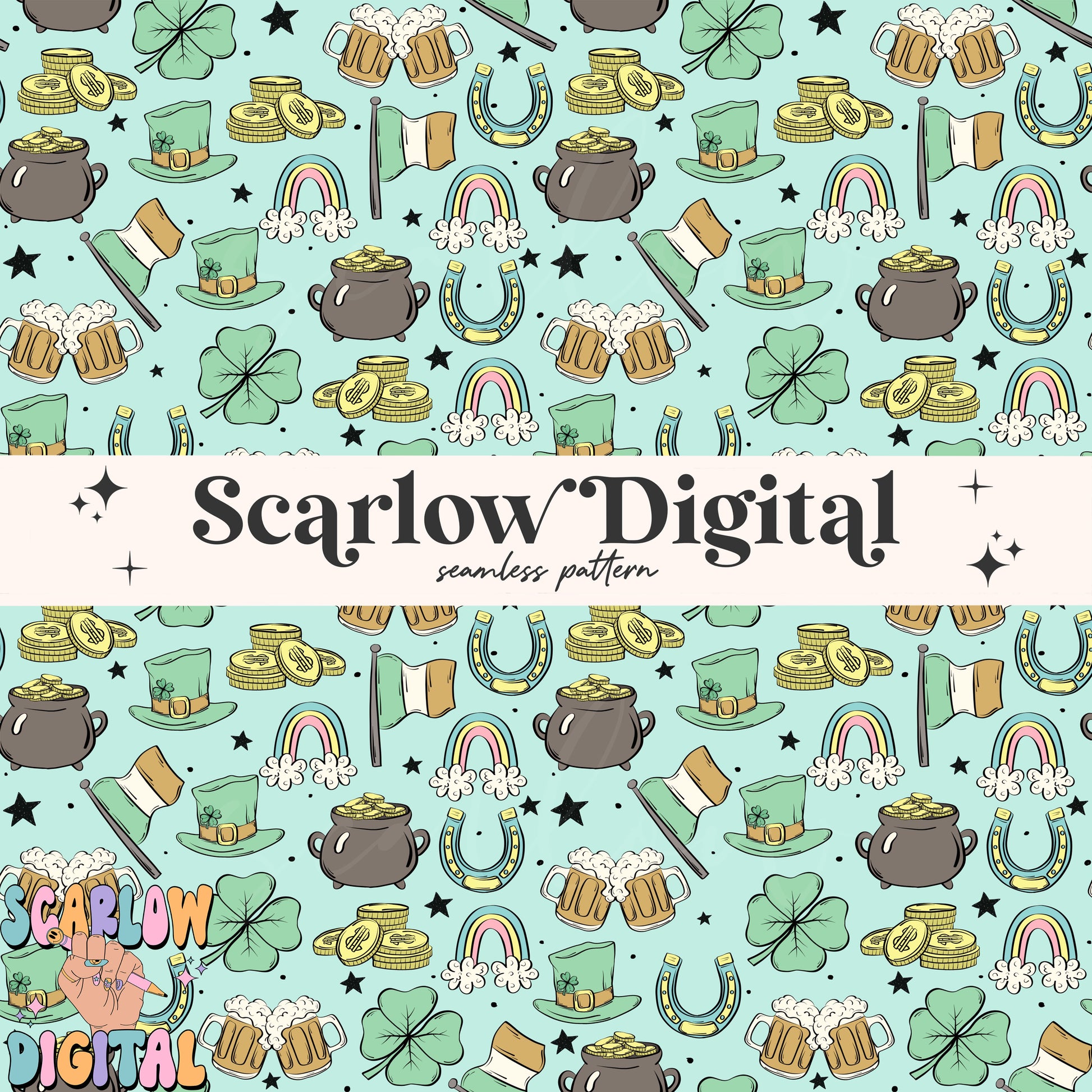 Saint Patrick's Day Doodles Seamless Pattern Sublimation Digital Design Download, rainbows seamless, lucky seamless file, irish seamless
