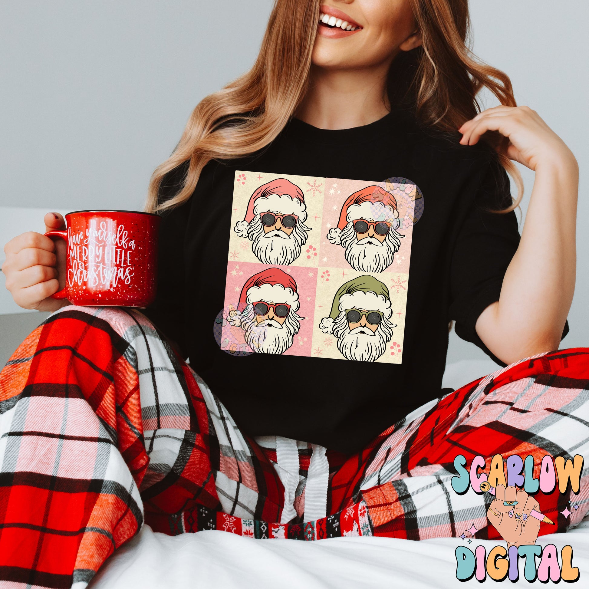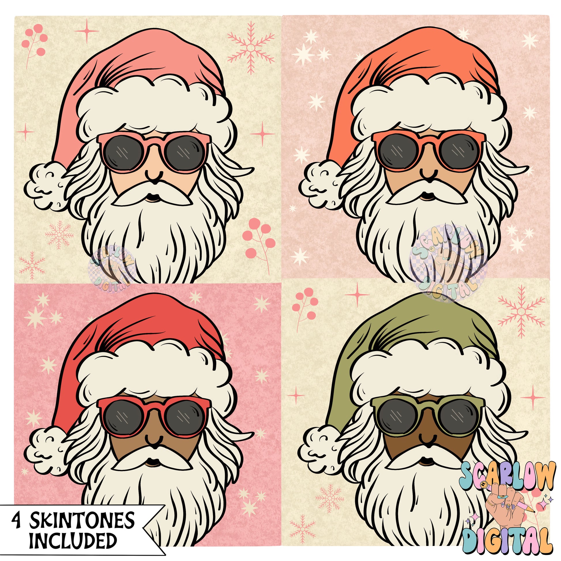 Santa Claus Squares PNG Digital Design Download, Christmas png, xmas png, pink christmas png, holidays png, santa hat png, trendy xmas png