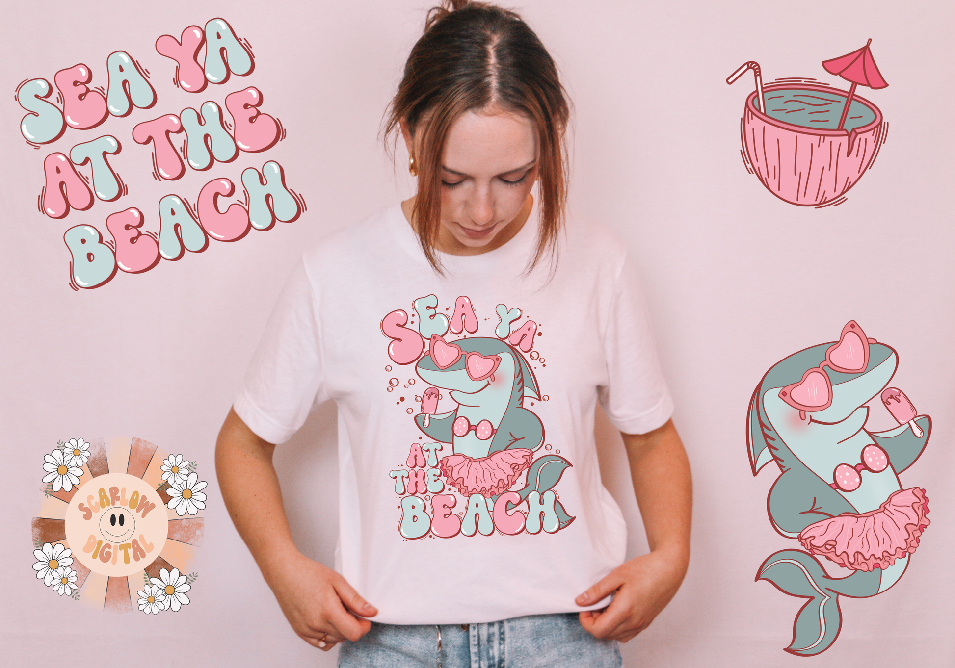 Sea Ya at the Beach PNG-Summertime Sublimation Digital Design Download-shark png, girl summer png, beachy png, sea life png, beach vibes png