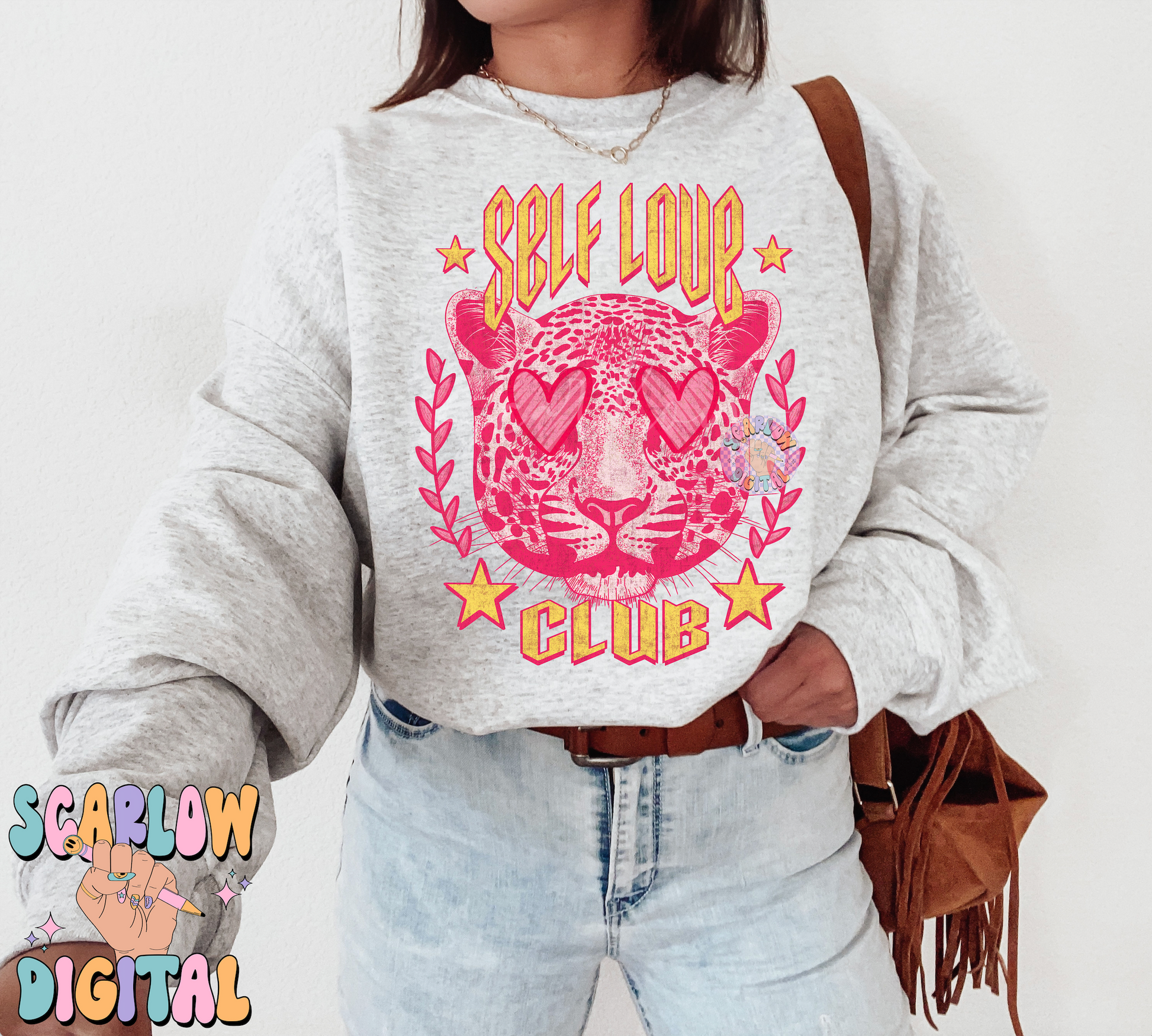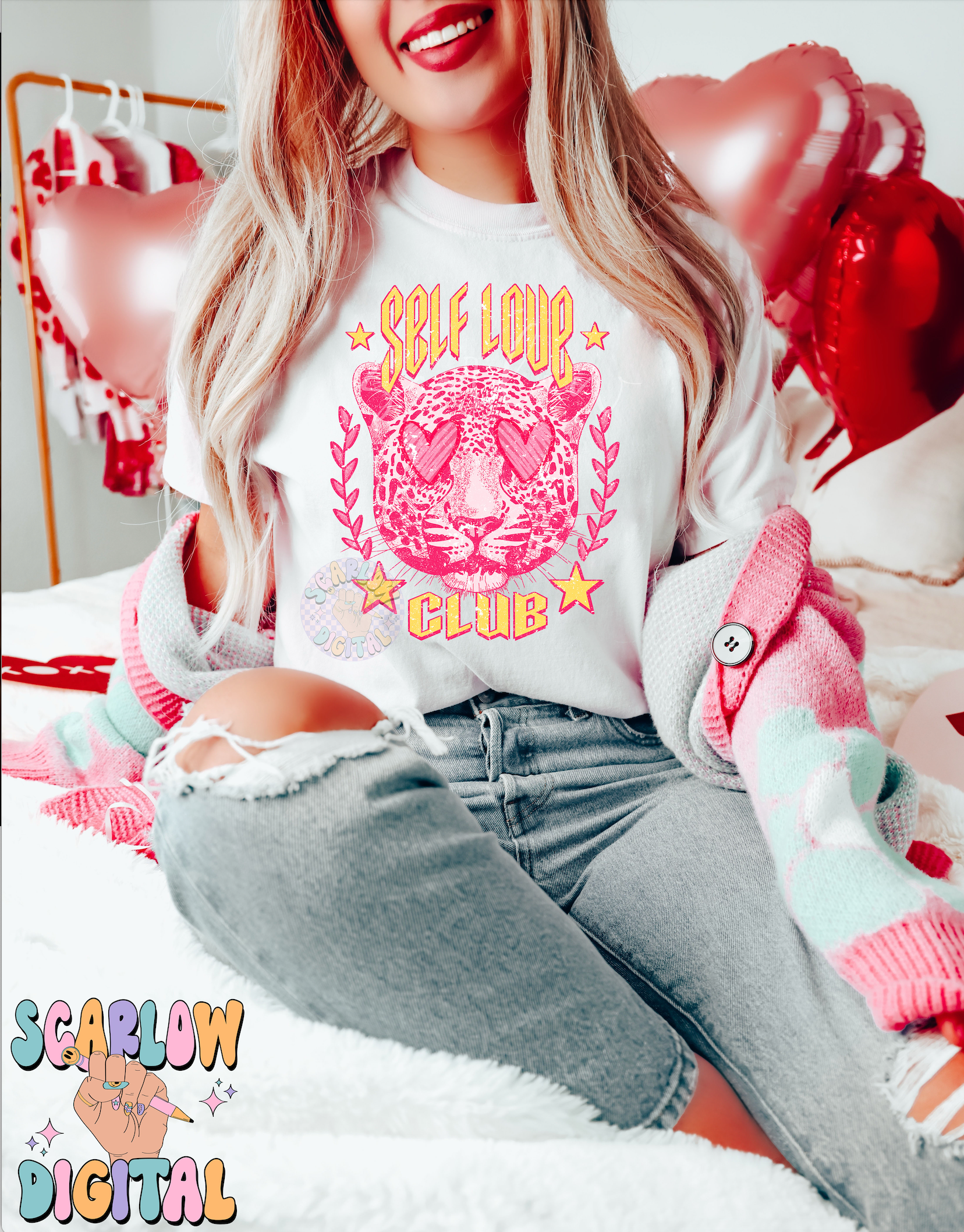 Self Love Club PNG-Valentine's Day Sublimation Digital Design Download-snow leopard png, hearts png, girly valentine's png, self care png