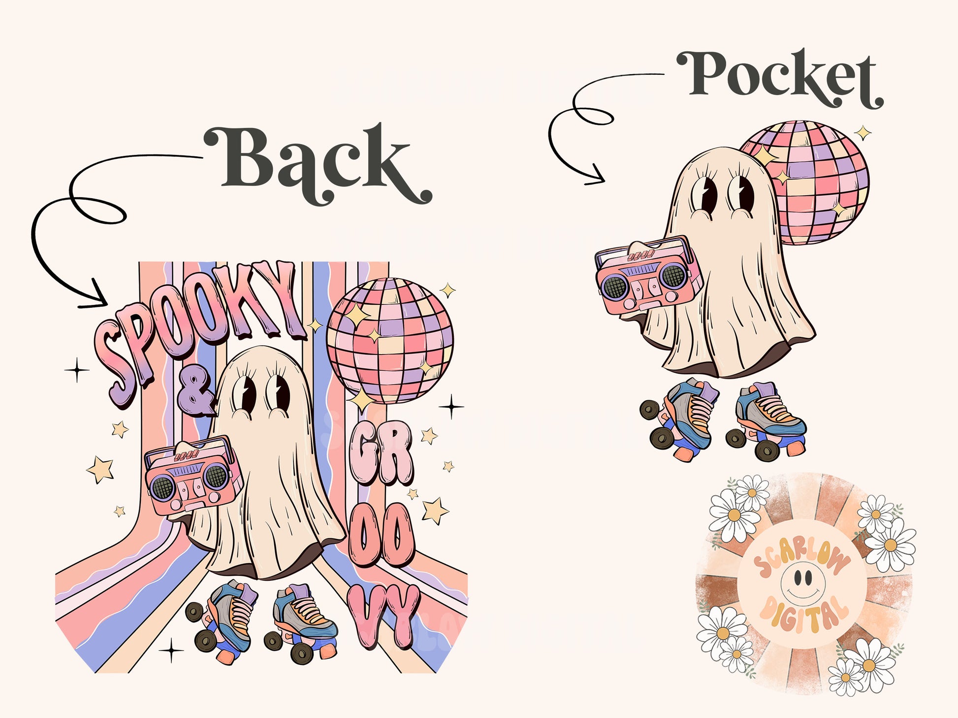 Spooky and Groovy Pocket and Back PNG Bundle-Vintage Halloween Sublimation Digital Design Download-ghost png, pocket png, front & back png