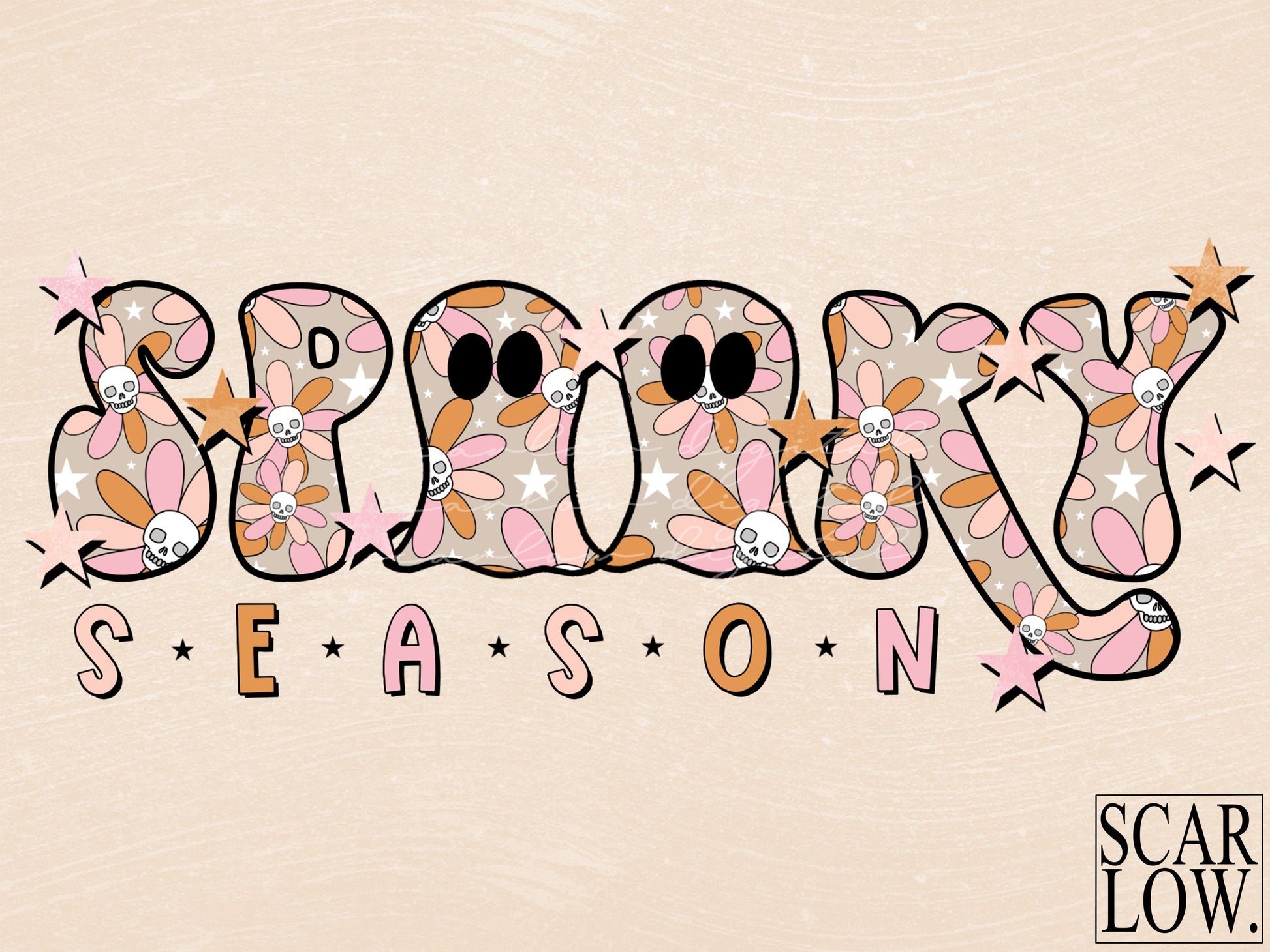 Spooky Season Halloween PNG sublimation design download, boho Halloween png, spooky season png, skull floral png, skeleton png, hippie png