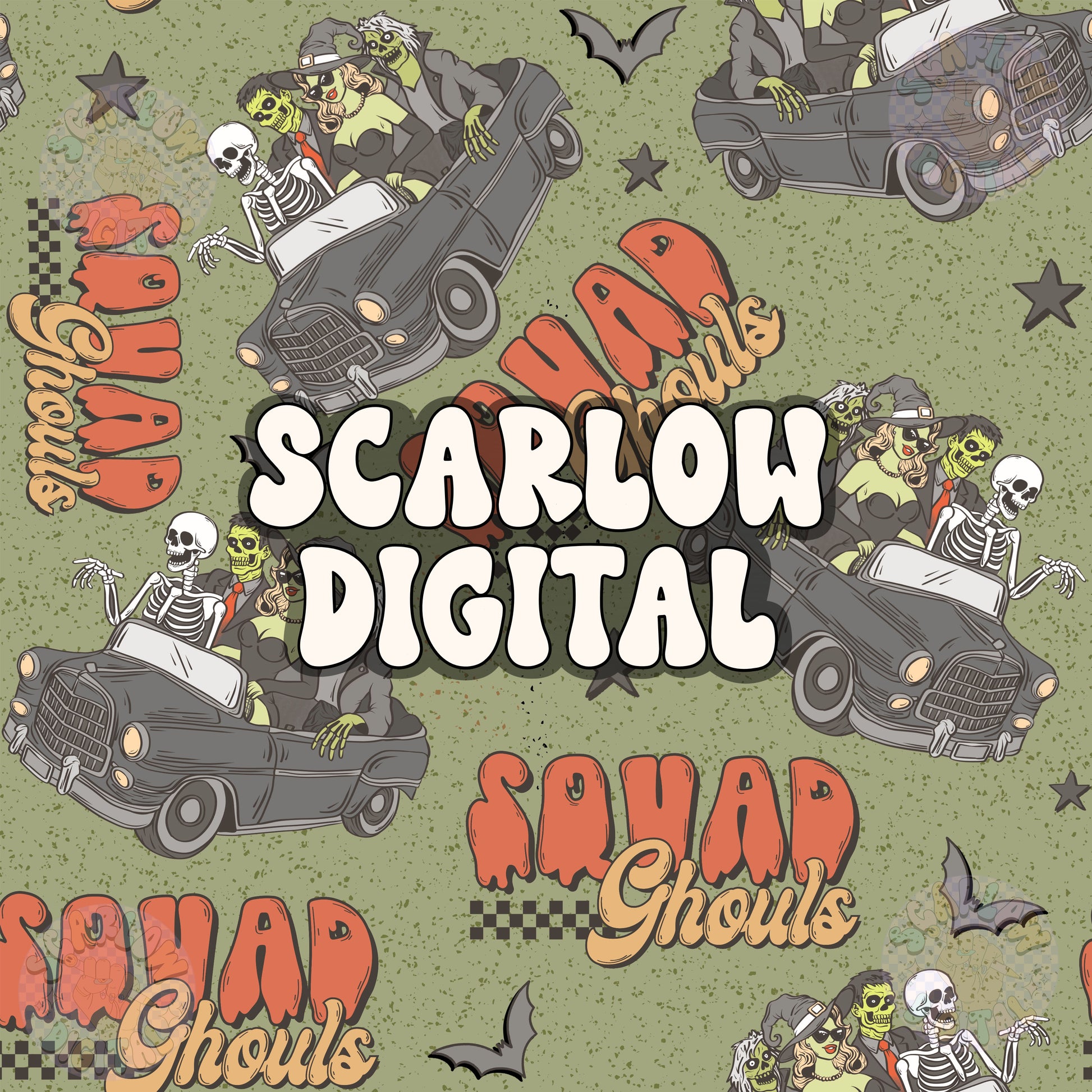 Squad Ghouls Seamless Pattern Digital Design Download, skeletons seamless pattern, zombie seamless, halloween seamless, spooky digital paper