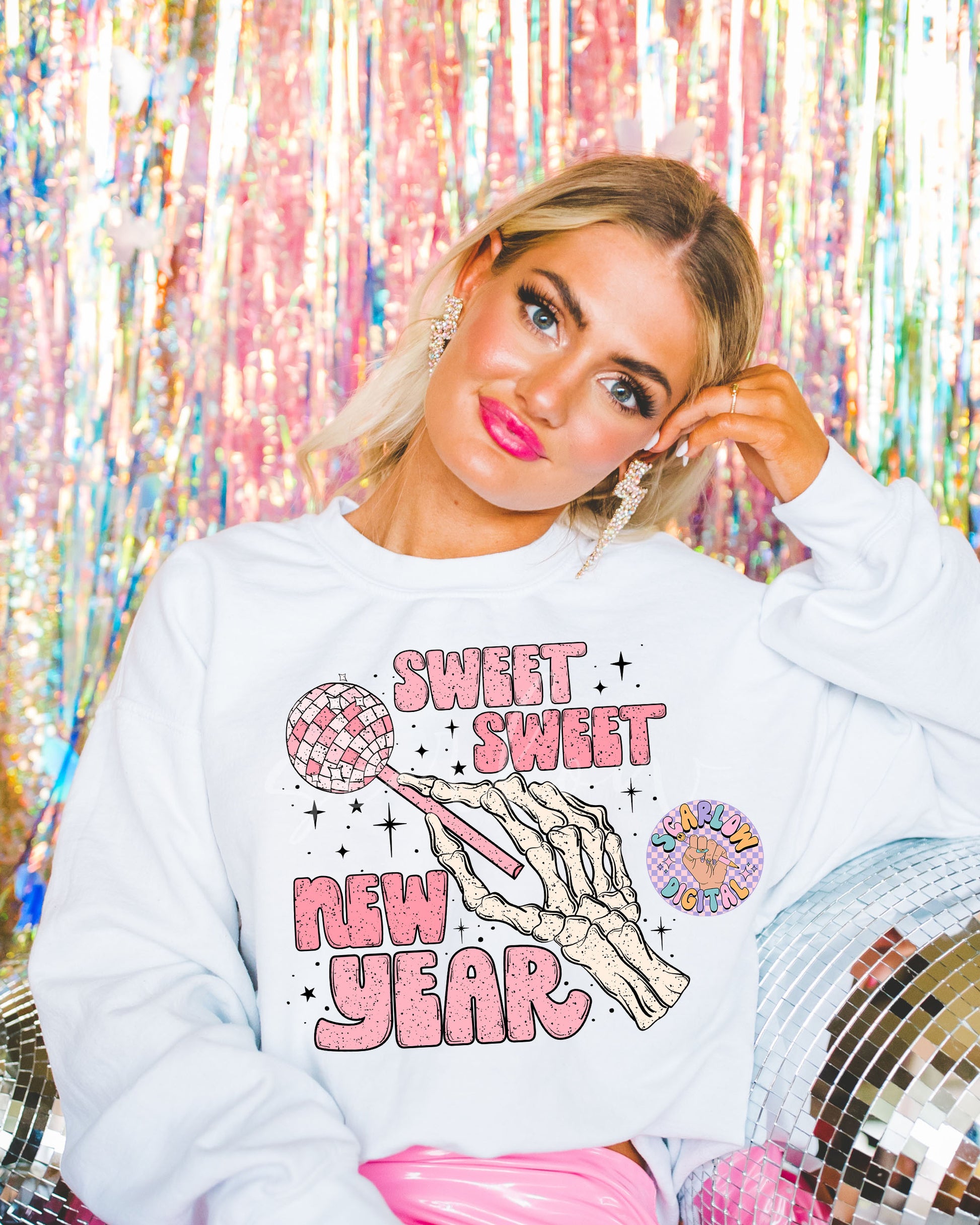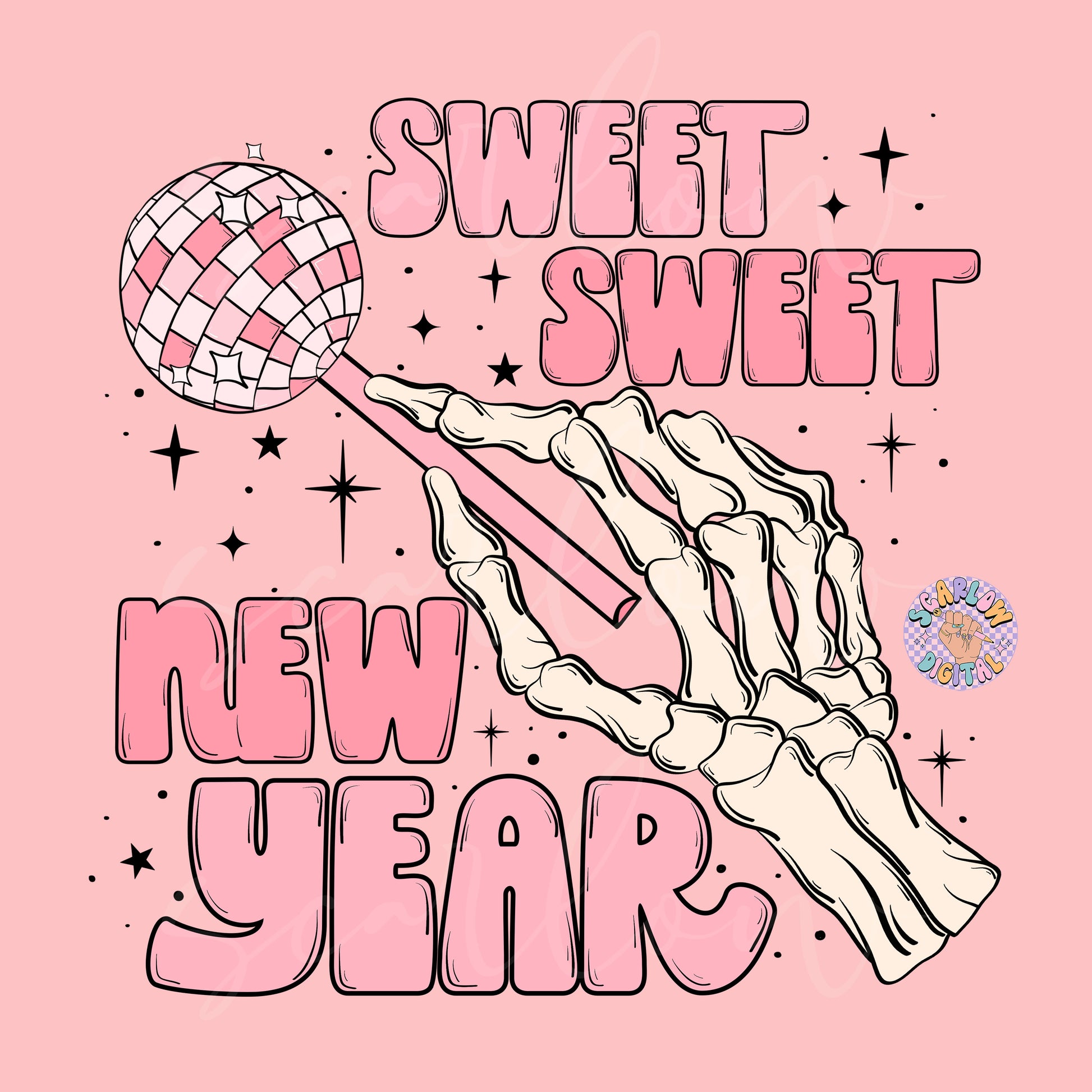 Sweet Sweet New Year PNG Sublimation Digital Design Download, disco ball png, skeleton png, skull png, sucker png, girly new years png file