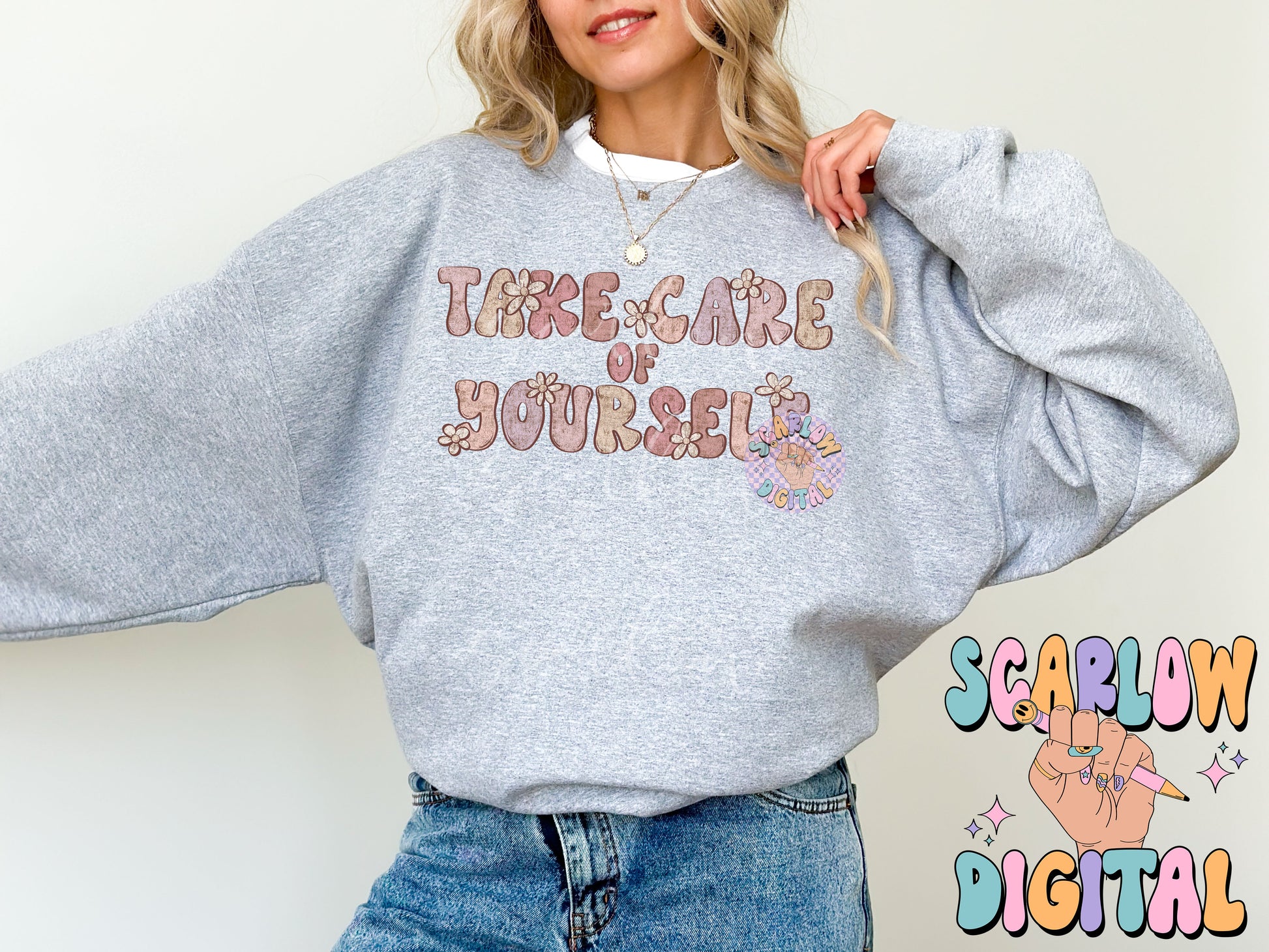 Take Care of Yourself PNG Digital Design Download, self love png, self care png, flowers png, floral png, png for women, trendy png designs