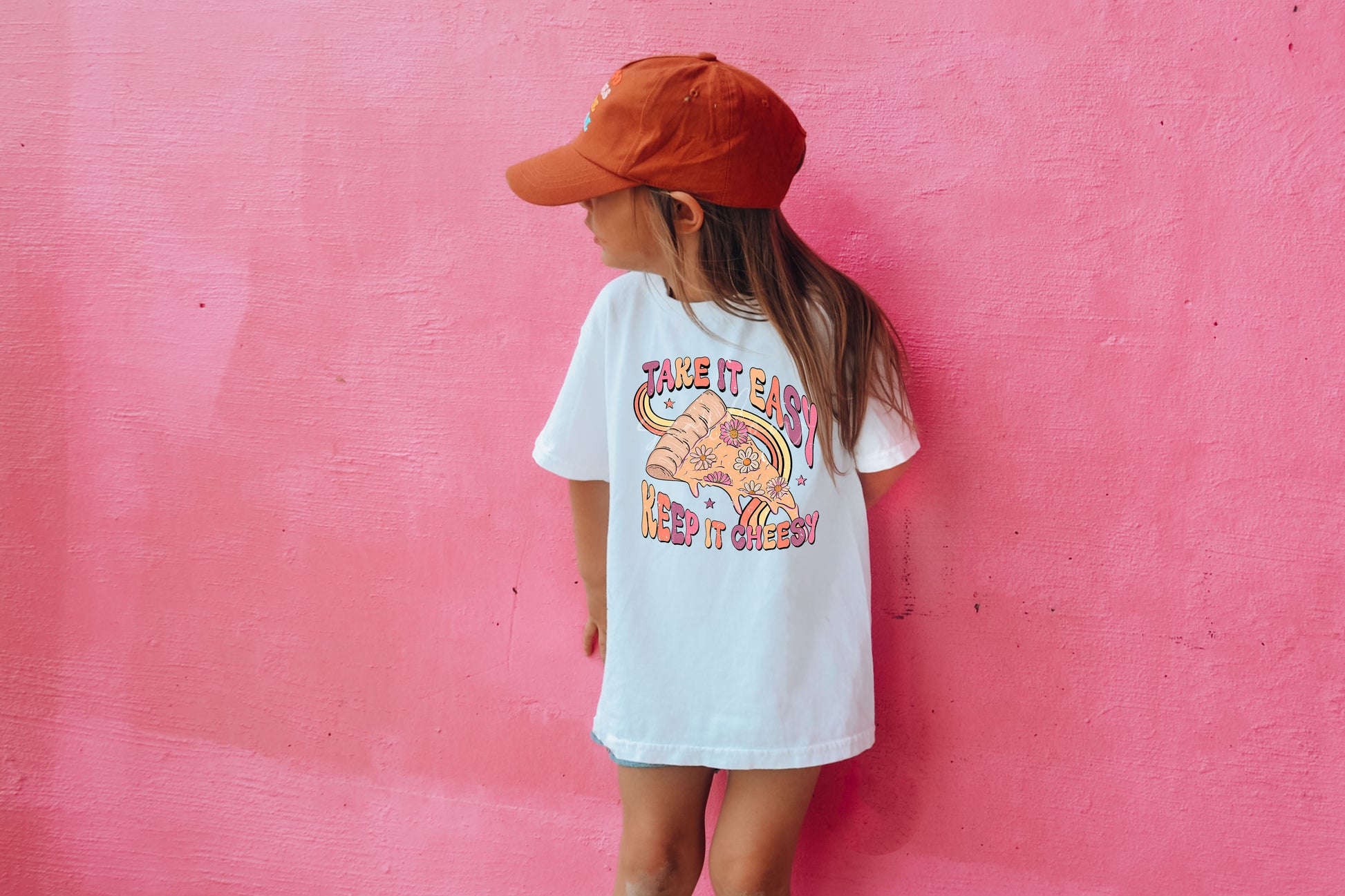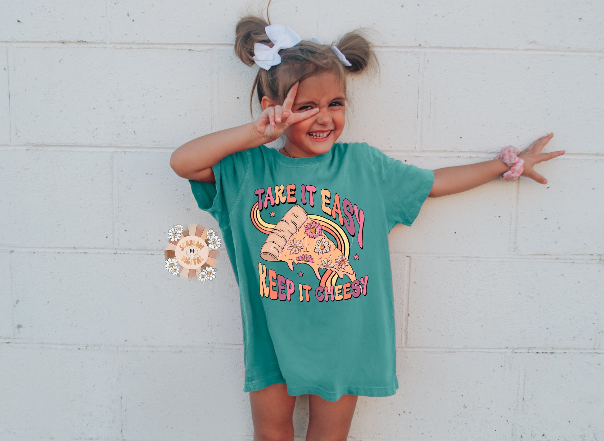 Take it Easy Keep it Cheesy PNG Sublimation Digital Design Download, floral png, flowers png, retro png, boho png, funny png, girly png file