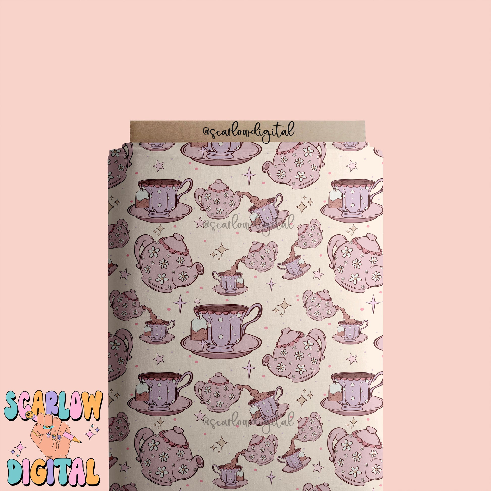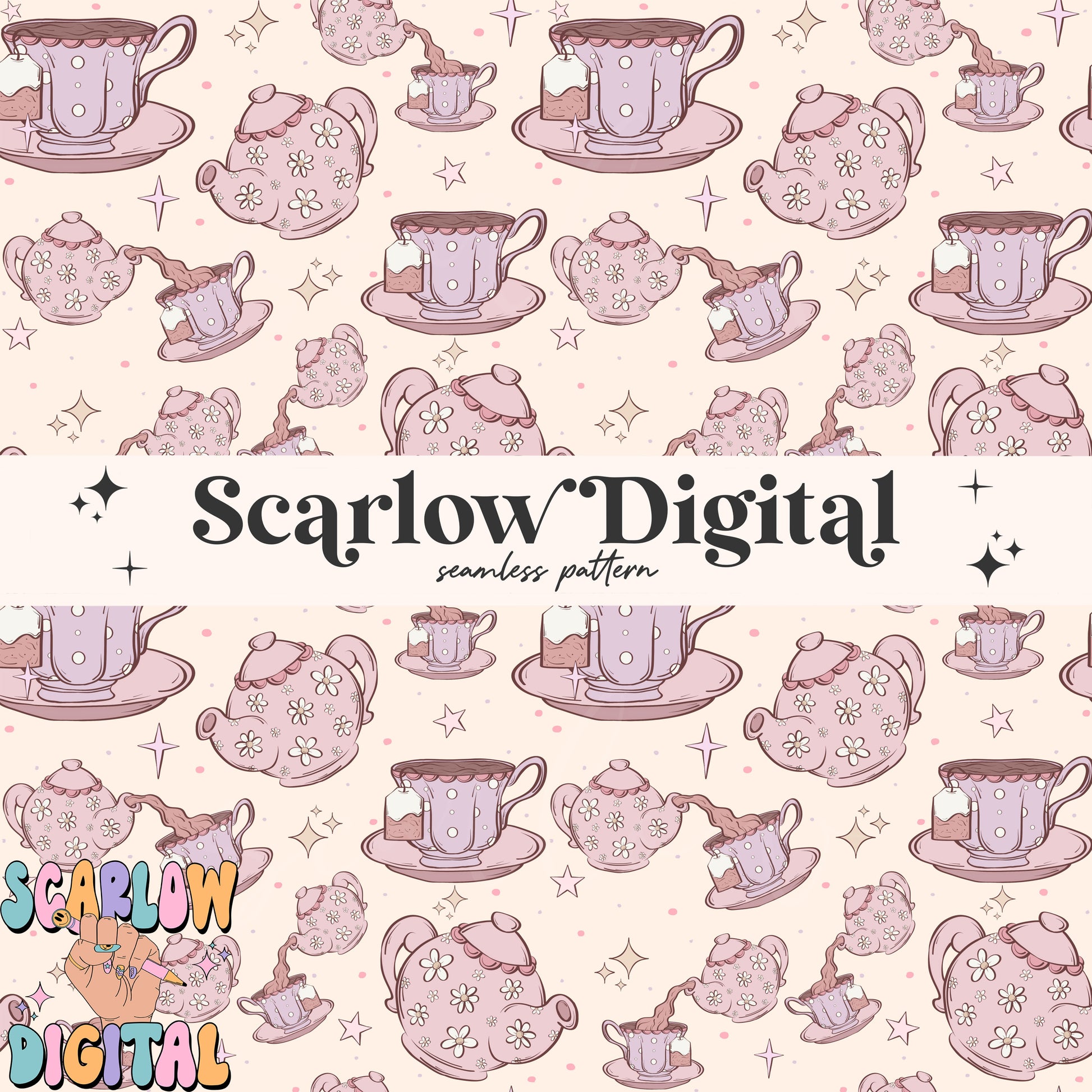 Tea Party Seamless Pattern Digital Design Download, tea cup seamless paper, tea pot pattern, coquette designs, trendy girl seamless patterns