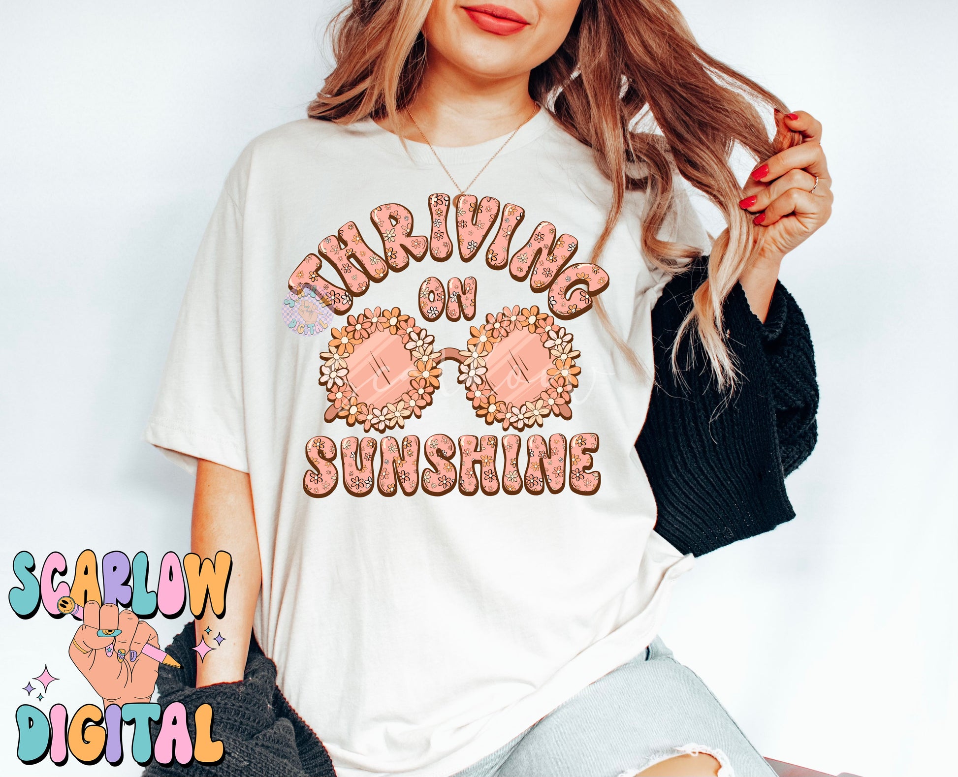 Thriving on Sunshine PNG-Summer Sublimation Digital Design Download-flower sunglasses png, summertime png, floral png, boho girl png designs
