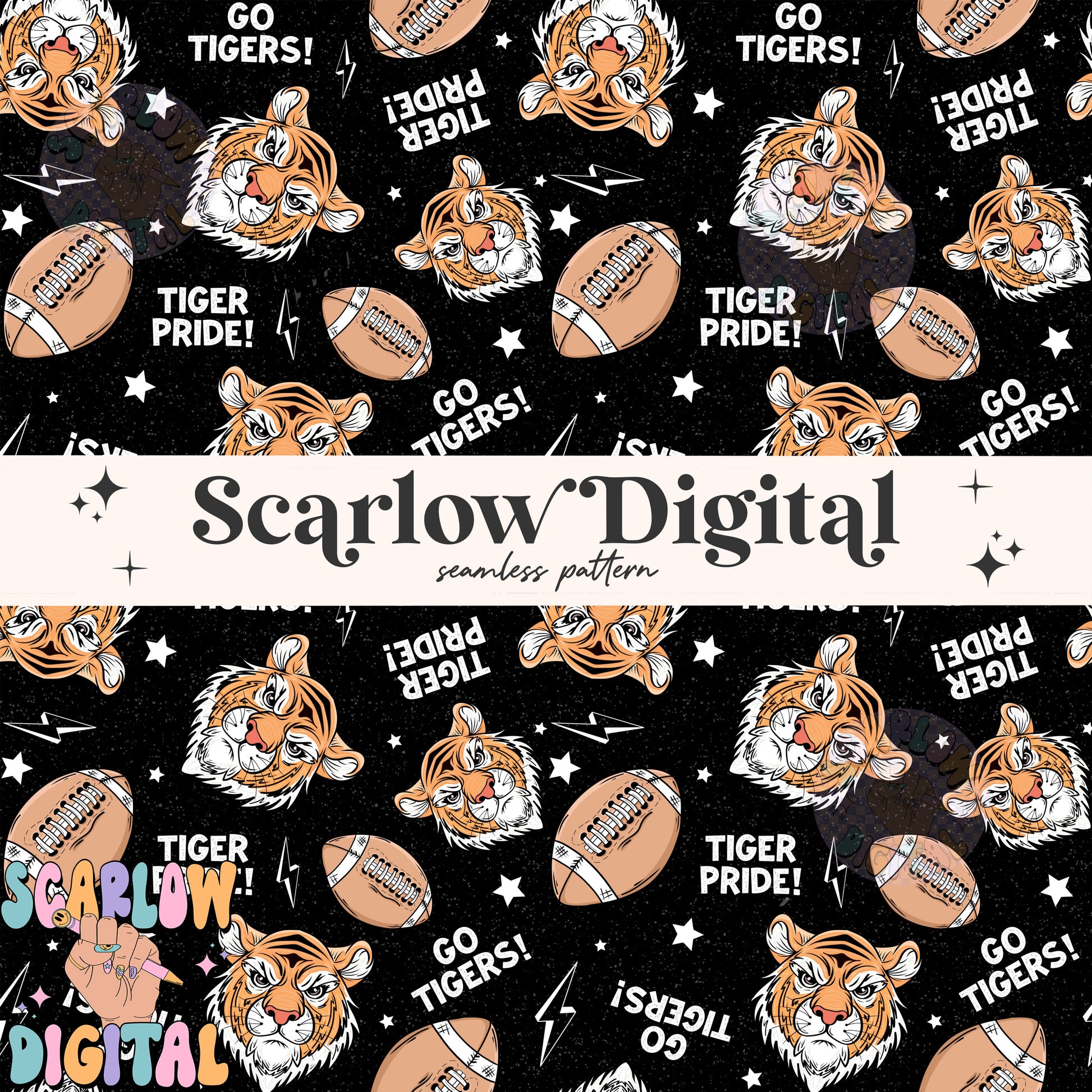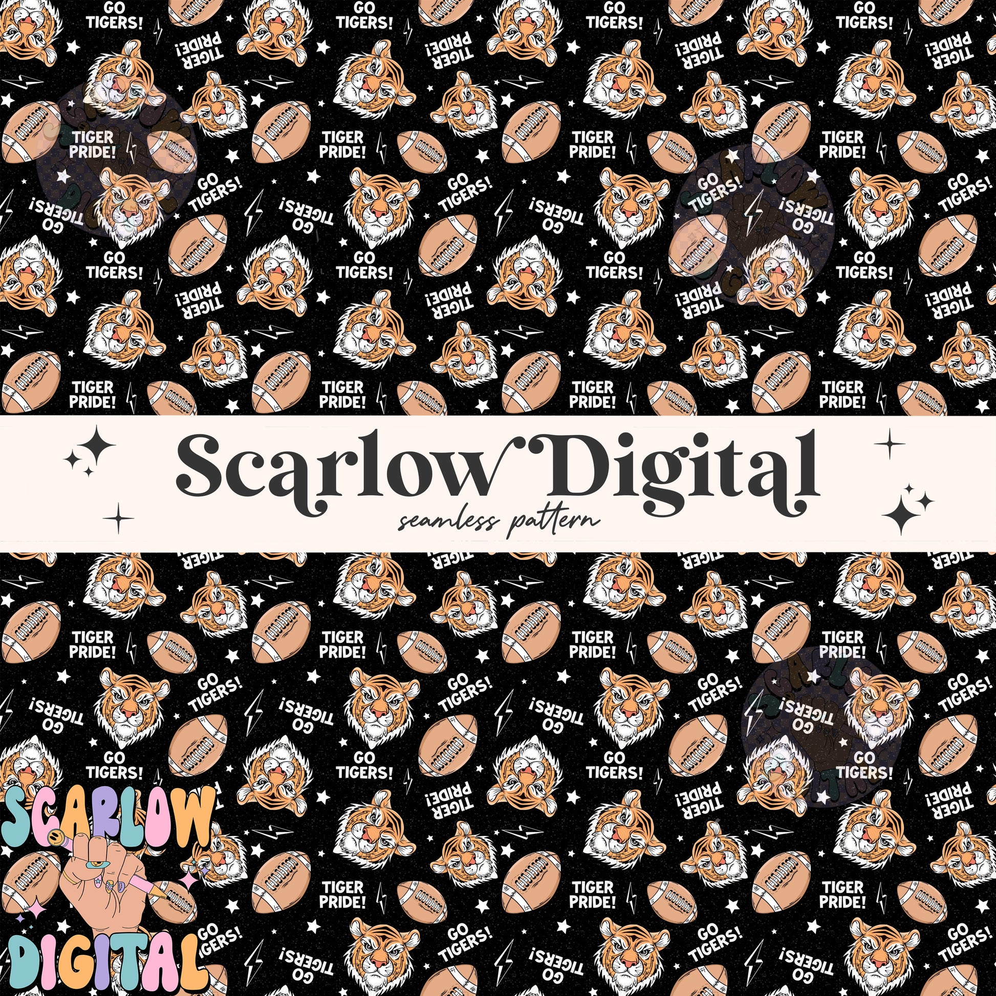 Tigers Seamless Pattern Digital Design Download, Tigers football seamless file, team mascot digital prints, football season seamless