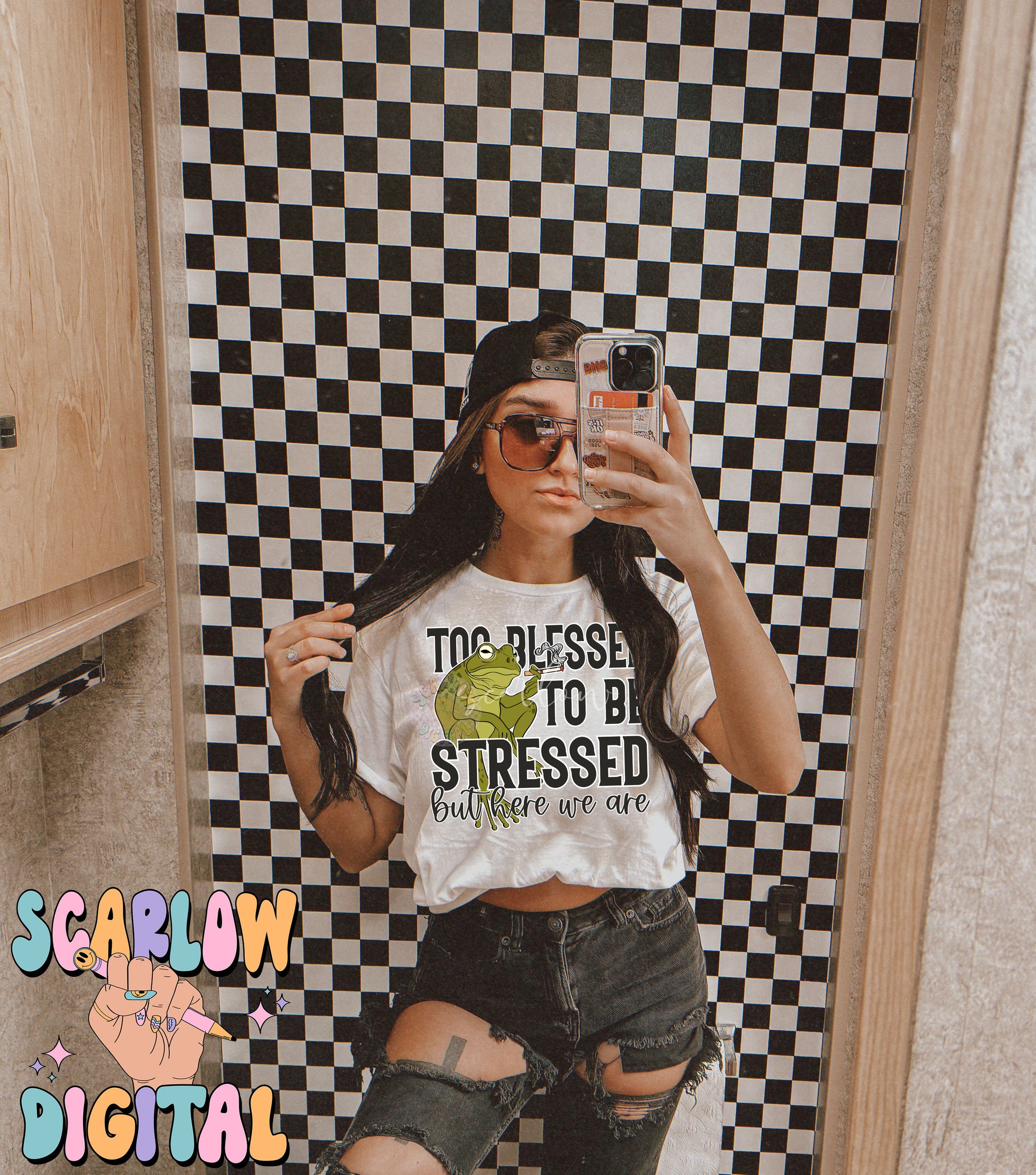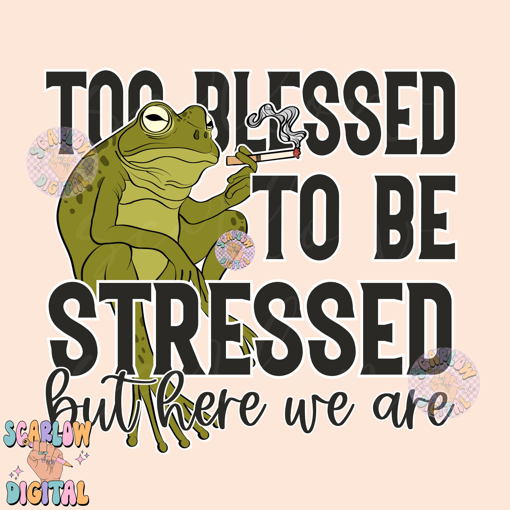 Too Blessed To Be Stressed But Here We Are PNG Digital Design Download, frog png, smoking png, adult humor png, snarky png, sarcastic png
