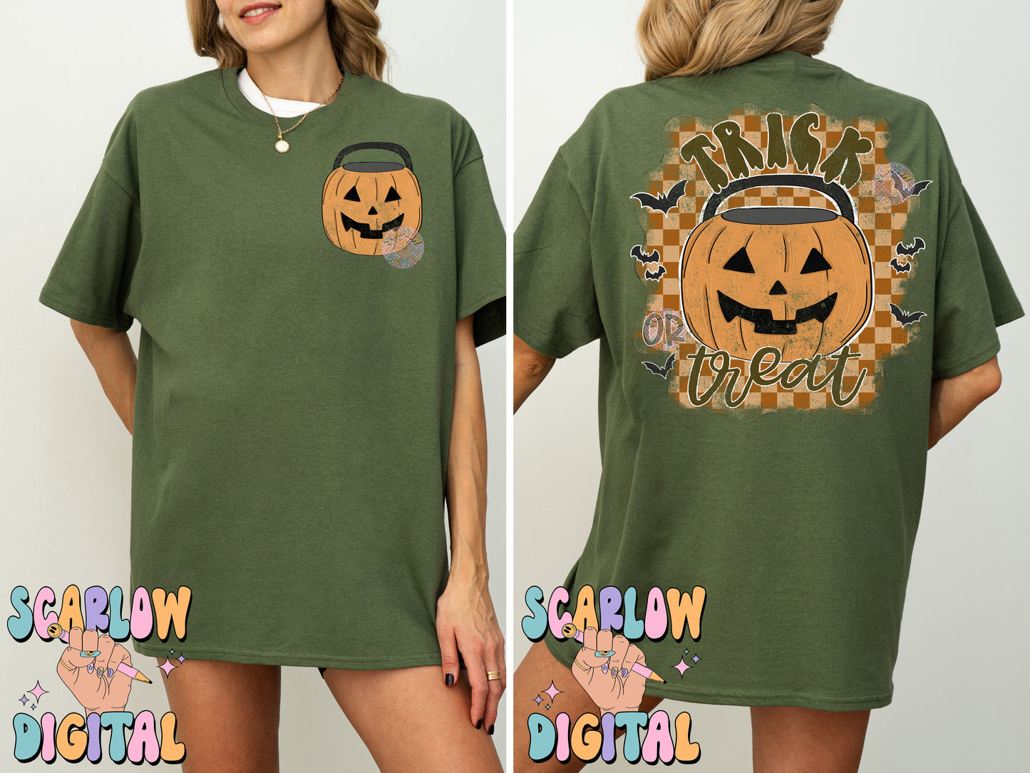 Trick or Treat Front and Back PNG Digital Design Bundle, Halloween png, front and back png, pumpkins png, spooky season png, fall designs