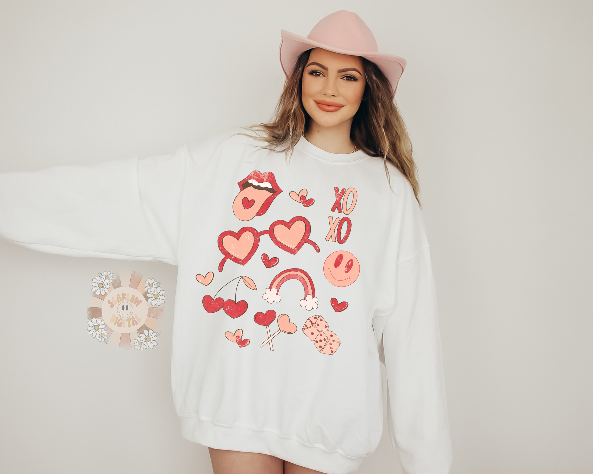 Valentine's Day Doodles PNG Sublimation Digital Design Download-sunglasses png, heart sucker png, hearts png, cherry png, xoxo png, smiling
