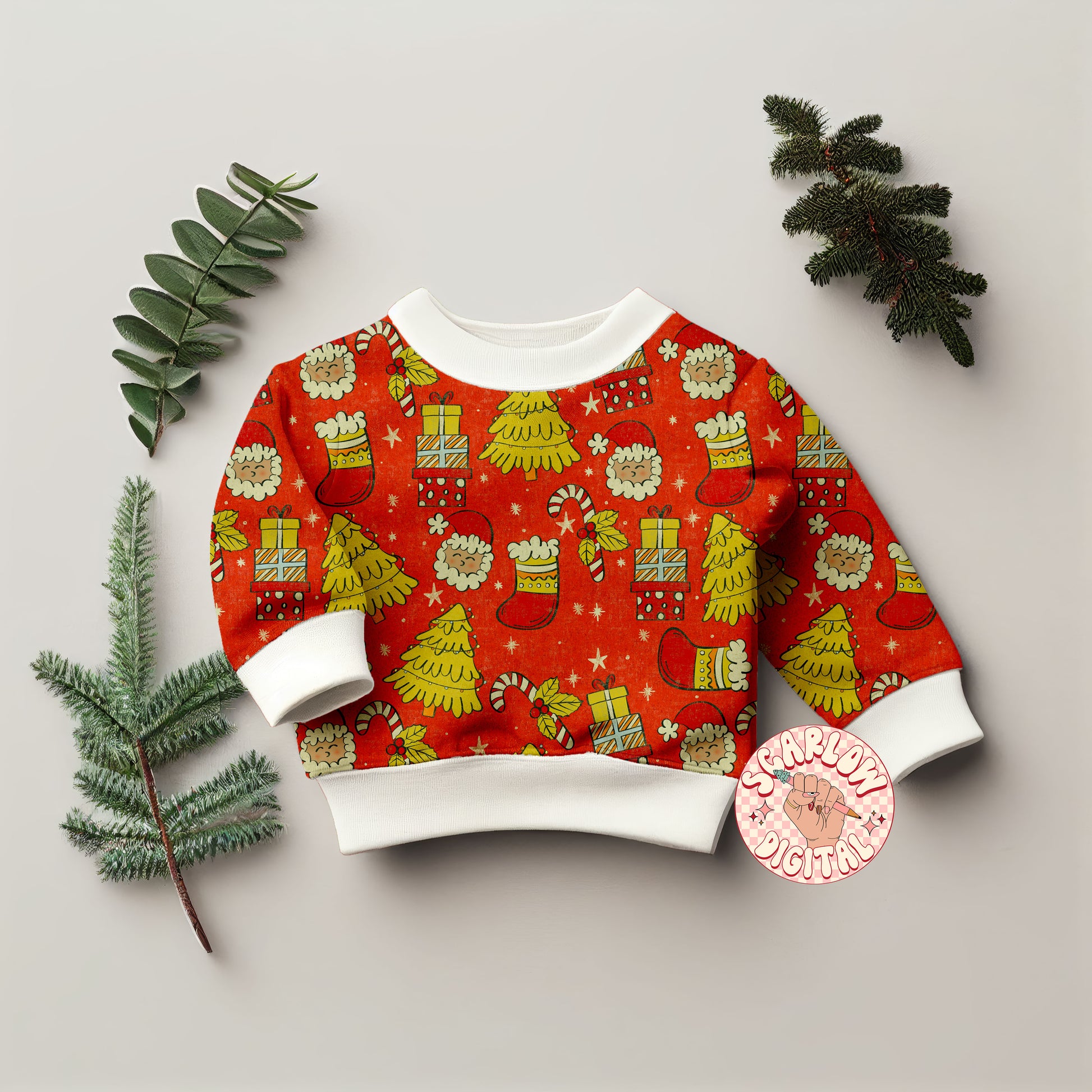 Vintage Christmas Seamless Pattern Sublimation Digital Design Download, christmas tree seamless, traditional christmas seamless pattern