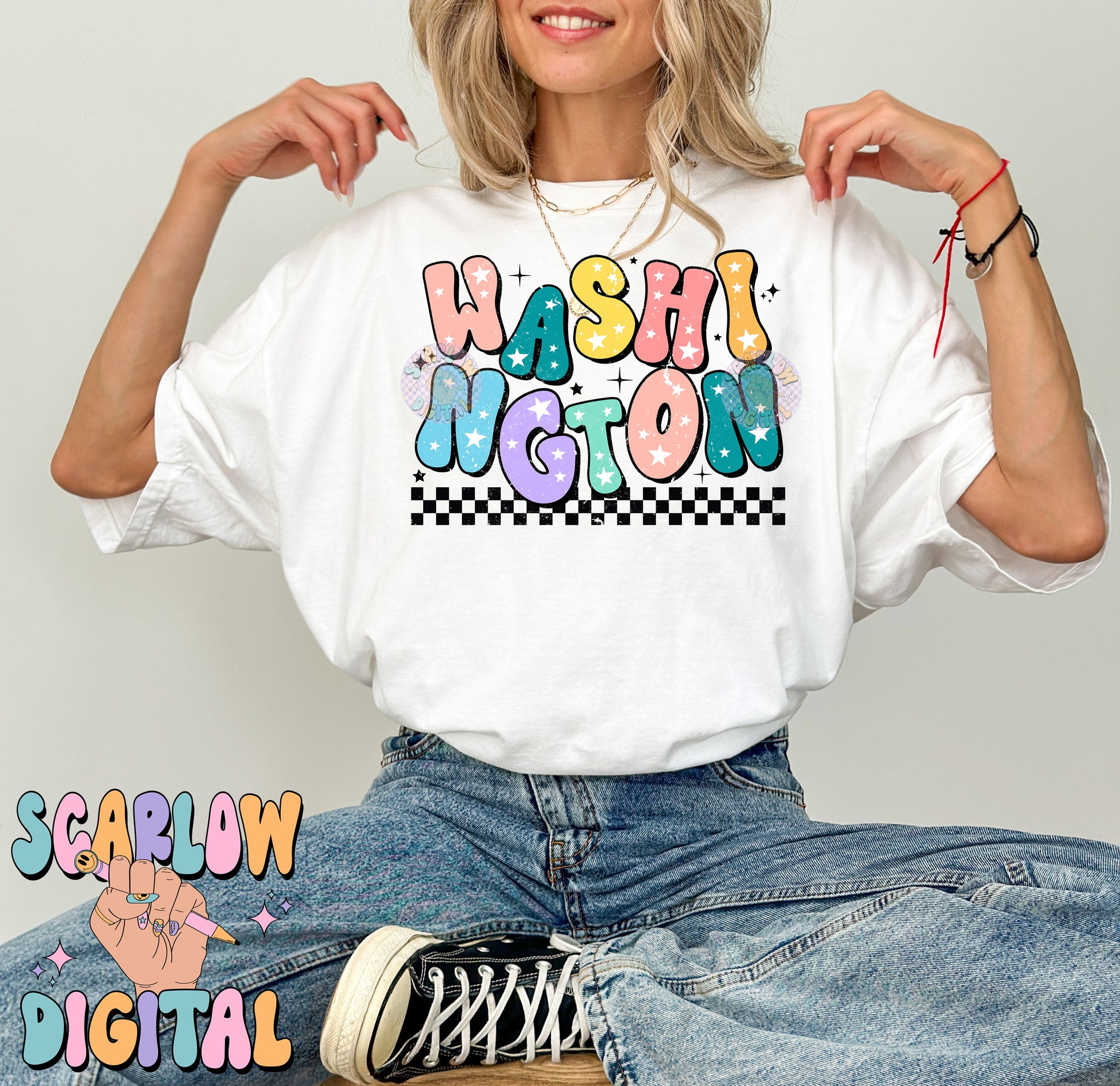 Washington PNG Digital Design Download, city png, colorful png, stars png, women png, Washington tshirt png, retro png, city state png