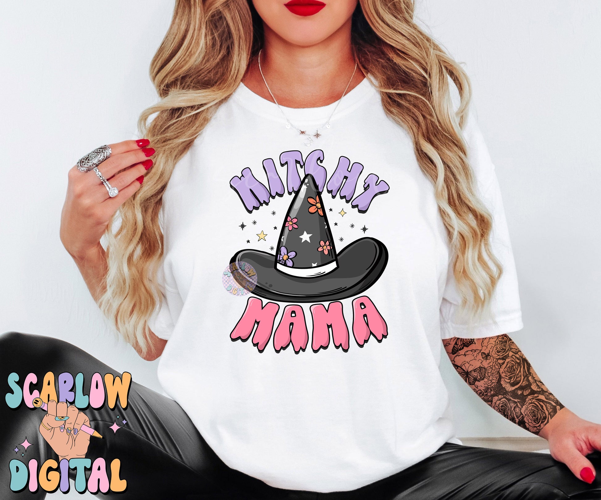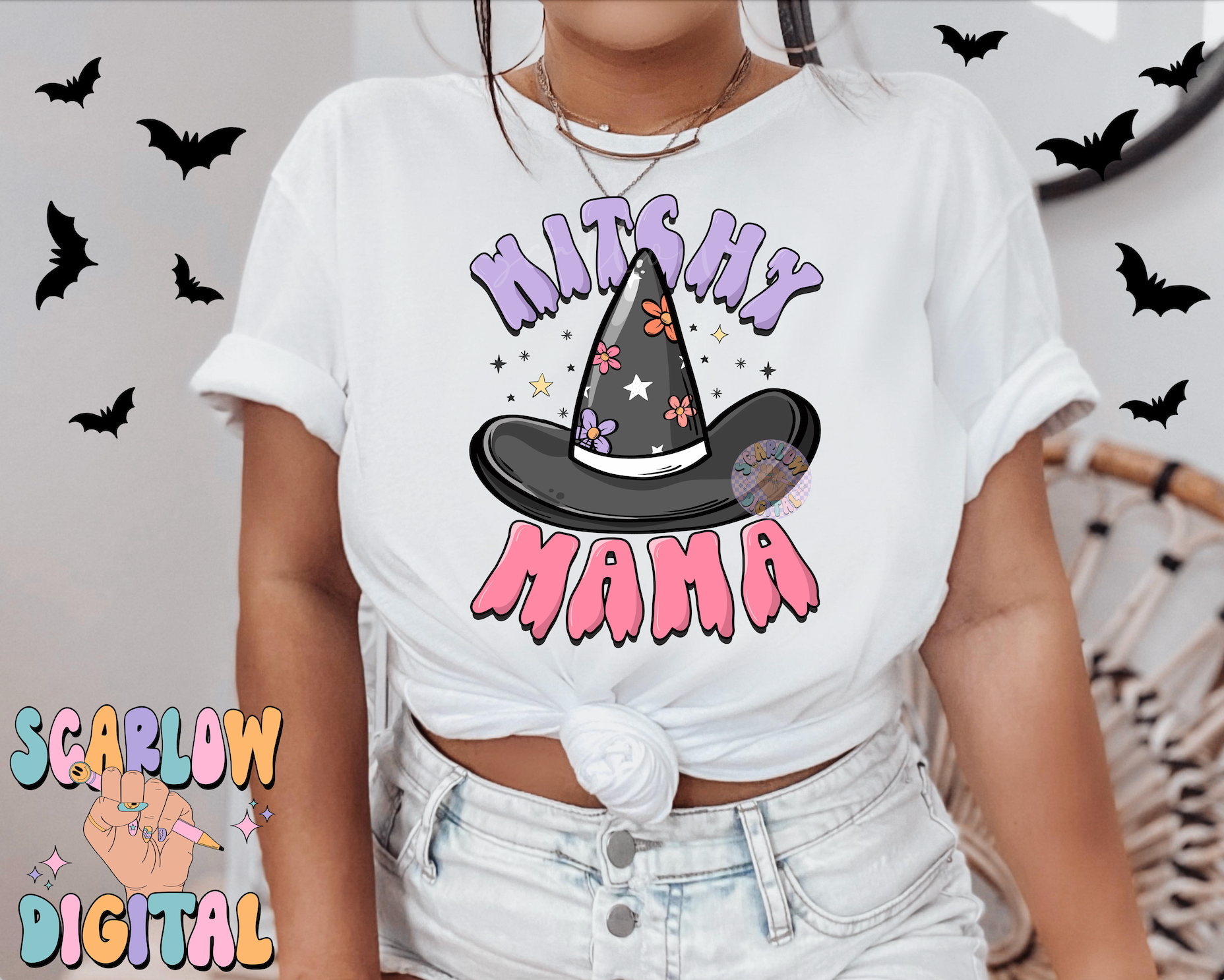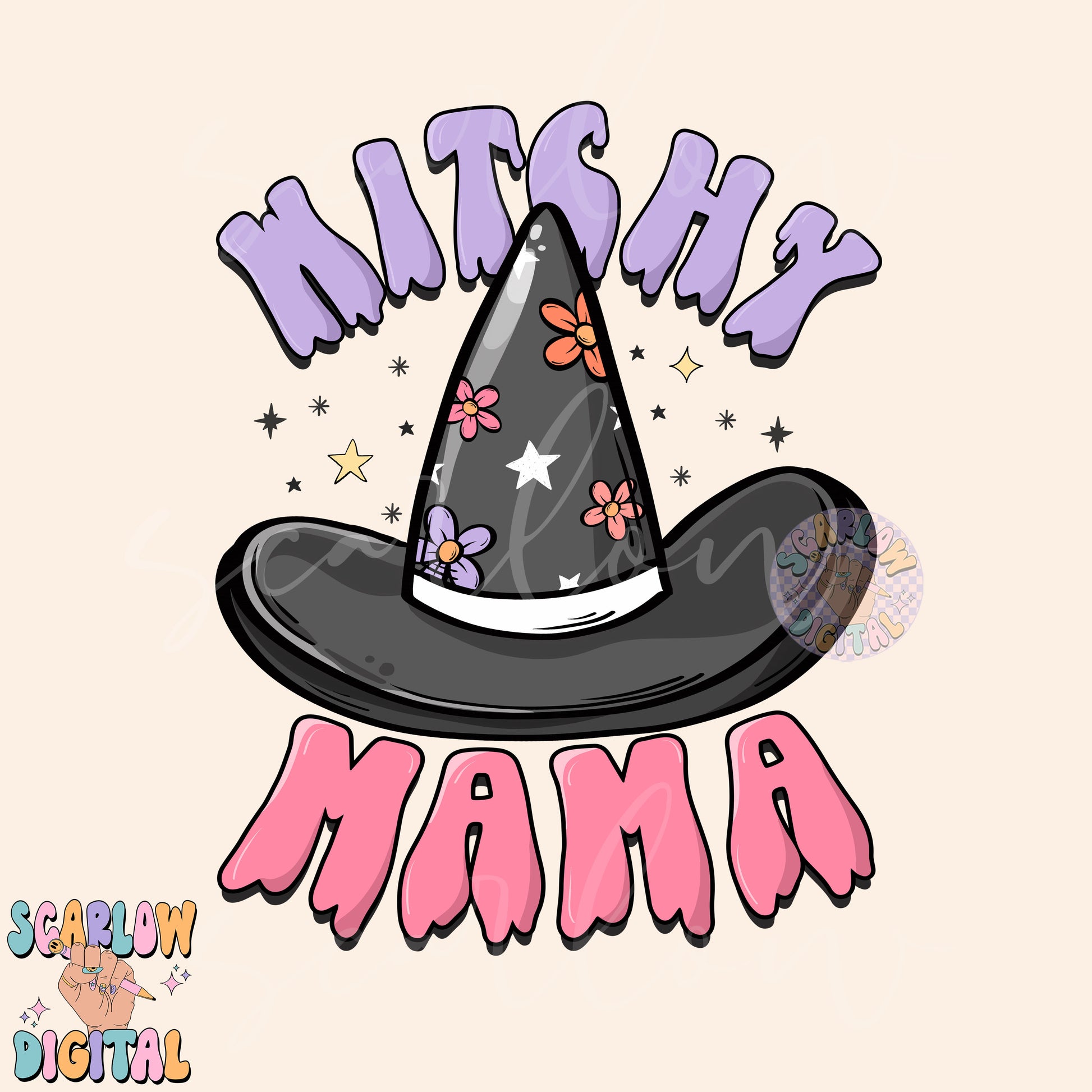 Witchy Mama PNG Digital Design Download, Halloween png, mom halloween designs, witch hat png, preppy halloween png, retro spooky png designs