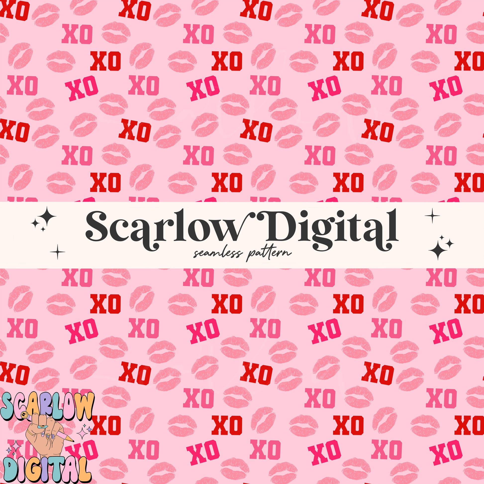 XoXo Seamless Pattern-Valentine's Day Sublimation Digital Design Download-kisses seamless file, vday designs, hearts seamless file designs